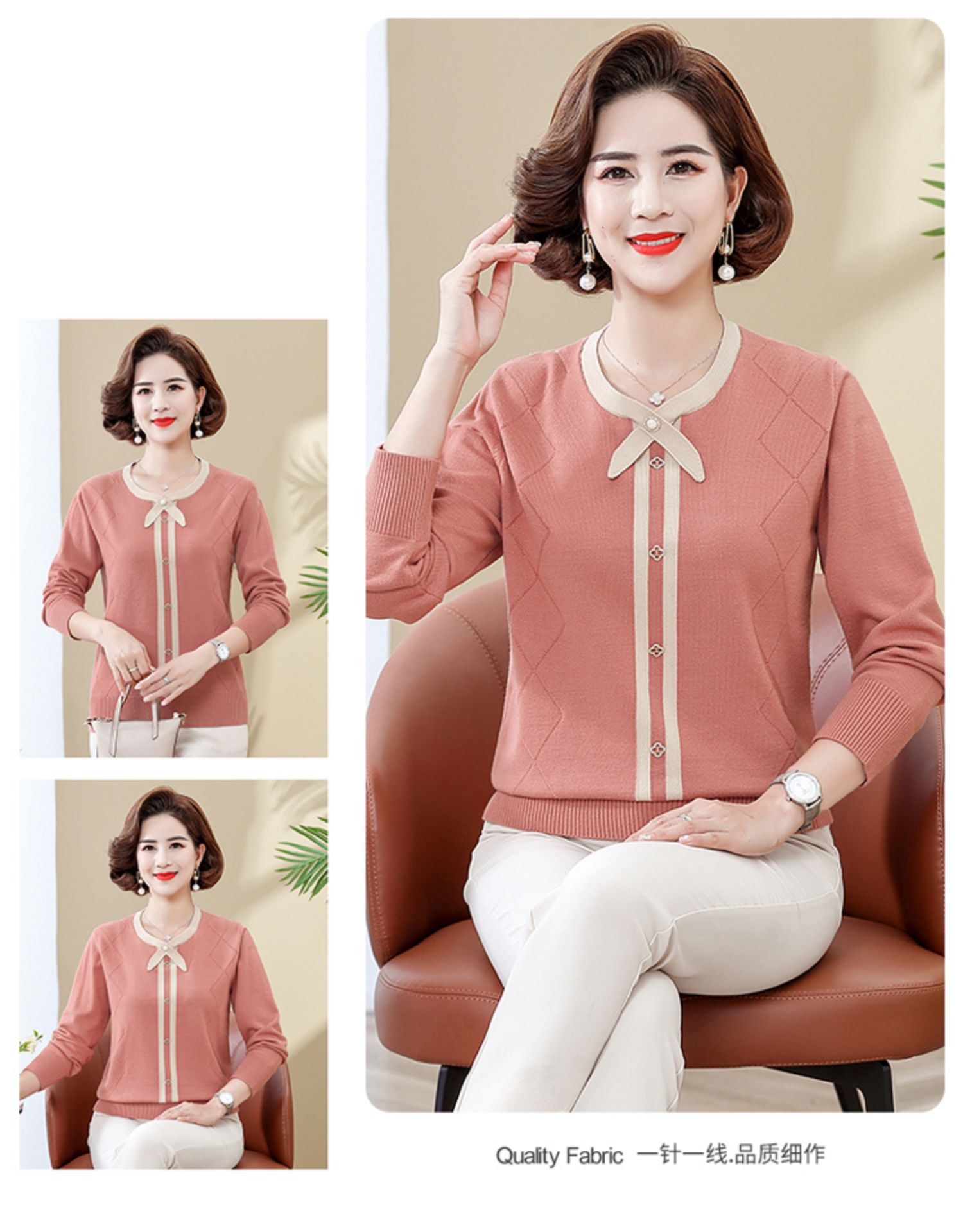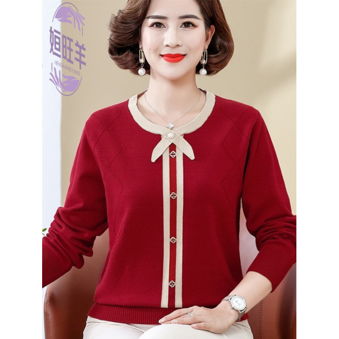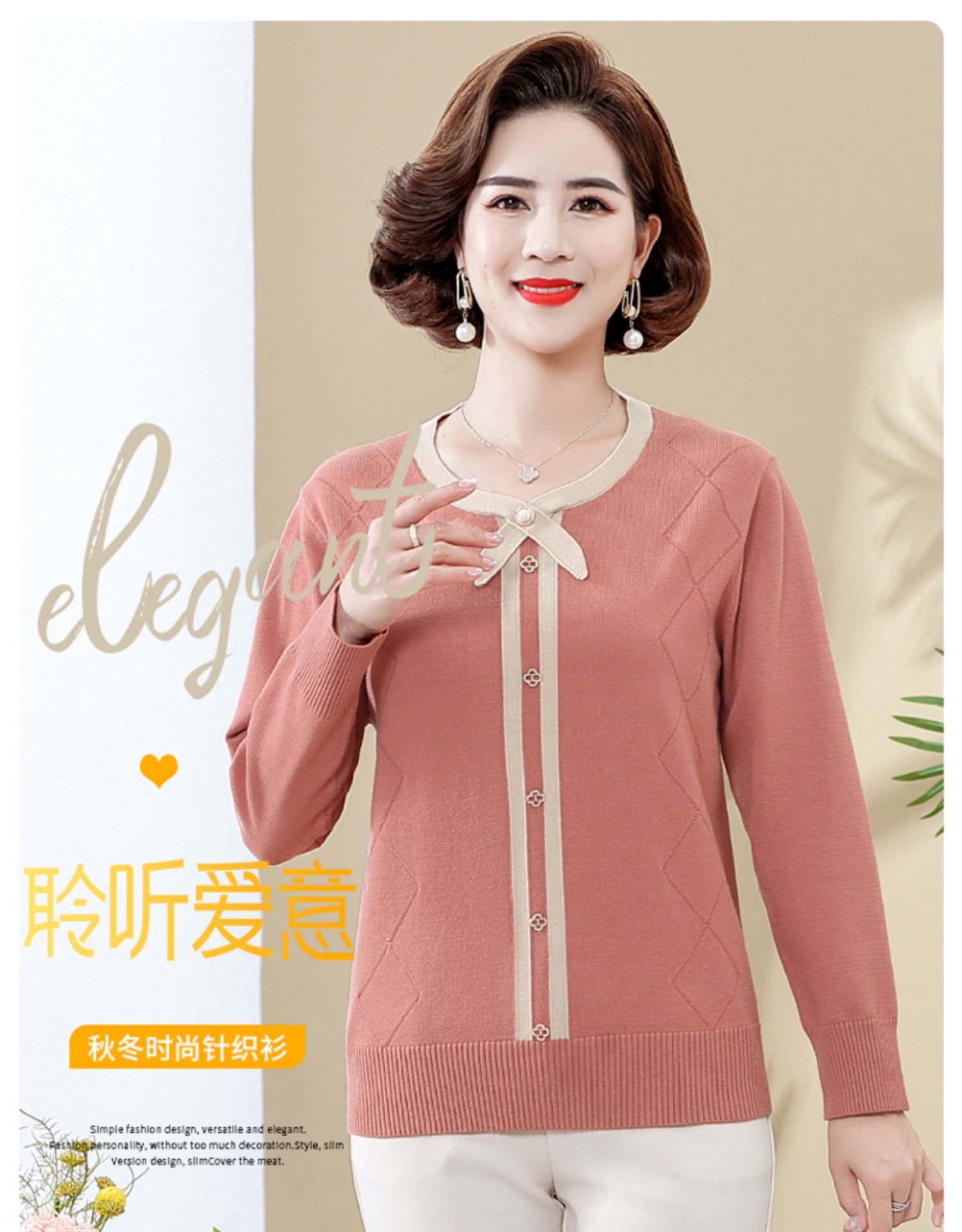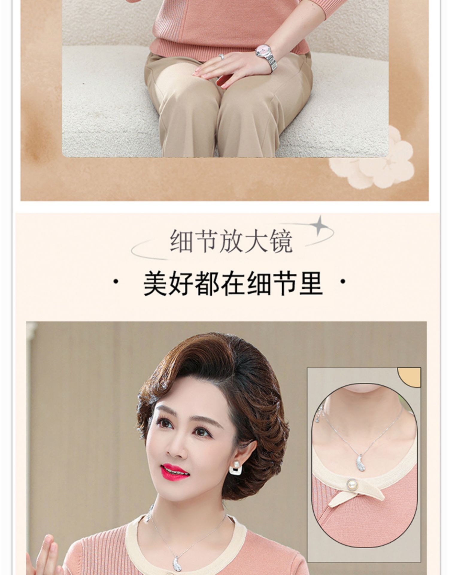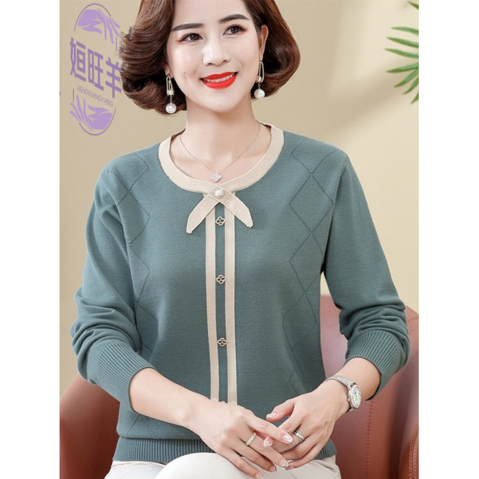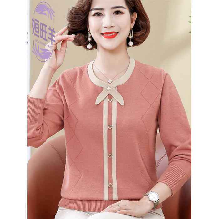 2025年新款秋季針織打底衫上衣中老年薄款毛衫媽媽毛衣女春秋時尚