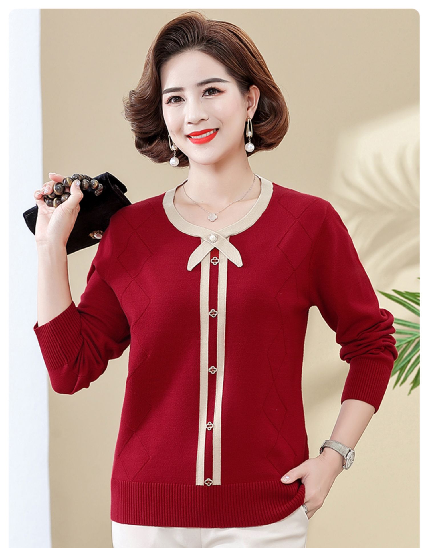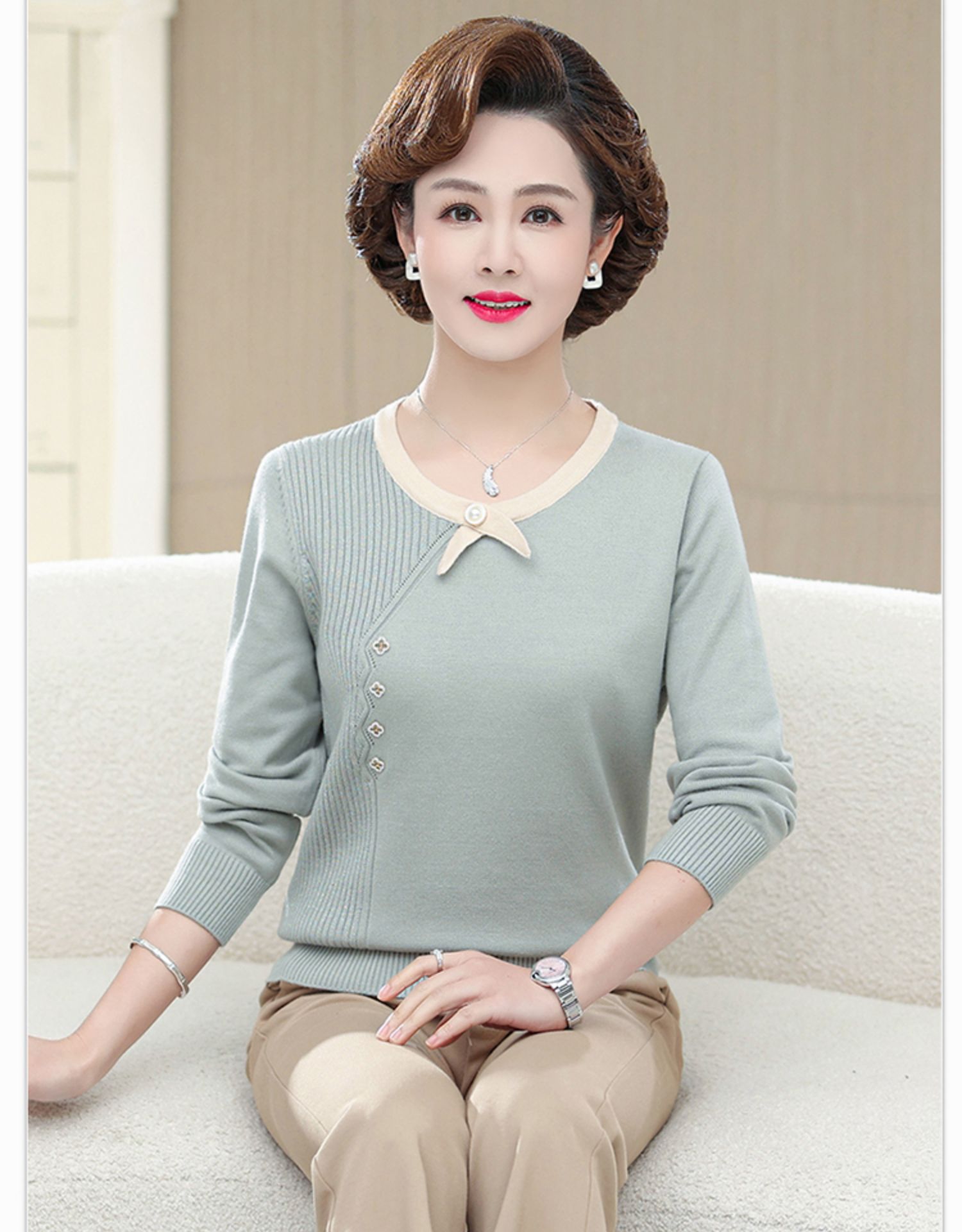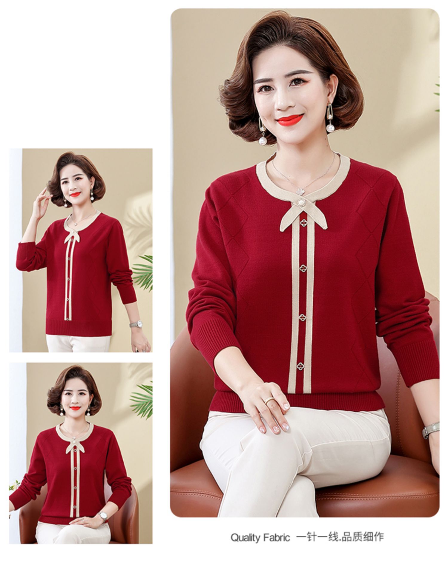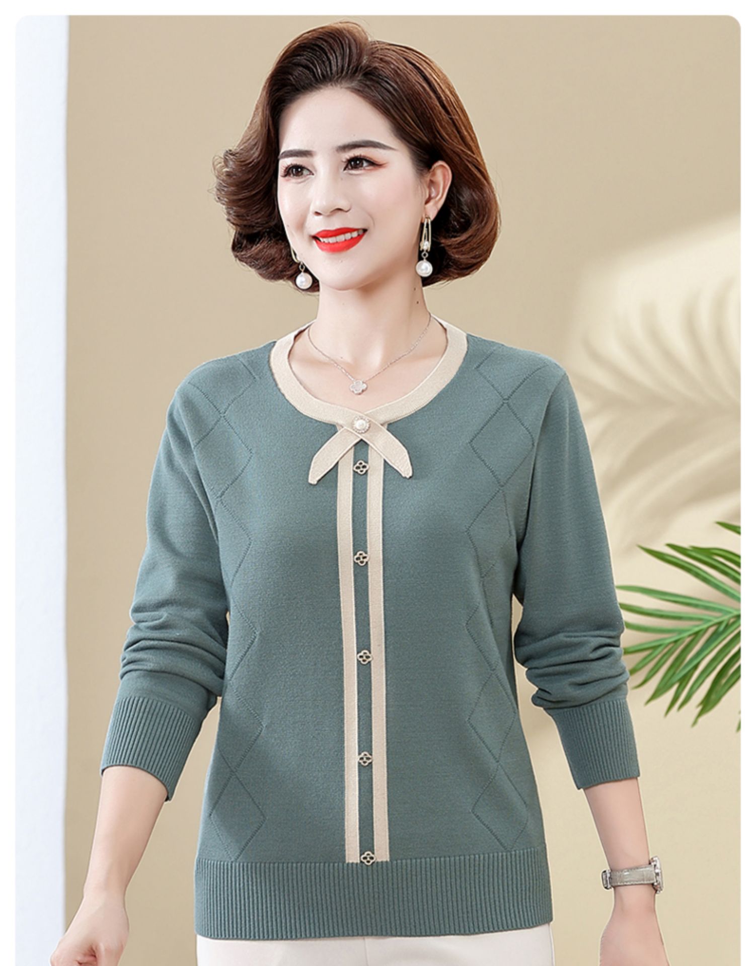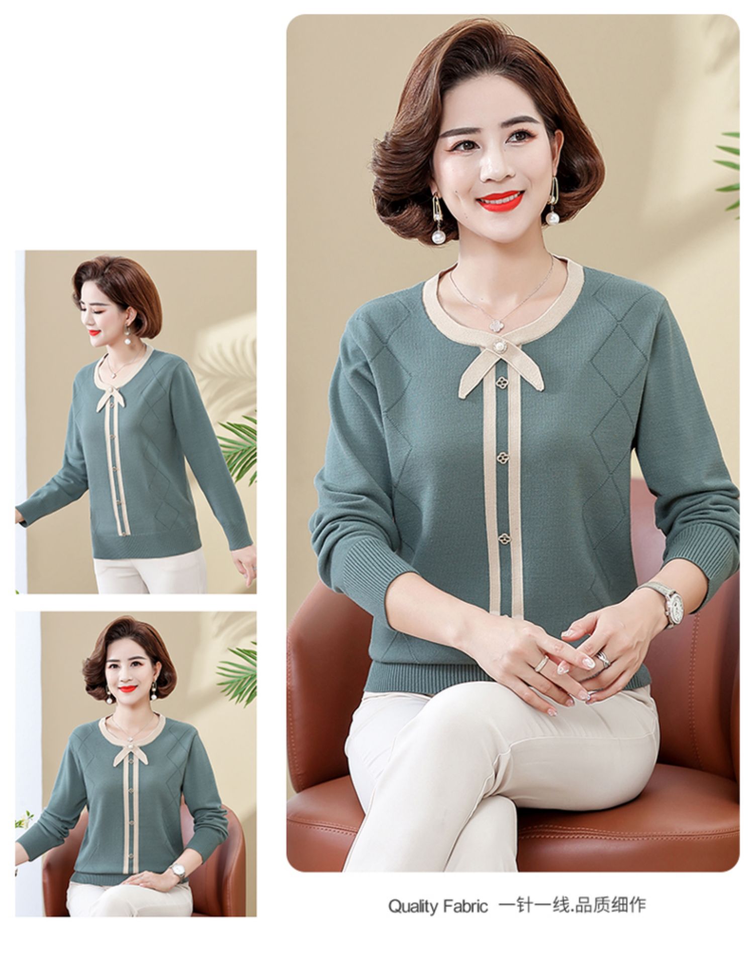 2025年新款秋季針織打底衫上衣中老年薄款毛衫媽媽毛衣女春秋時尚