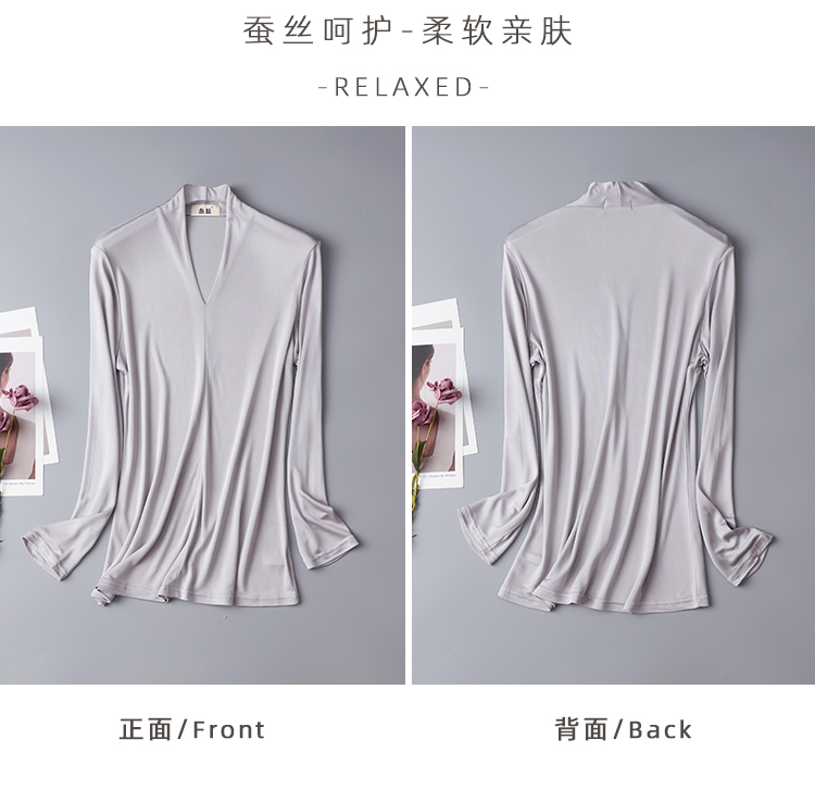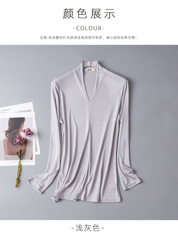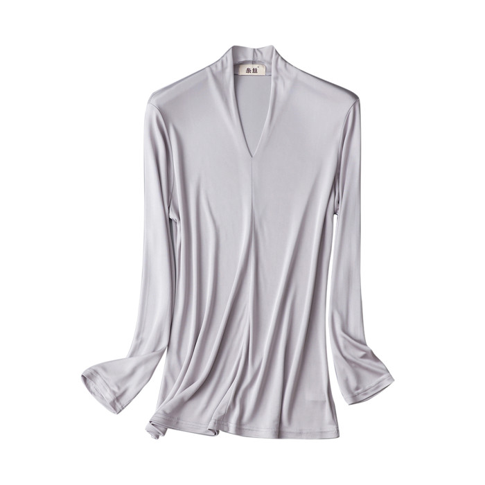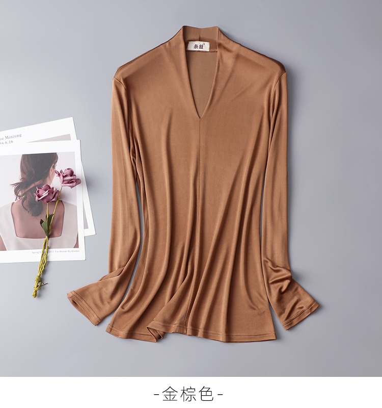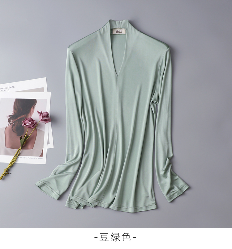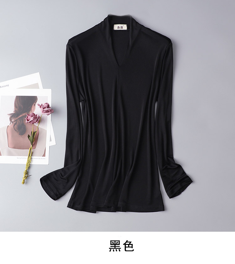 桑蠶絲純色V領上衣女 真絲簡約套頭時尚打底衫 親膚透氣百搭長袖