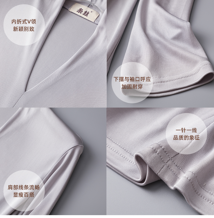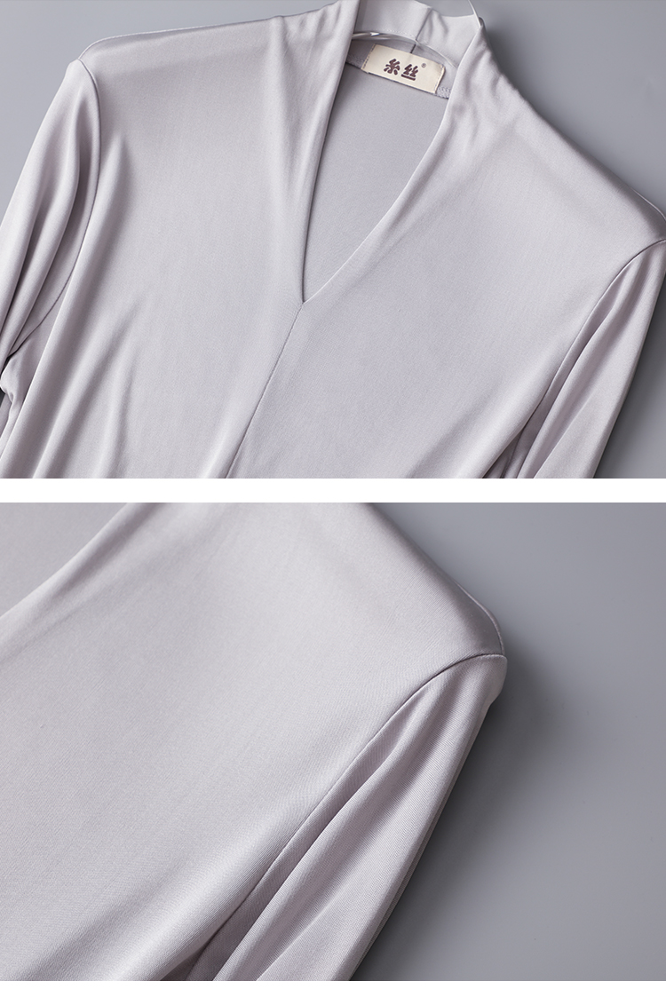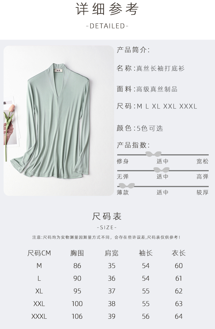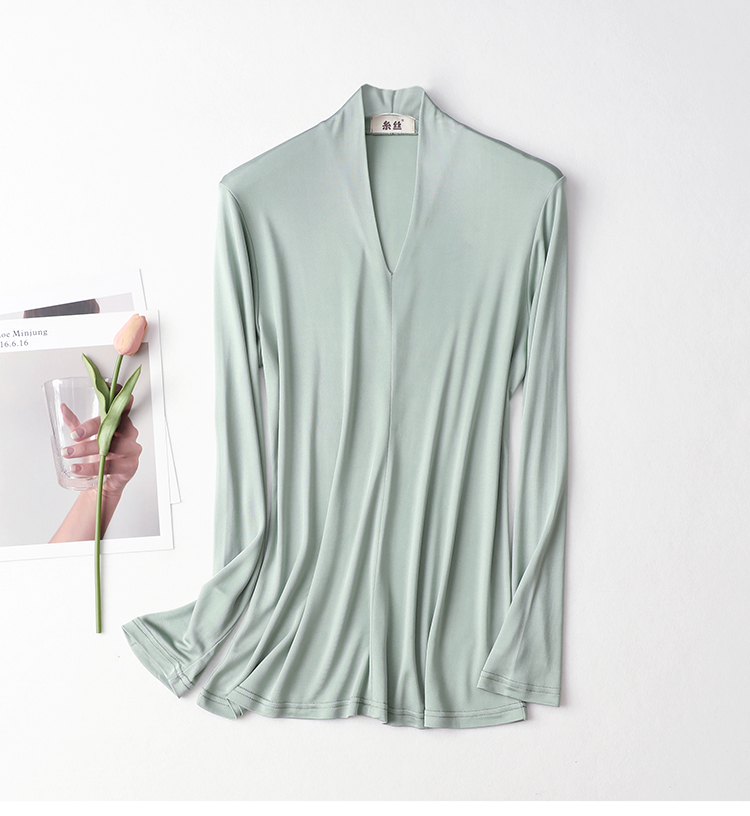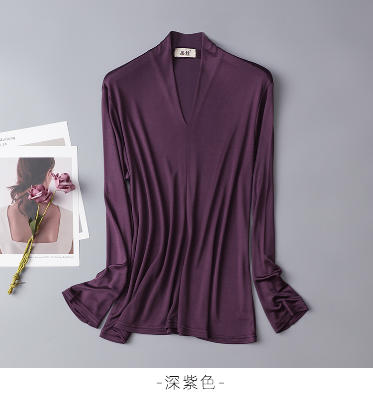 桑蠶絲純色V領上衣女 真絲簡約套頭時尚打底衫 親膚透氣百搭長袖