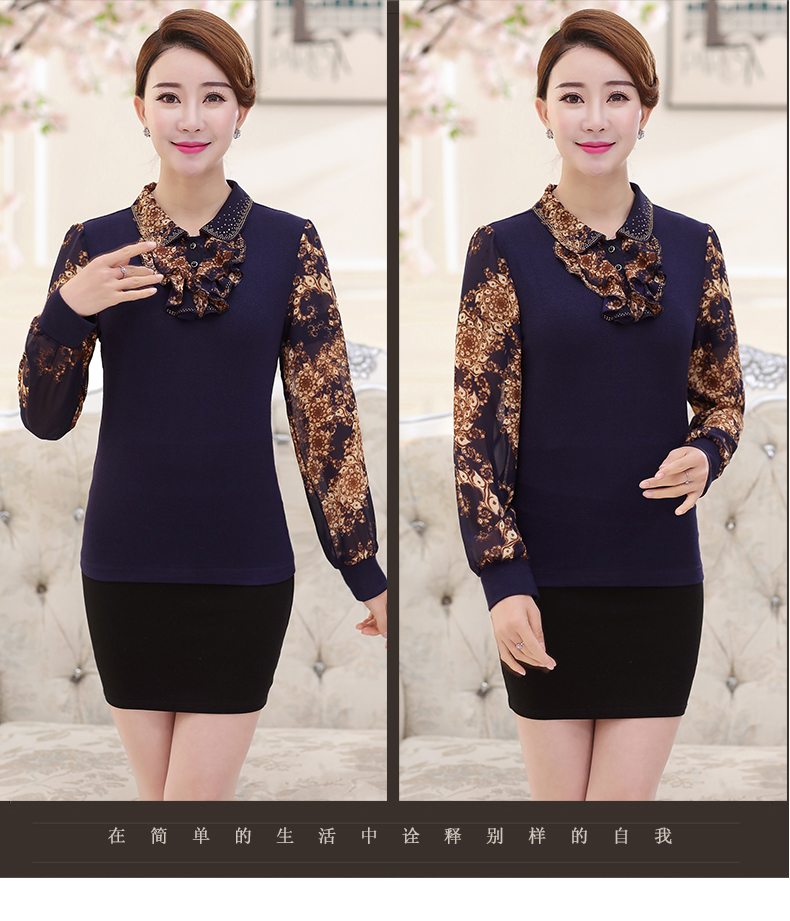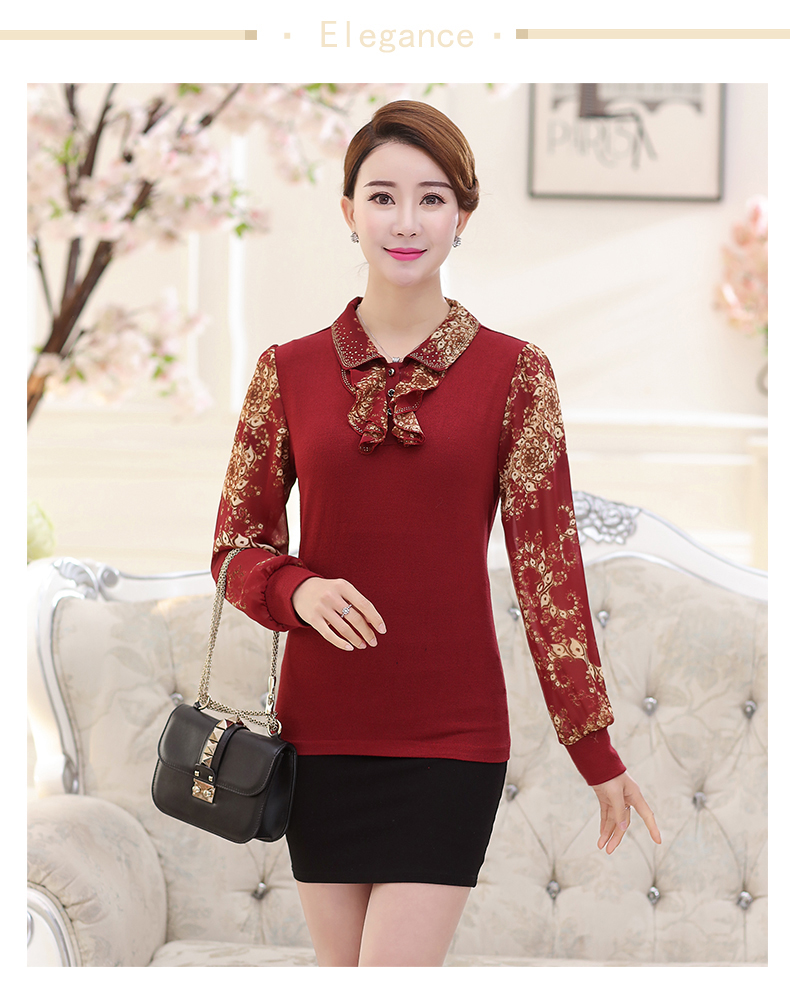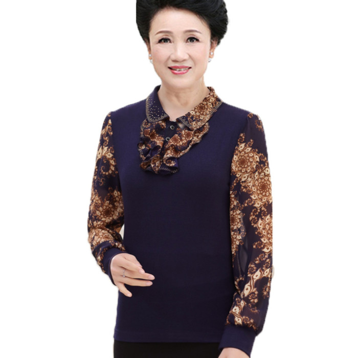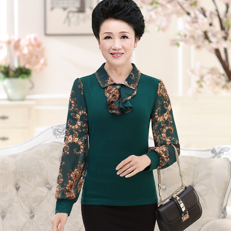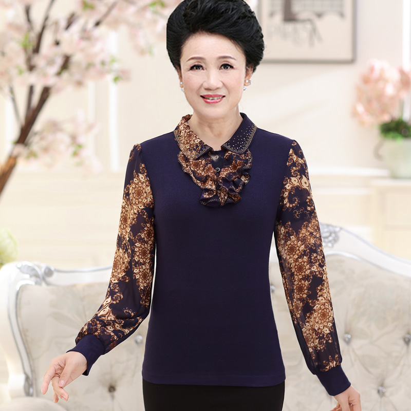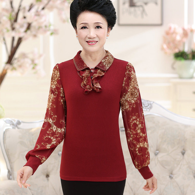 春秋季媽媽打底衫大碼雪紡秋薄款寬松洋氣針織衫中老年女長袖衛衣