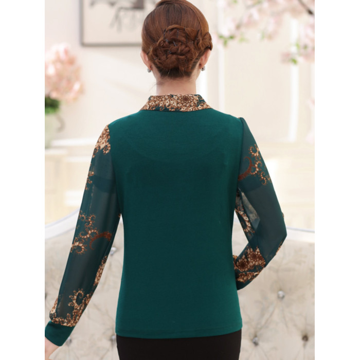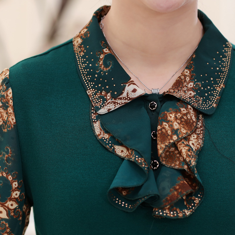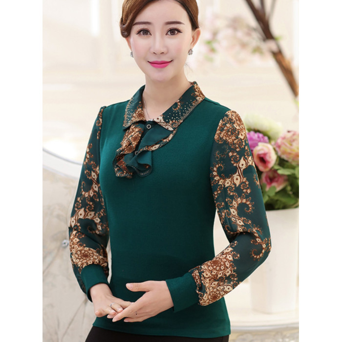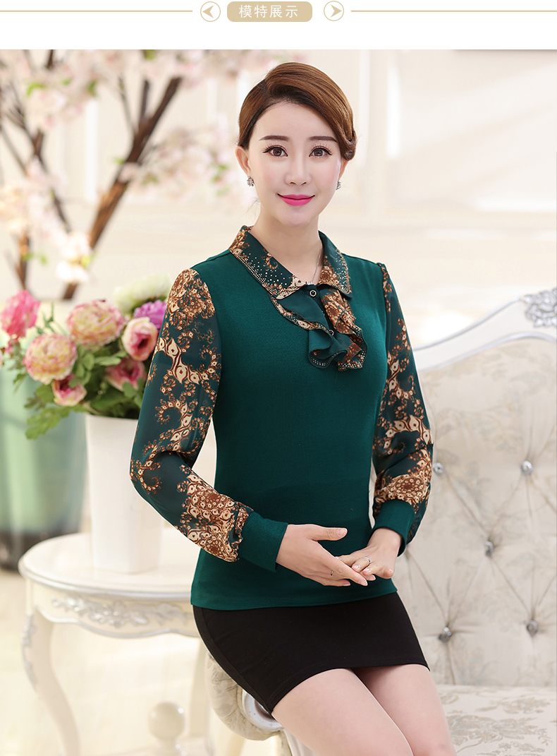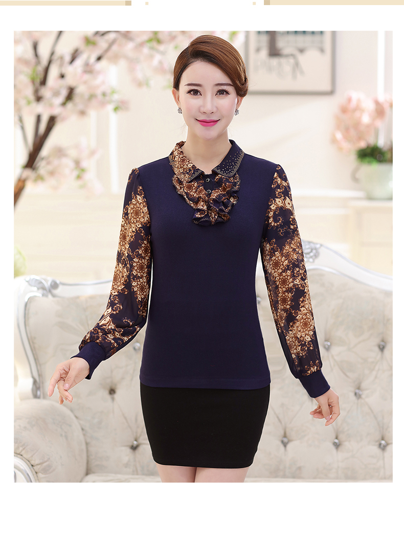 春秋季媽媽打底衫大碼雪紡秋薄款寬松洋氣針織衫中老年女長袖衛衣