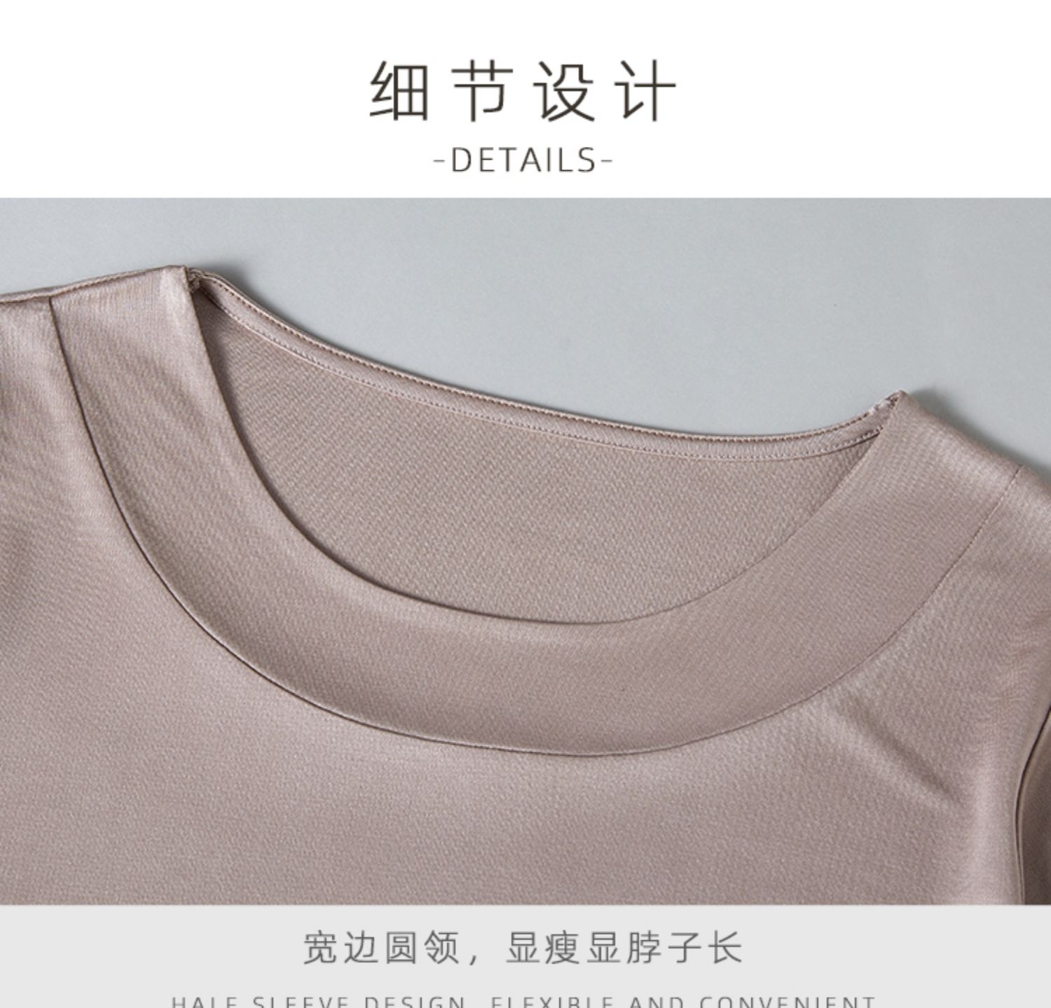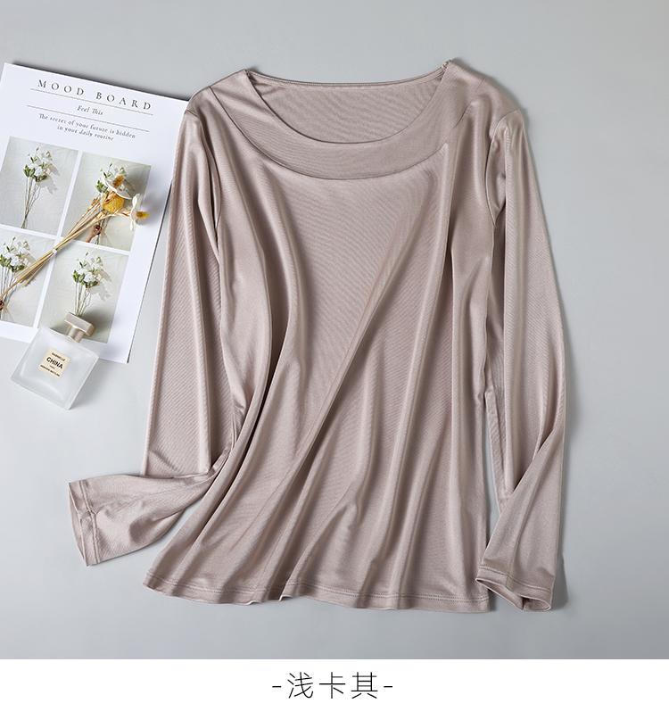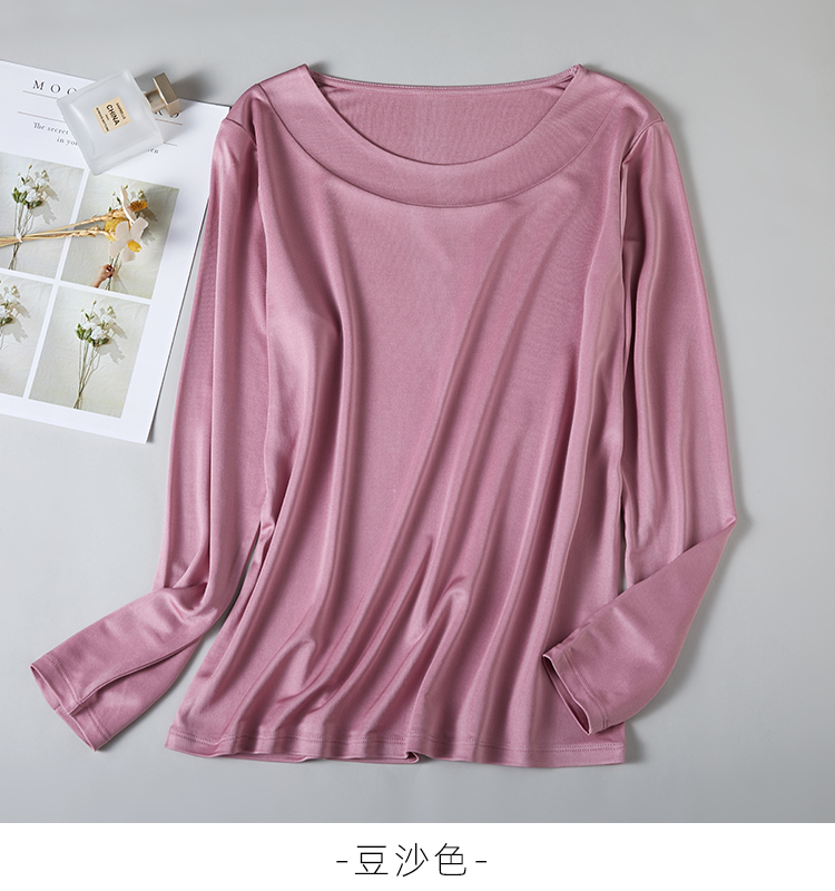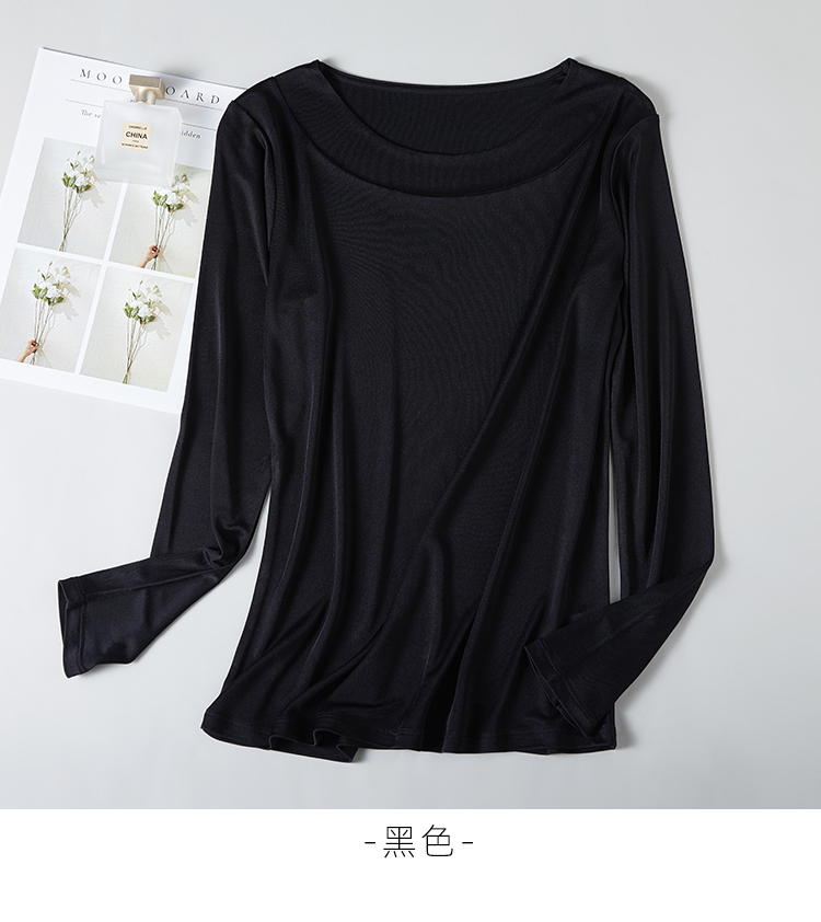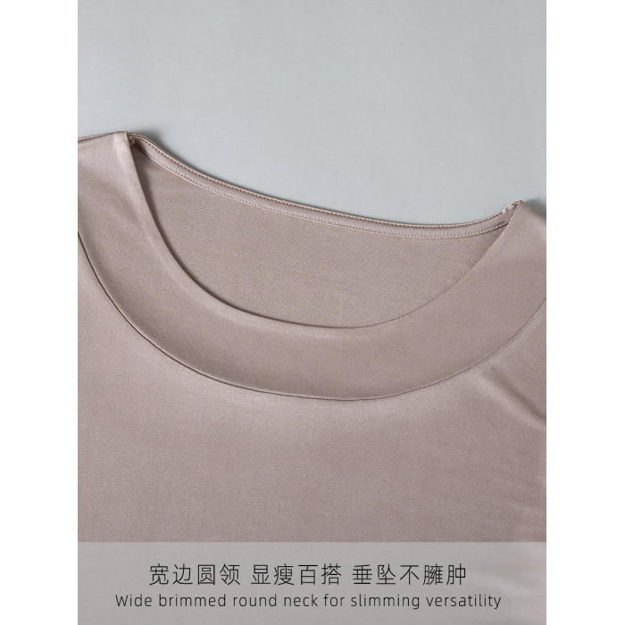 6A級桑蠶絲寬邊圓領打底衫 100%重磅真絲親膚柔軟簡約大碼女上衣