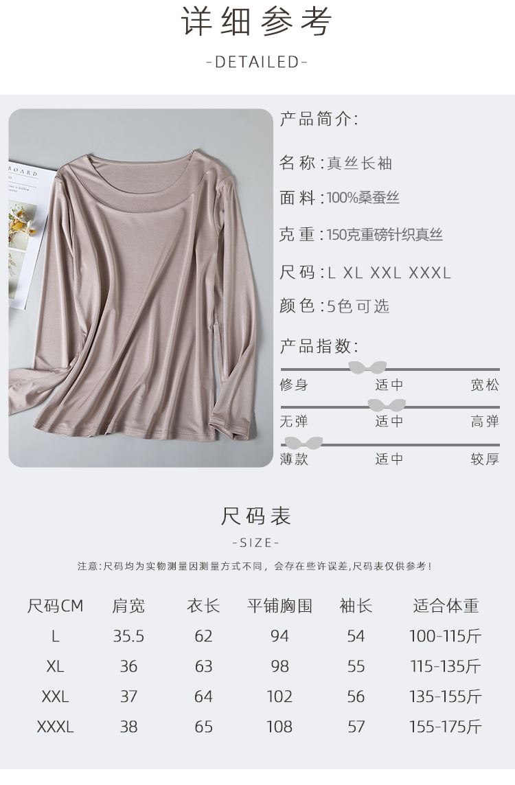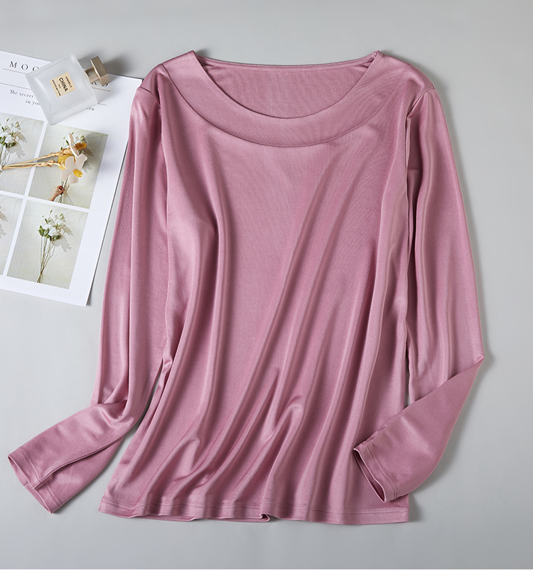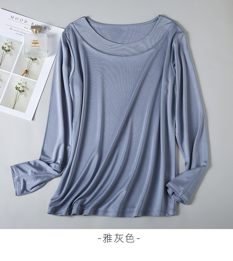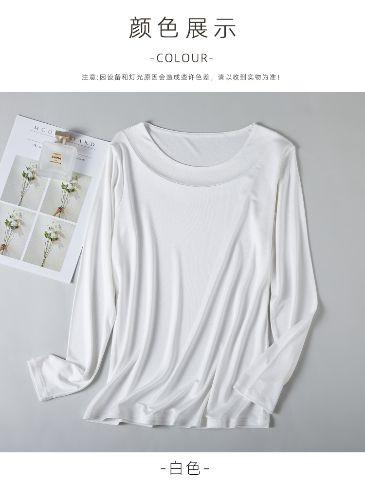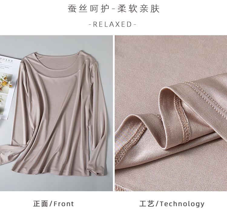 6A級桑蠶絲寬邊圓領打底衫 100%重磅真絲親膚柔軟簡約大碼女上衣