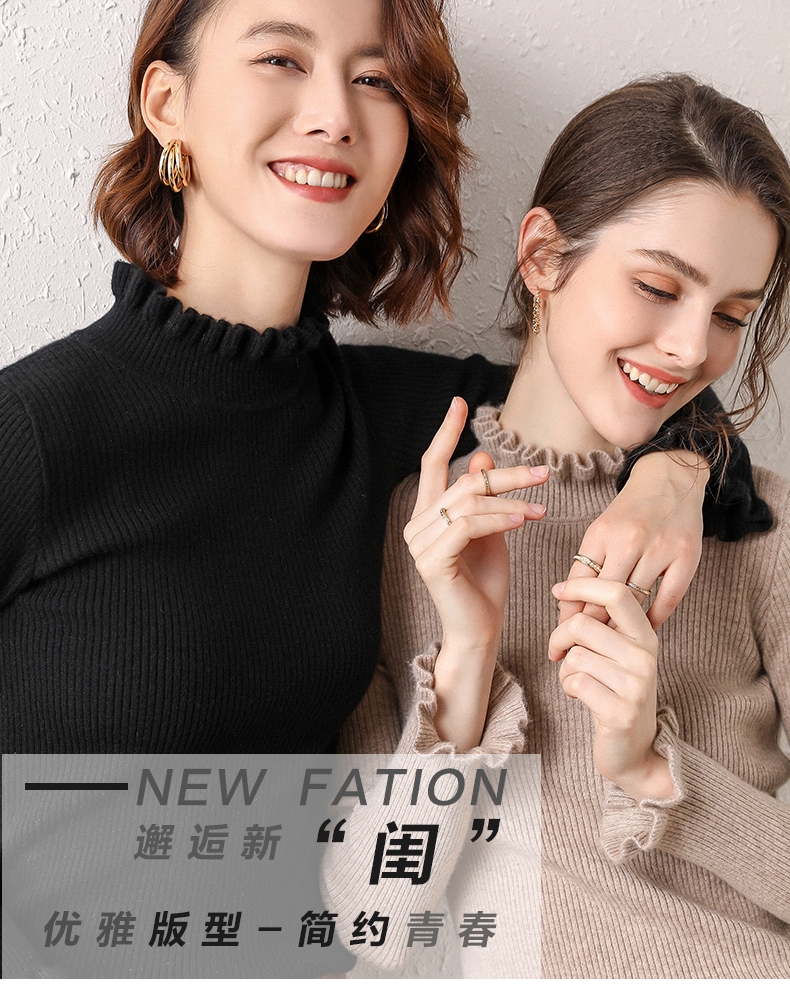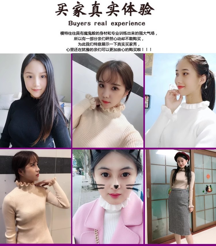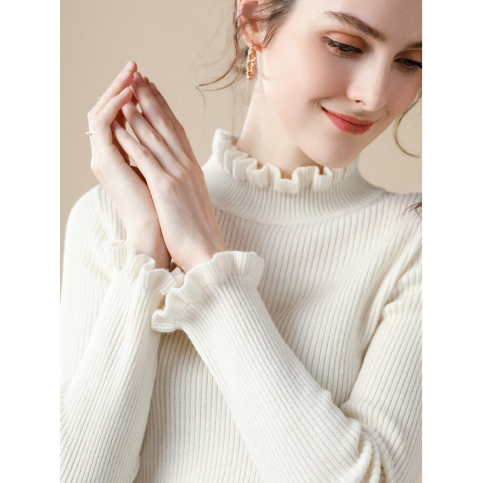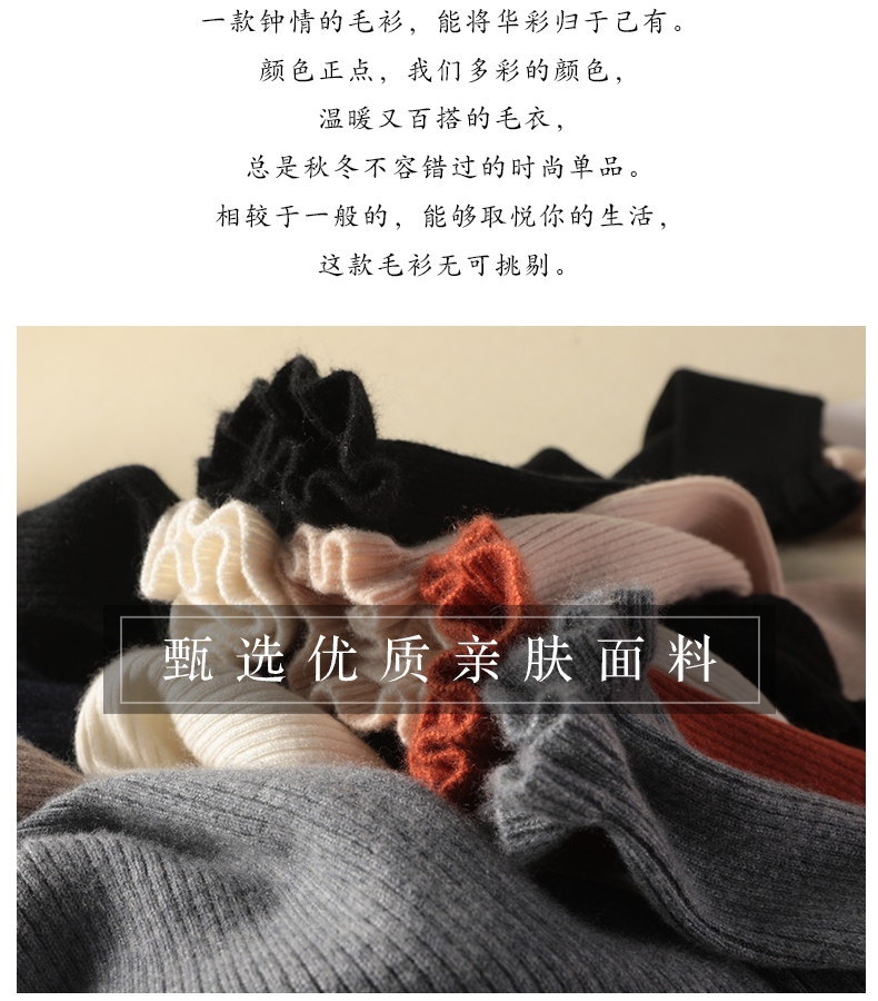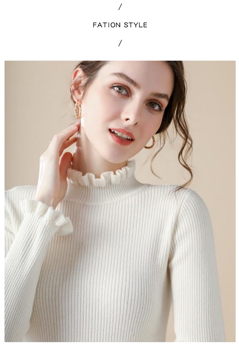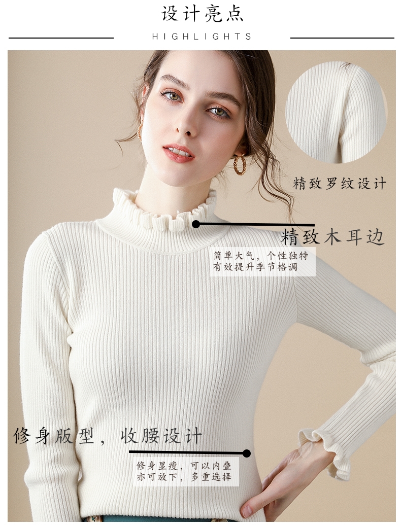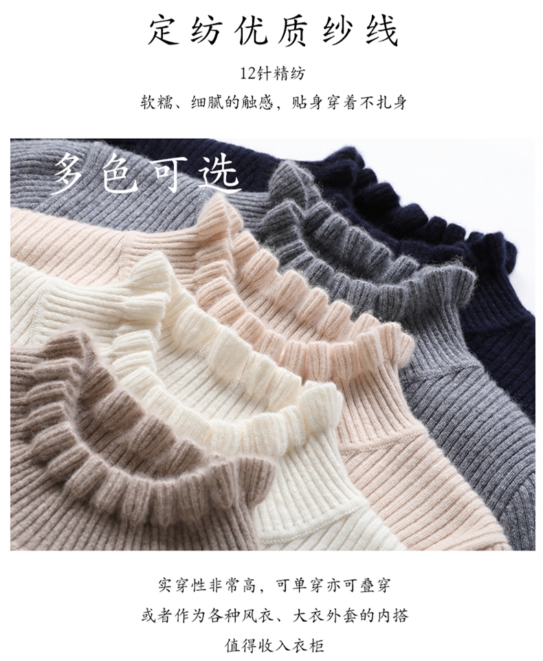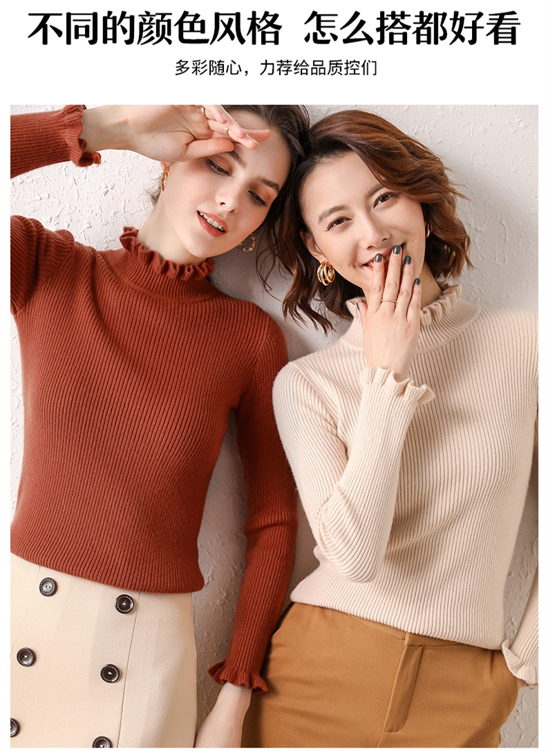木耳邊半高領毛衣女秋冬大衣內搭修身軟糯上衣緊身中領針織打底衫