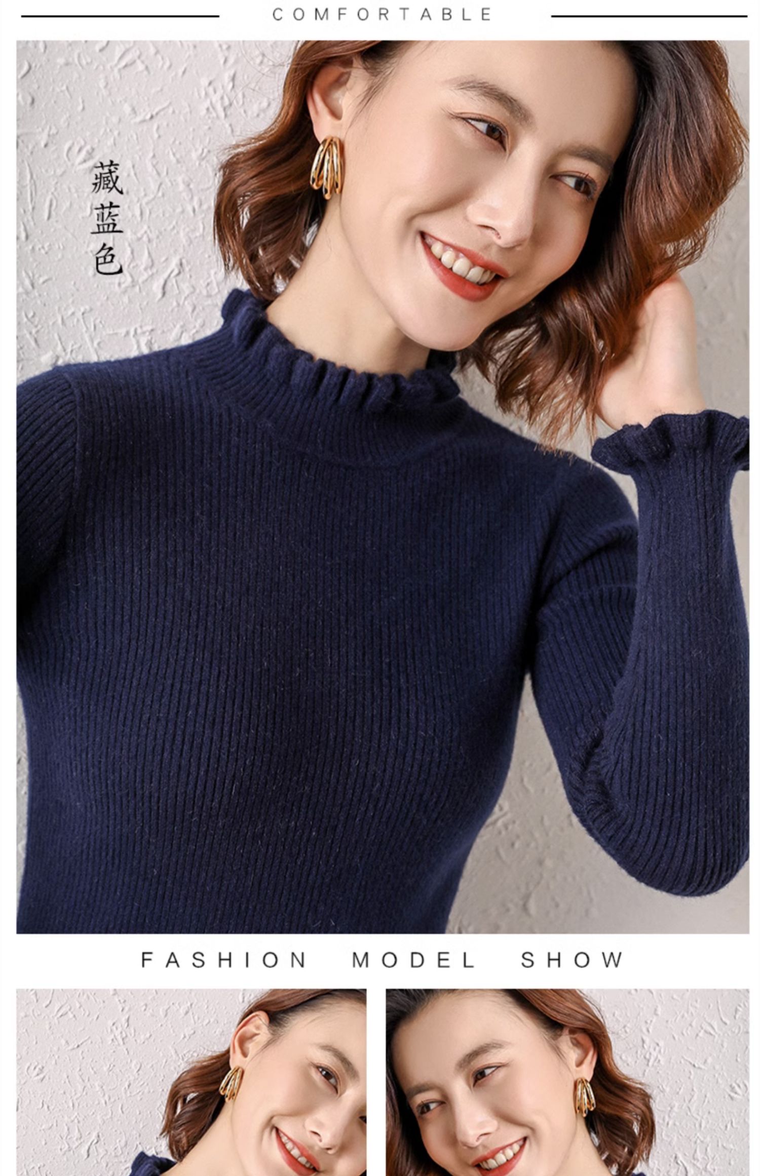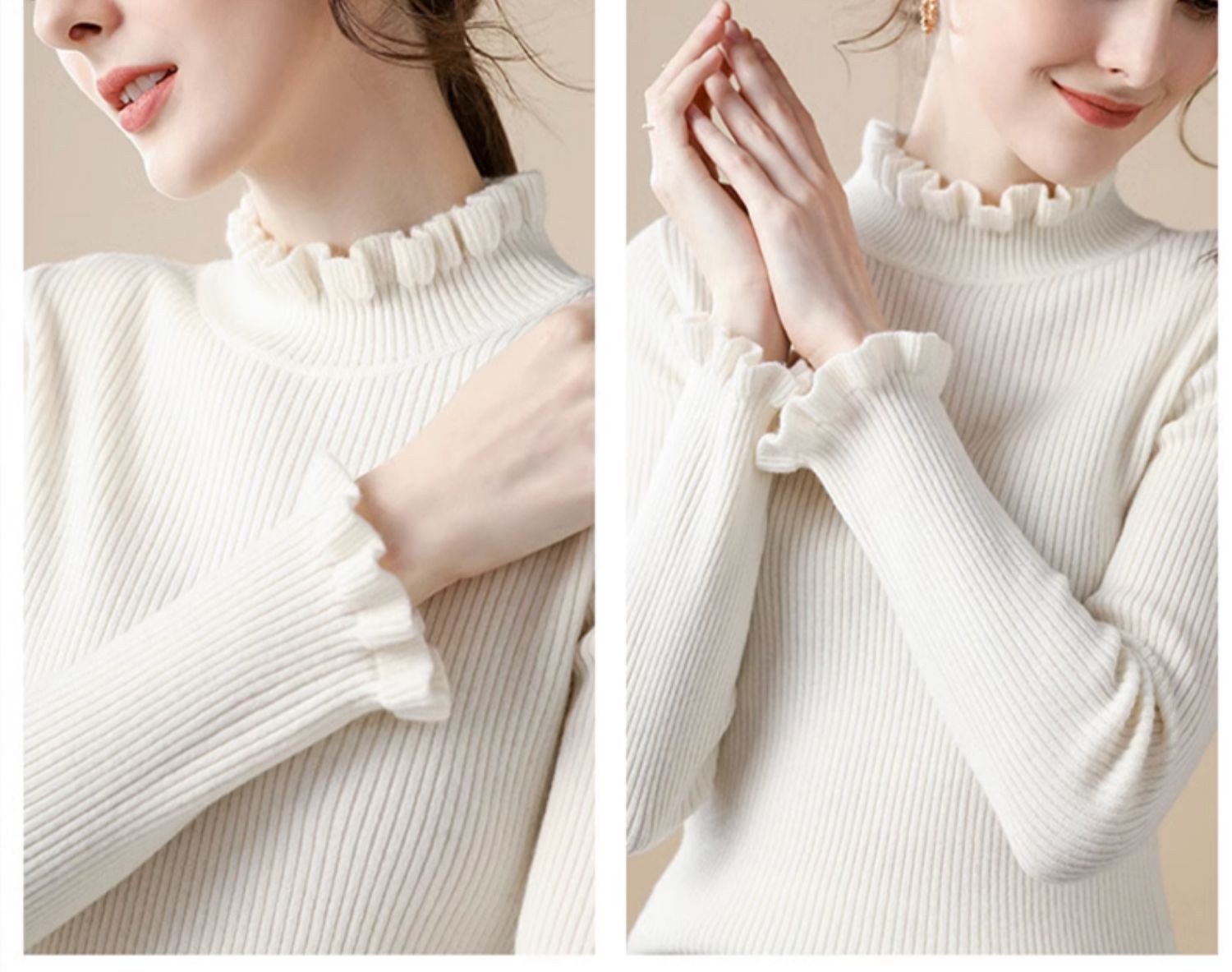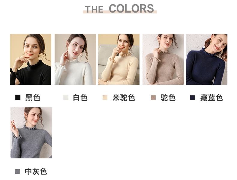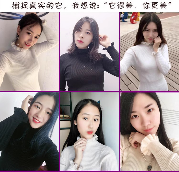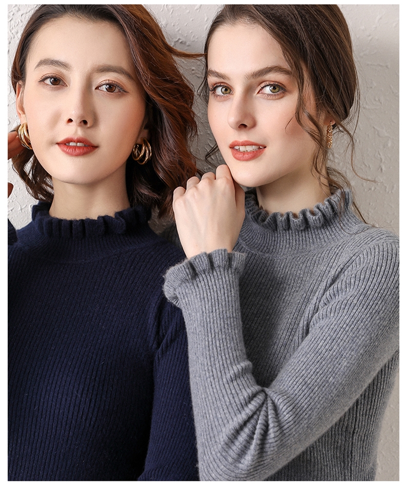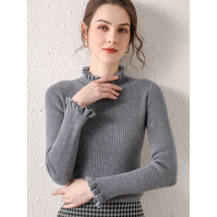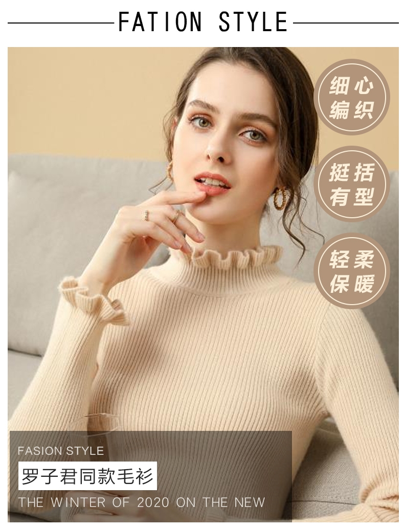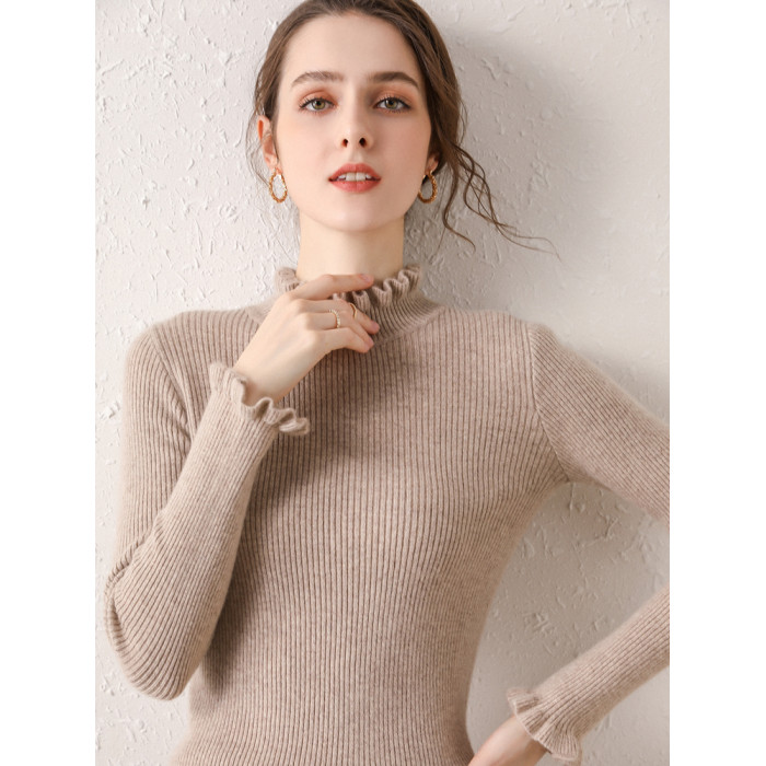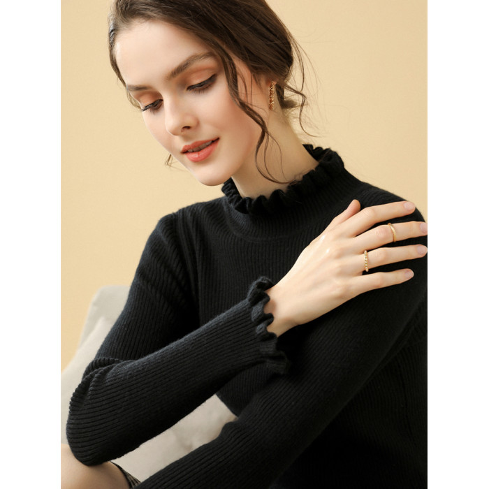 木耳邊半高領毛衣女秋冬大衣內搭修身軟糯上衣緊身中領針織打底衫