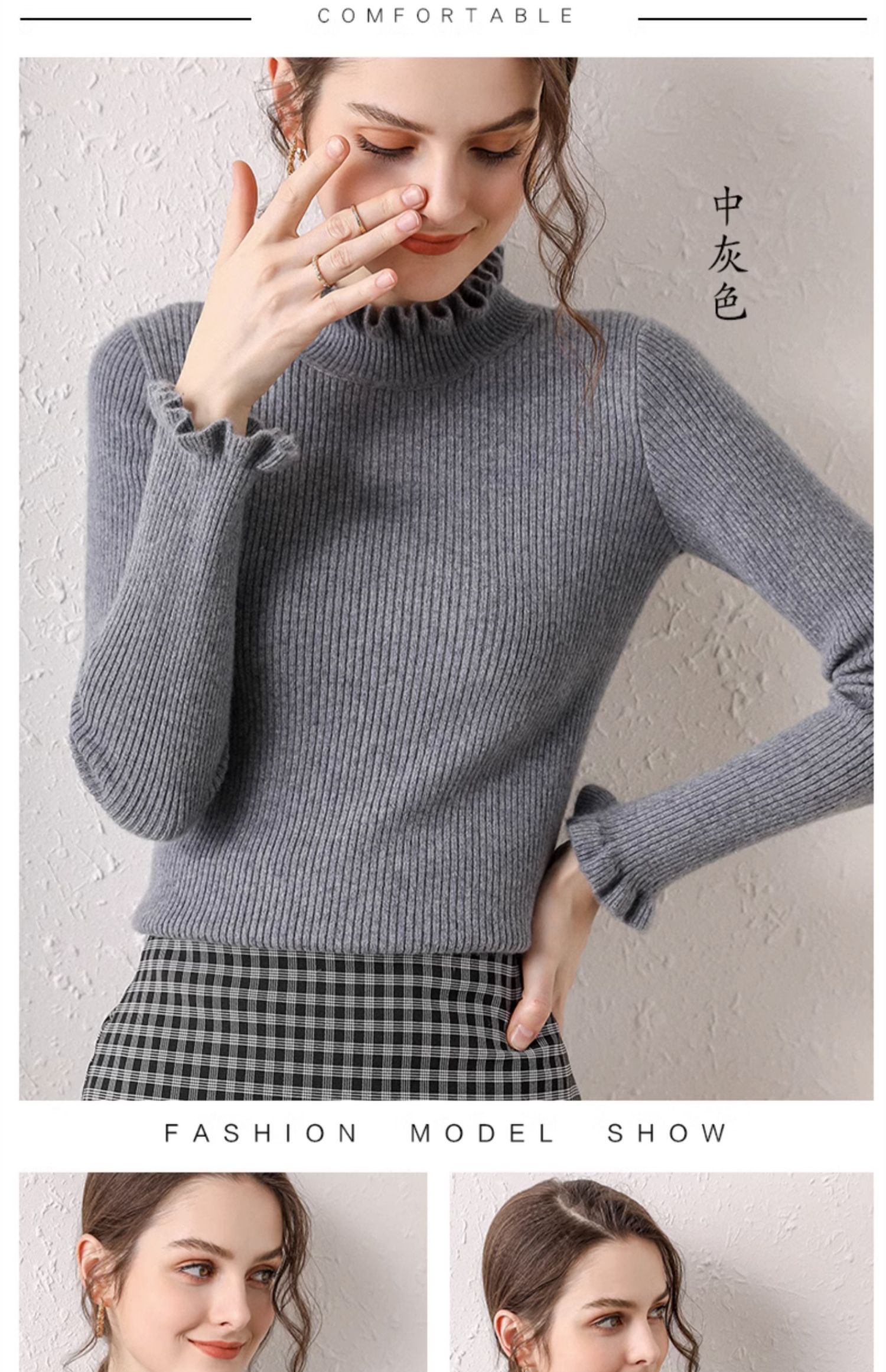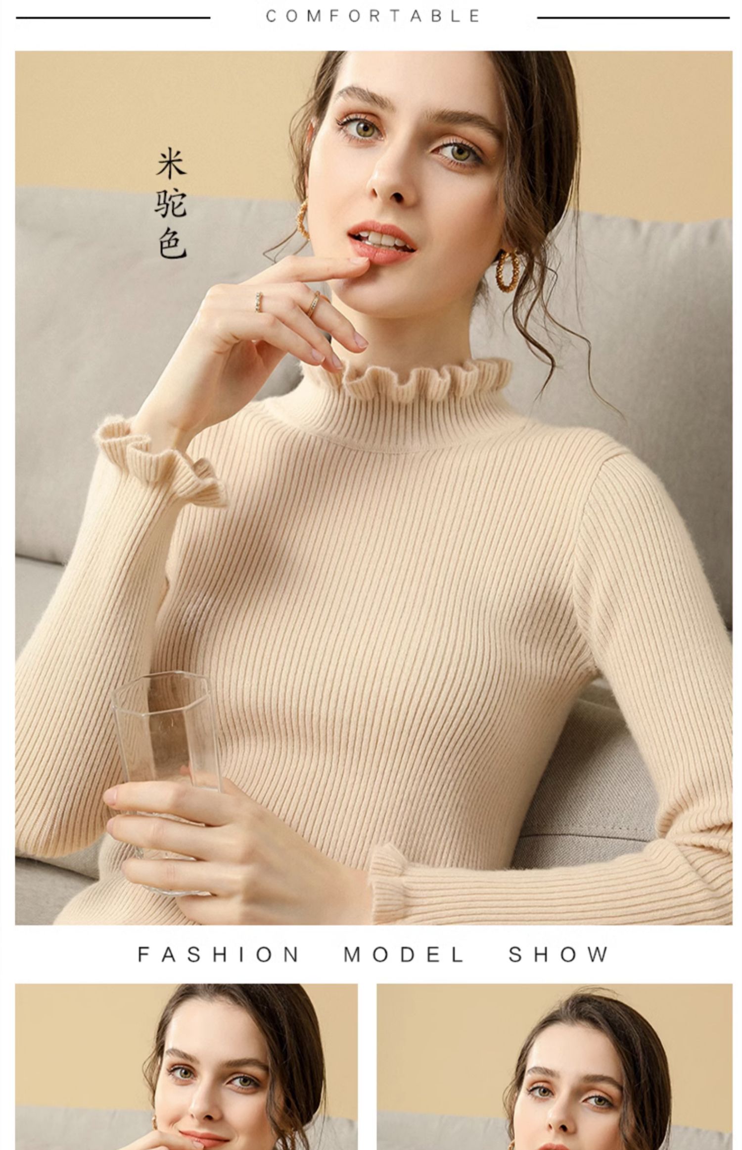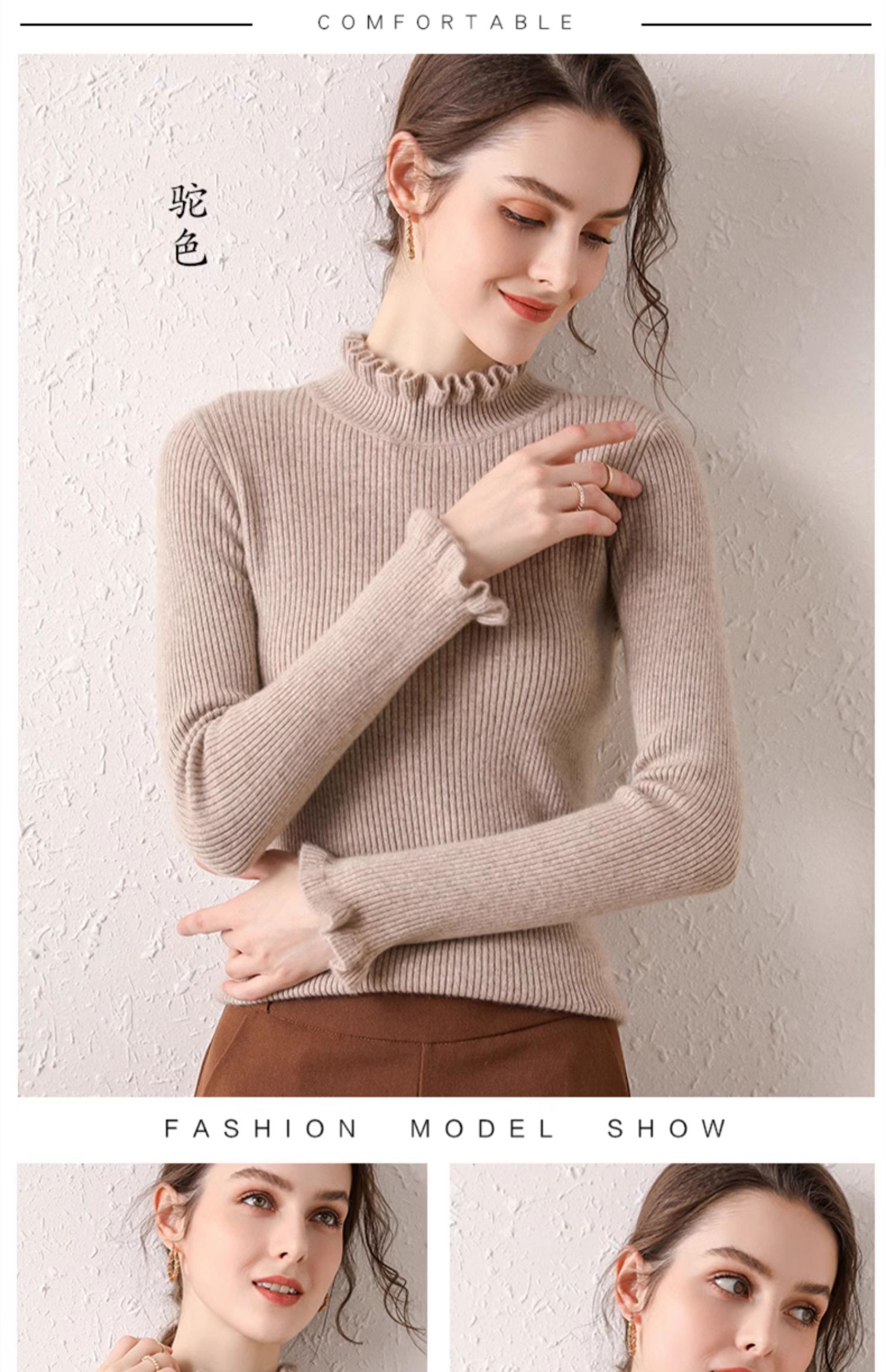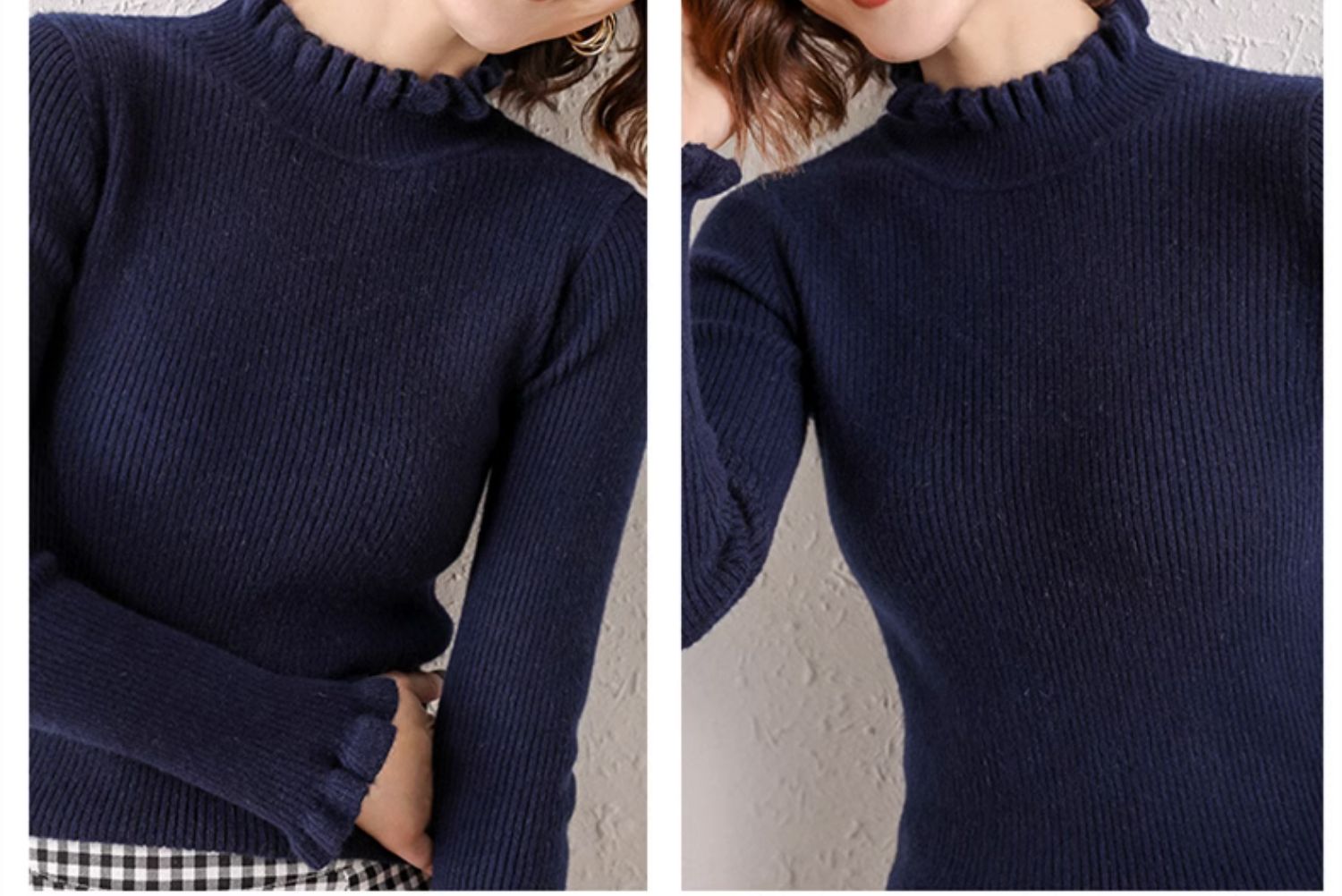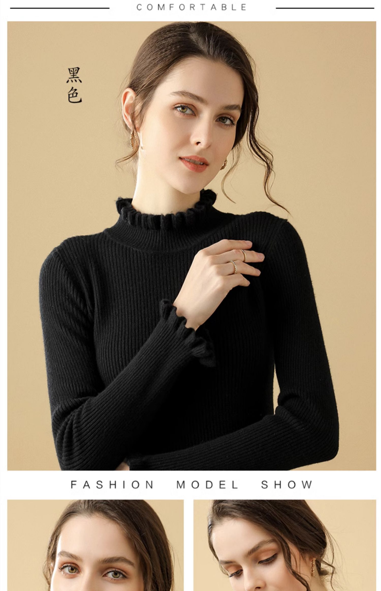 木耳邊半高領毛衣女秋冬大衣內搭修身軟糯上衣緊身中領針織打底衫