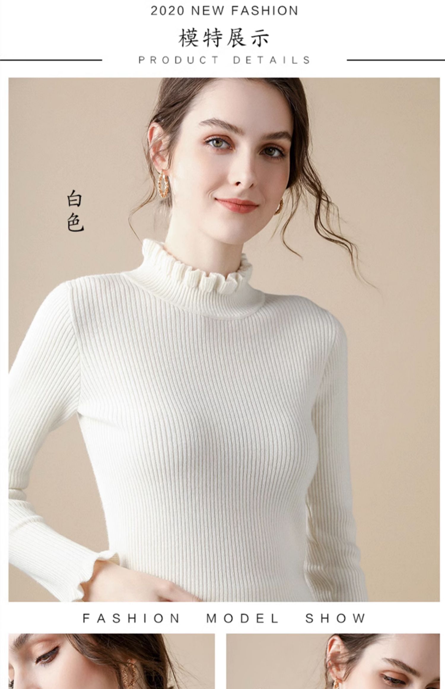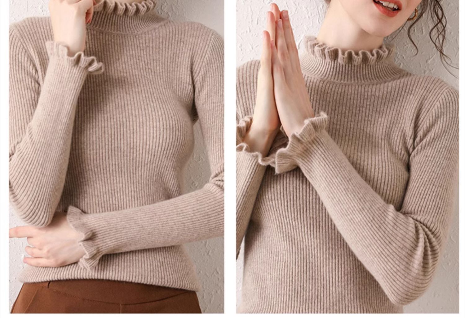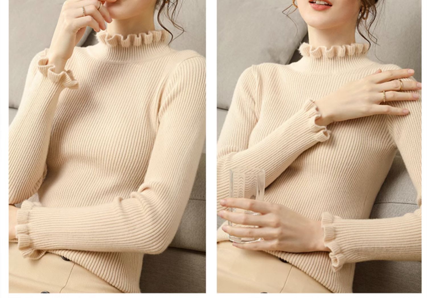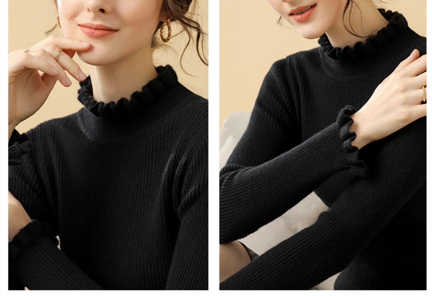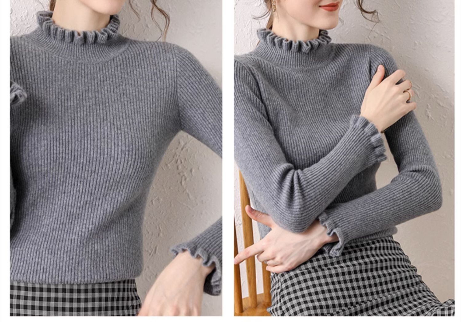 木耳邊半高領毛衣女秋冬大衣內搭修身軟糯上衣緊身中領針織打底衫