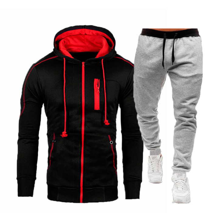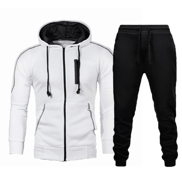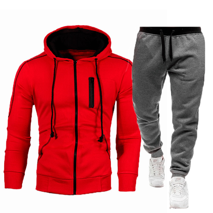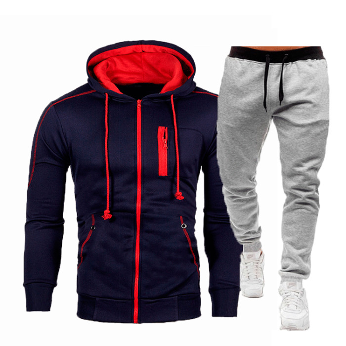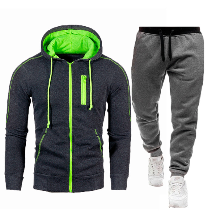秋冬新款男士休閒開衫連帽衛衣青少年男裝外套套裝