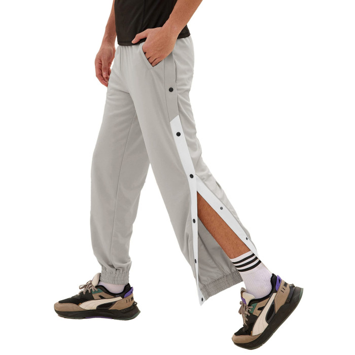男士排釦褲男寬松束腳運動褲男全開釦休閒長褲子籃球訓練紐釦褲
