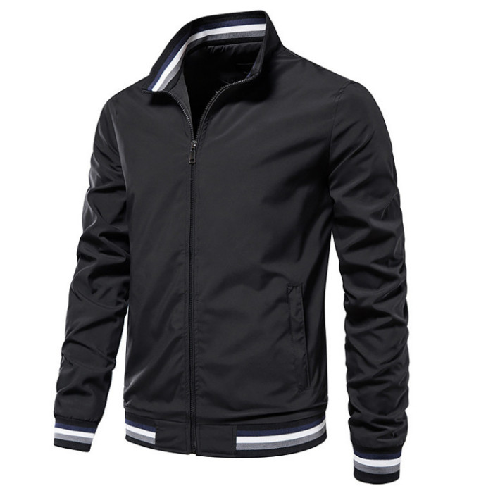 新款男士休閒夾克春秋季運動純色男士外套
