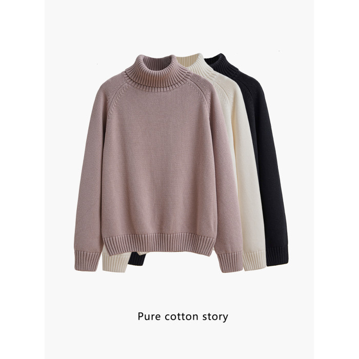歐單新款 粗線全棉100% 高領毛衣女士打底衫加厚套頭針織衫 寬松5