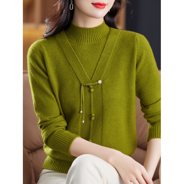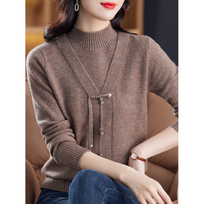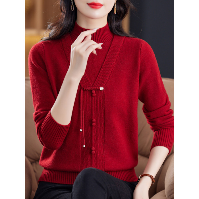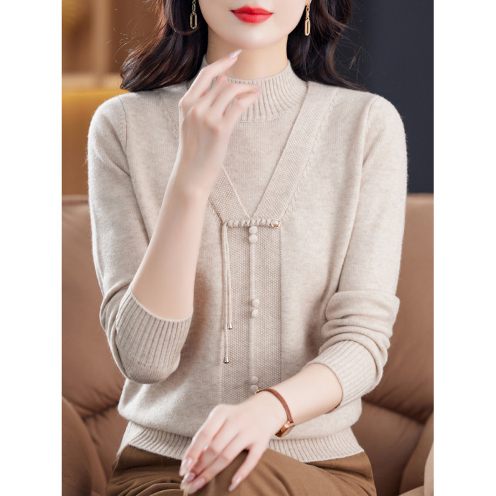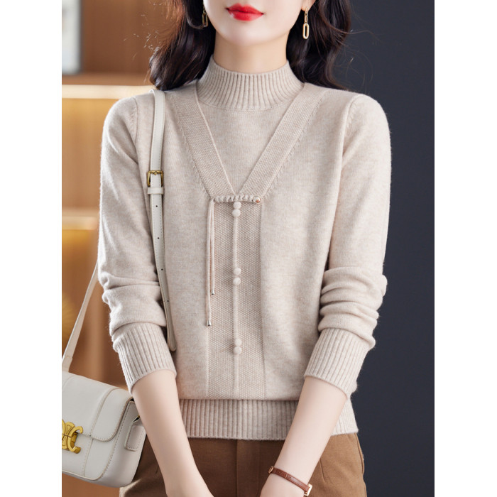 中年媽媽春秋半高領針織衫新款秋冬保暖羊絨毛衣內搭打底衫上衣