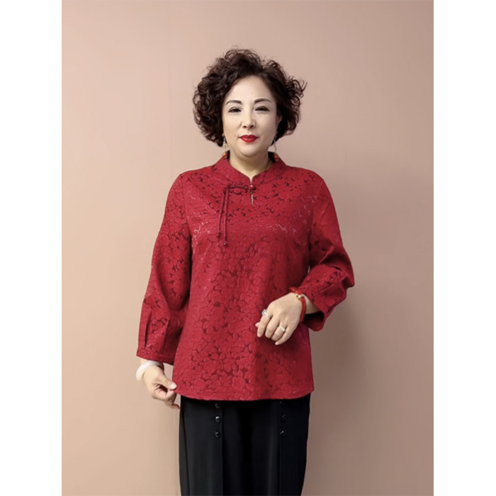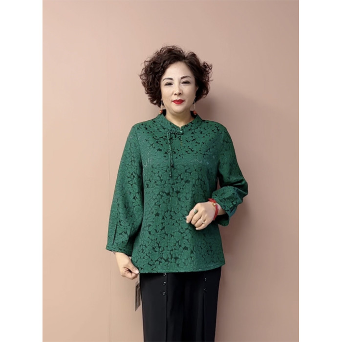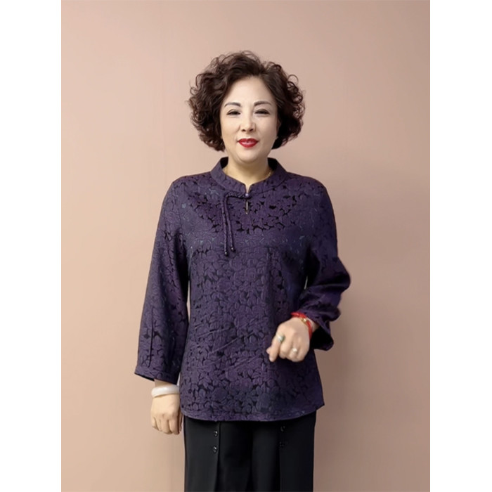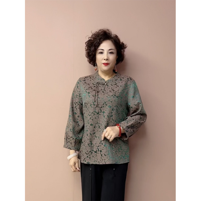 2025春季新款真絲上衣復古民族風厚料流蘇盤釦設計感媽媽裝打底衫