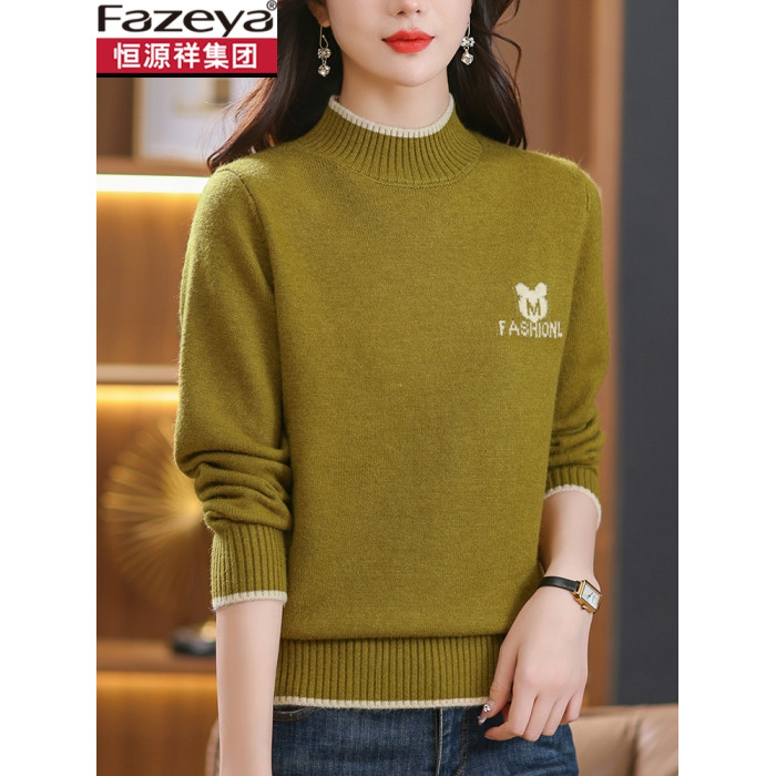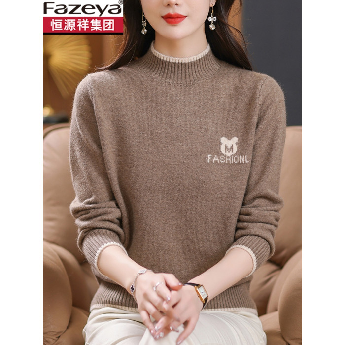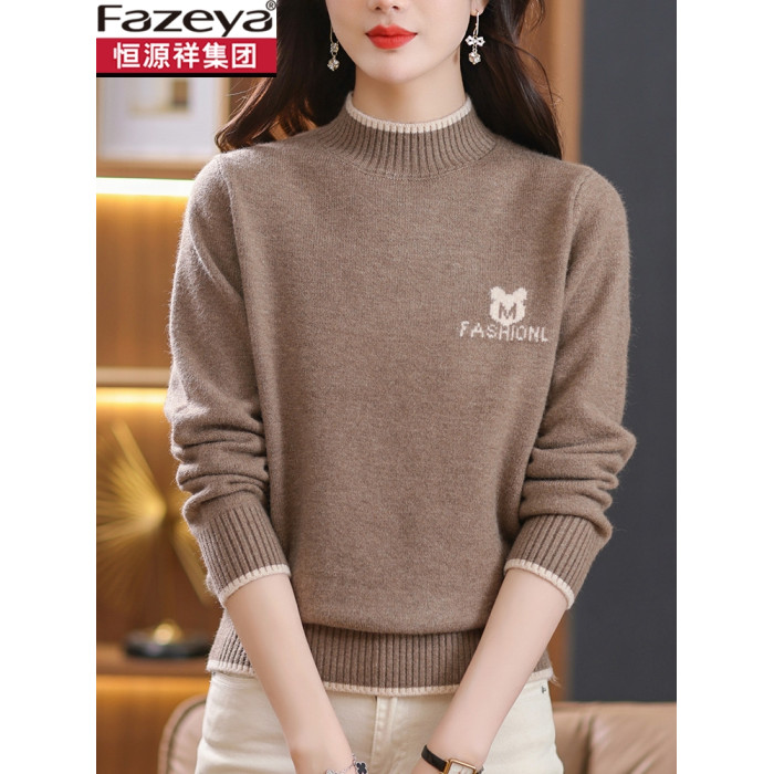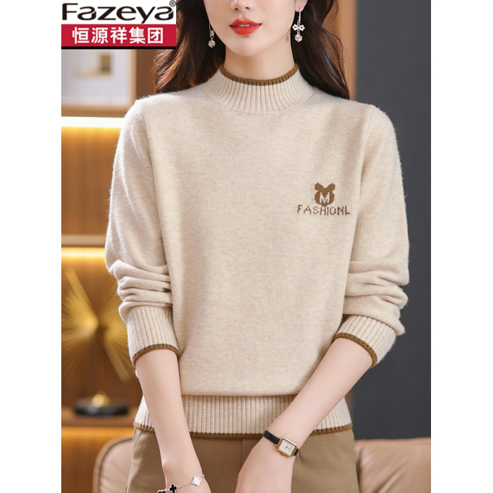 恒源祥彩羊半高領羊毛衫女2025新款秋冬季加厚毛衣針織內搭打底衫