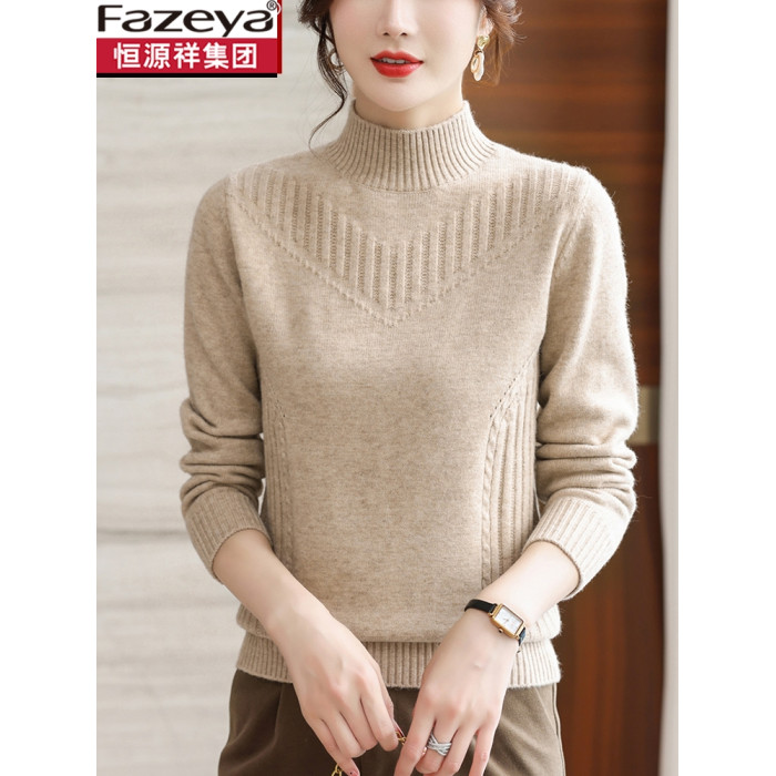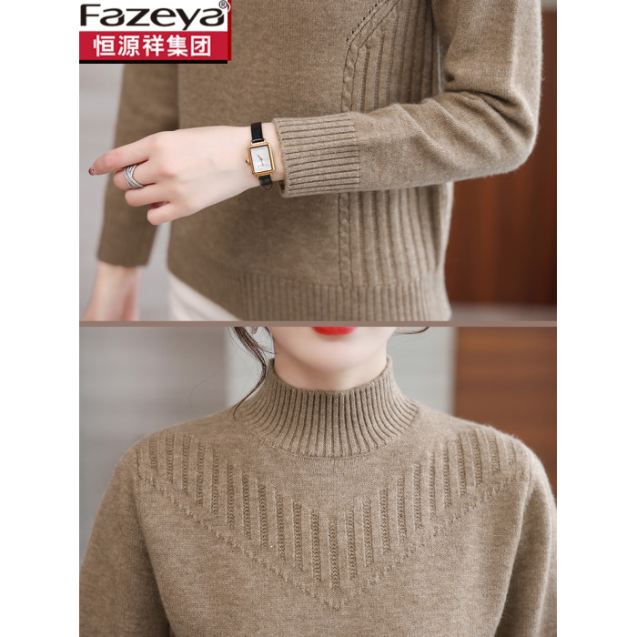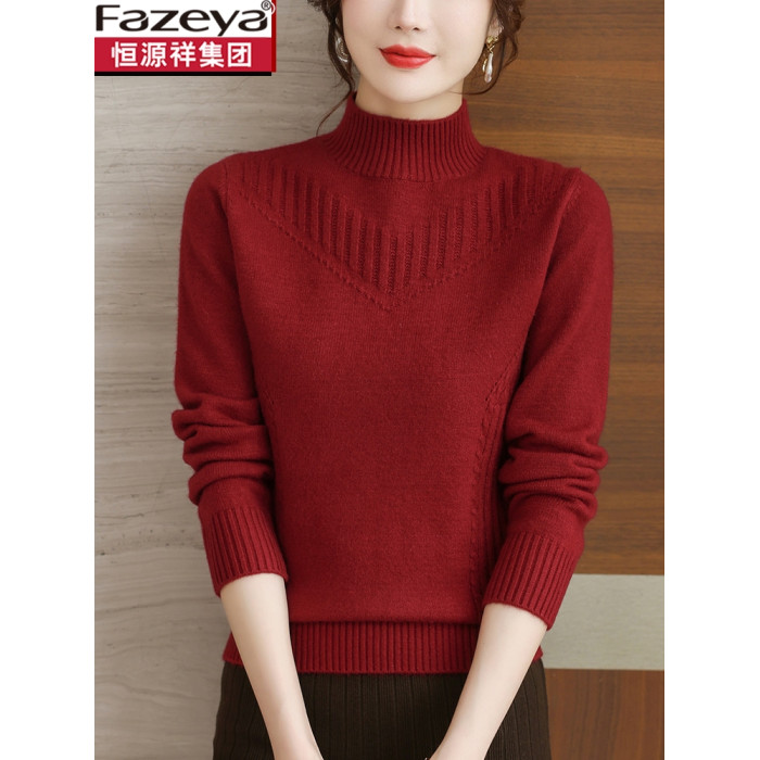 恒源祥彩羊半高領羊毛衫女2025新款秋冬季毛衣內搭寬松加厚打底衫