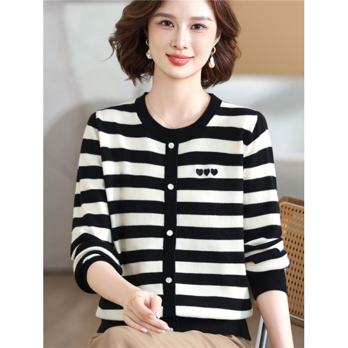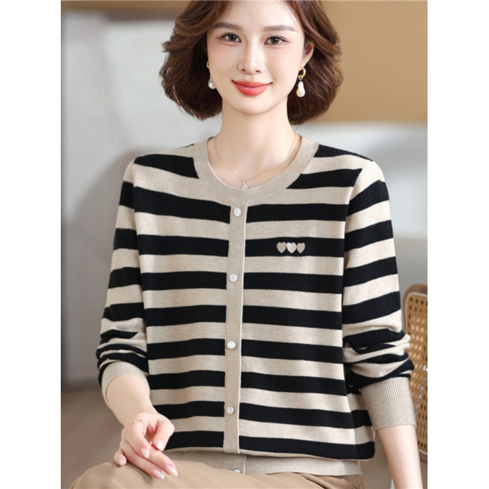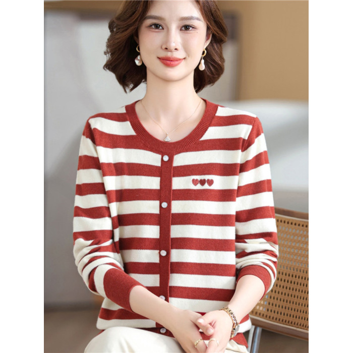媽媽秋裝2025新款百搭條紋上衣中老年女裝洋氣長袖毛衣針織打底衫