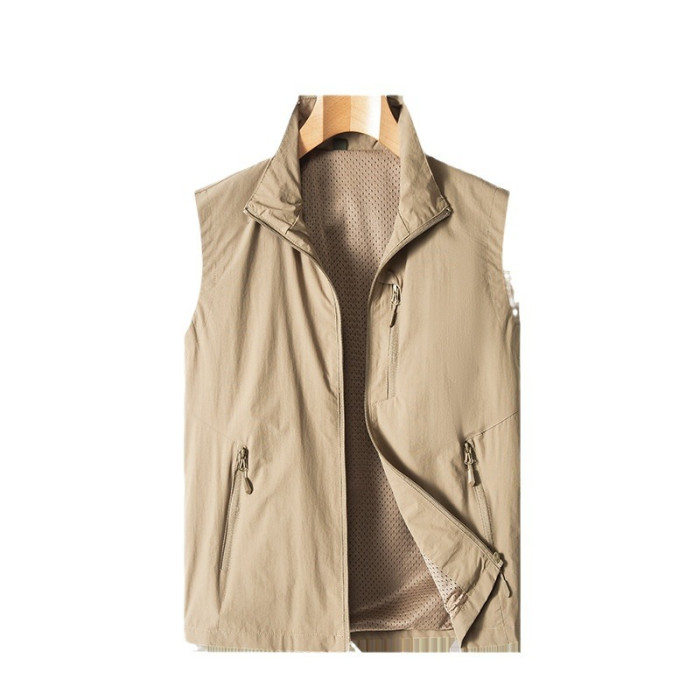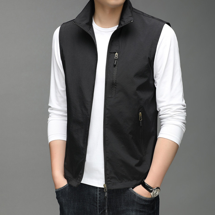 2024早春新款男裝修身戶外立領多口袋馬甲中年男士休閒潮流背心
