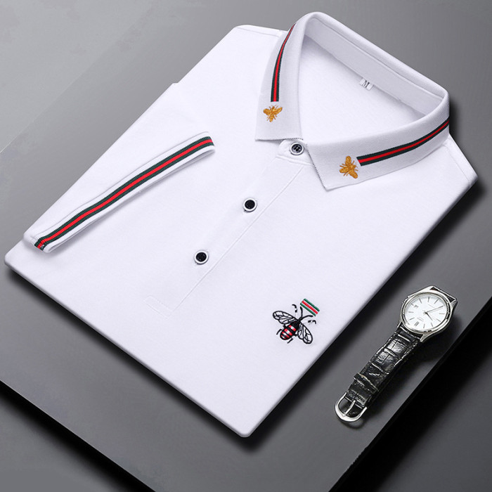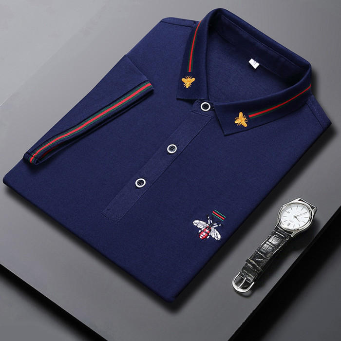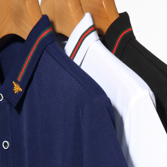 絲光棉男士polo衫2023夏季新款小蜜蜂刺綉時尚潮流男裝短袖t恤男