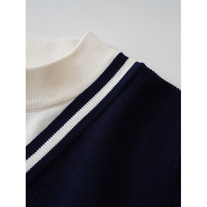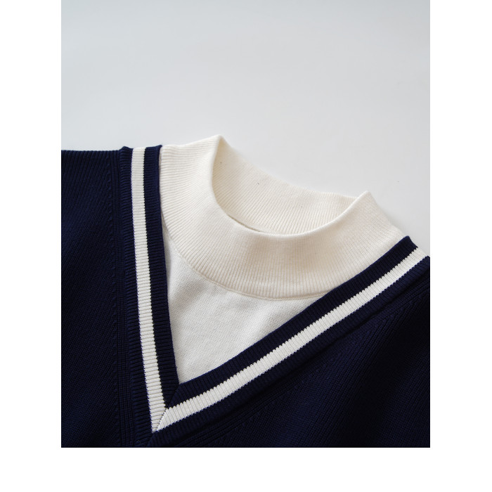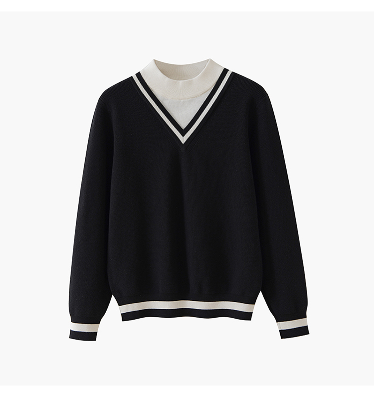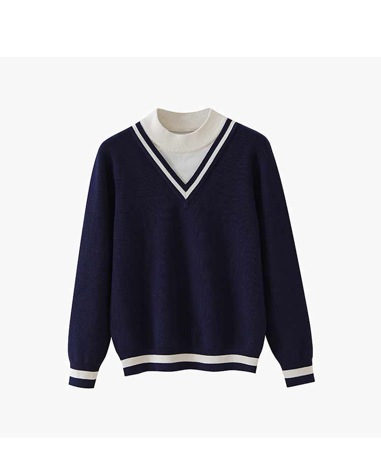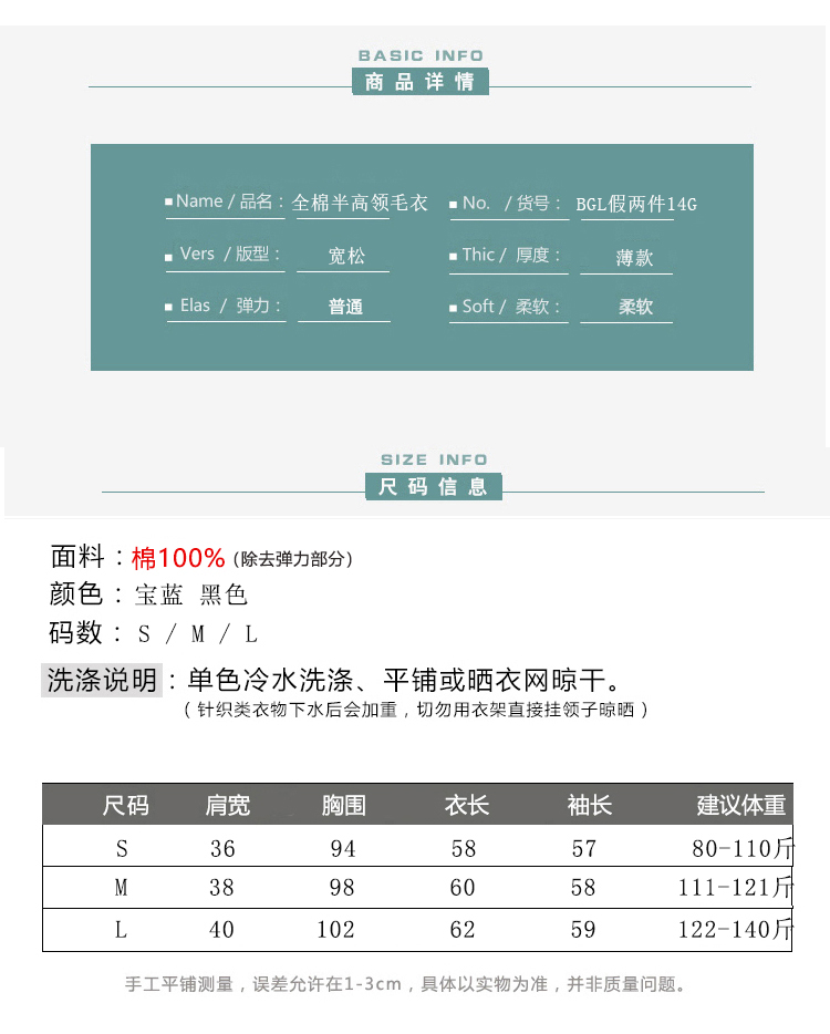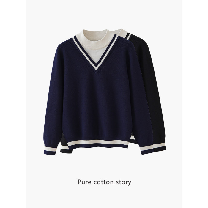 重工加密顆粒織法 純棉半高領針織打底衫女士毛衣 春秋假兩件上衣