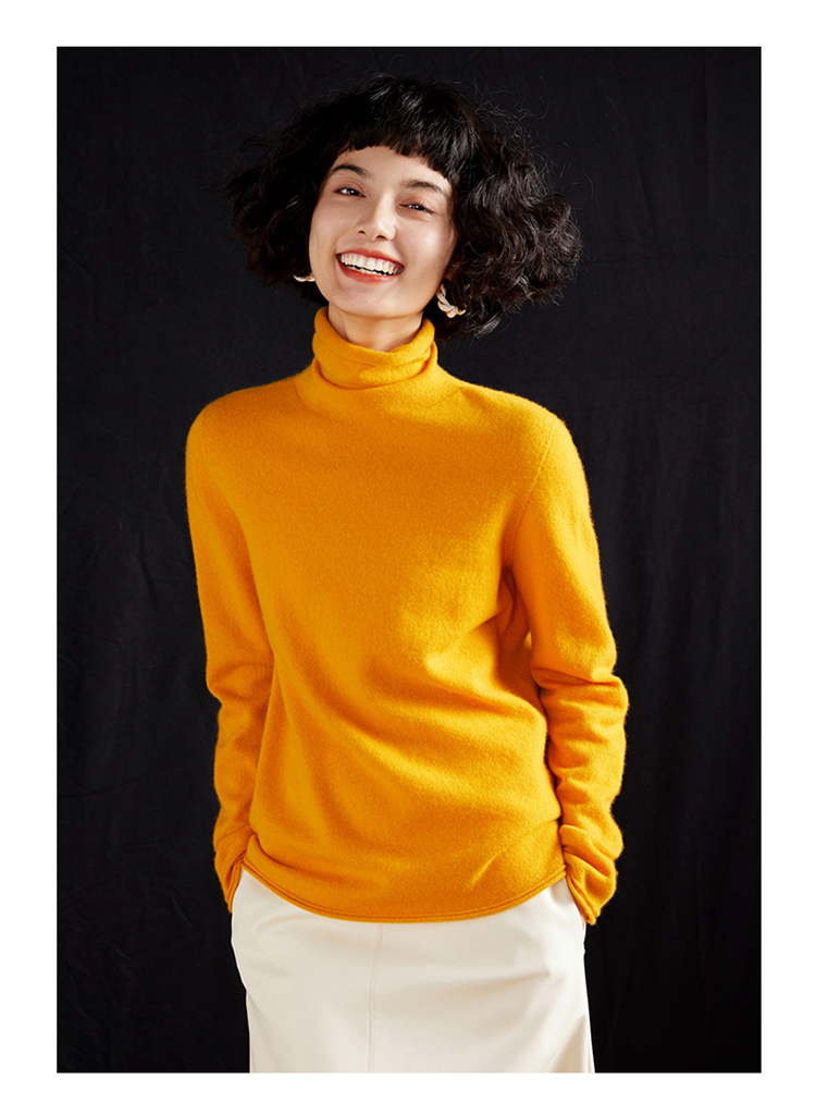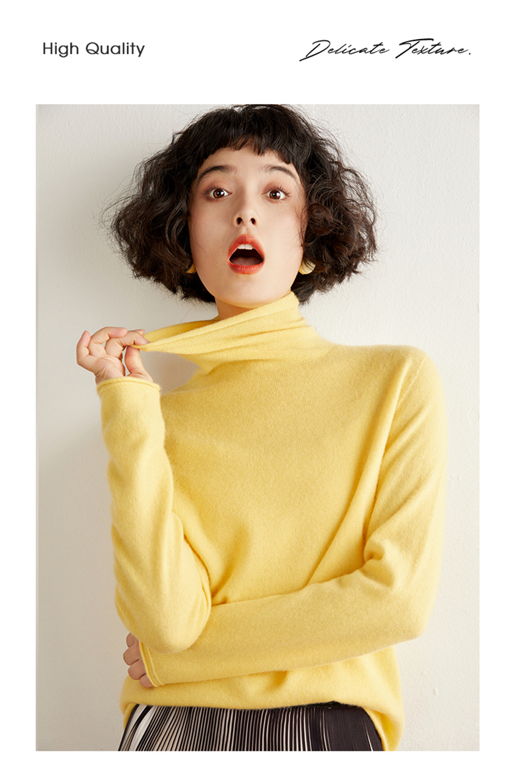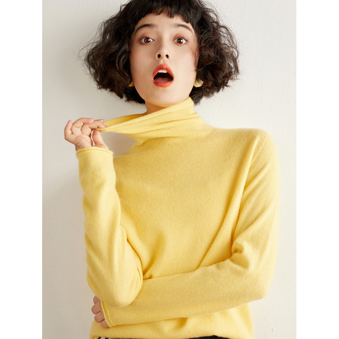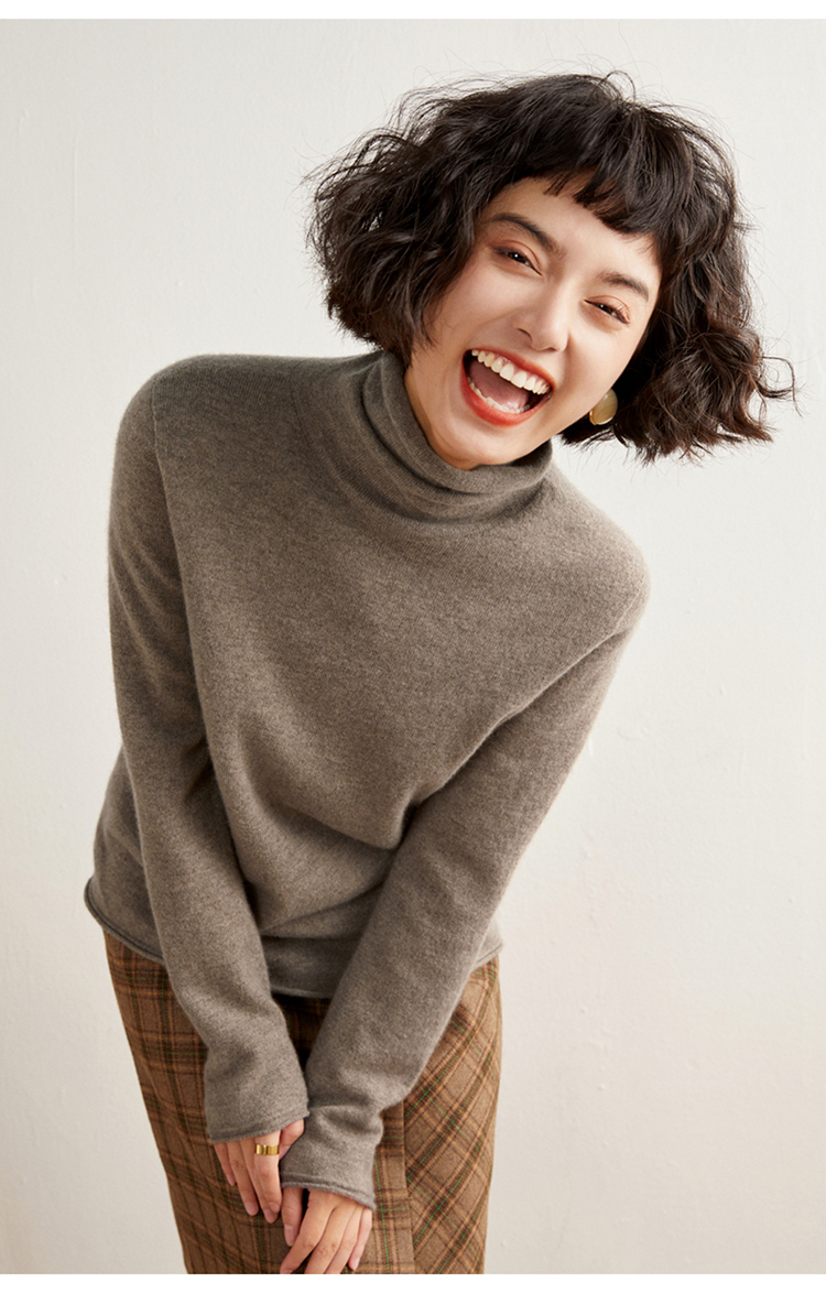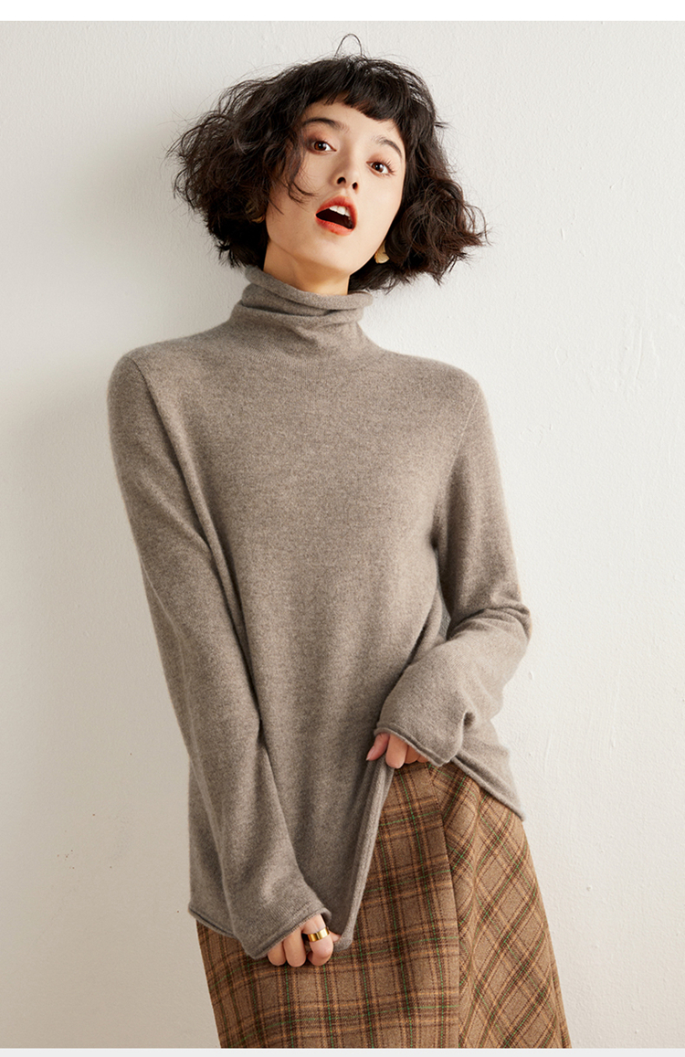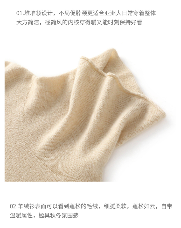 堆堆領羊絨衫女100純山羊絨寬松針織打底衫高領內搭無縫毛衣大碼