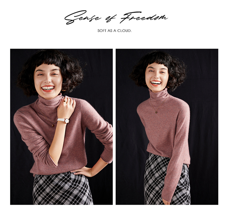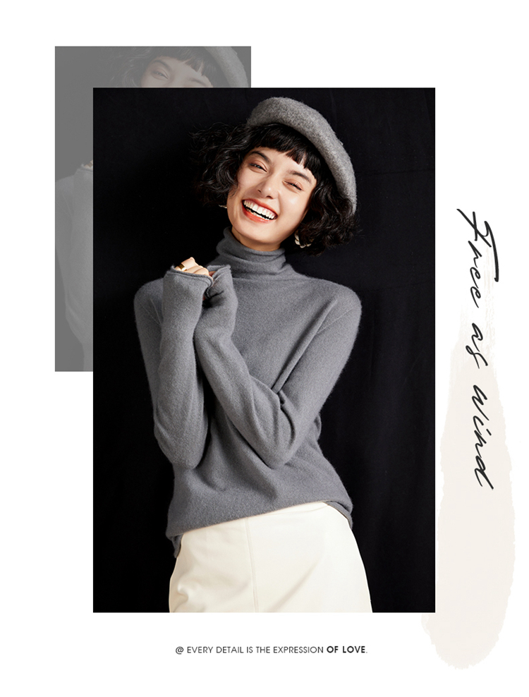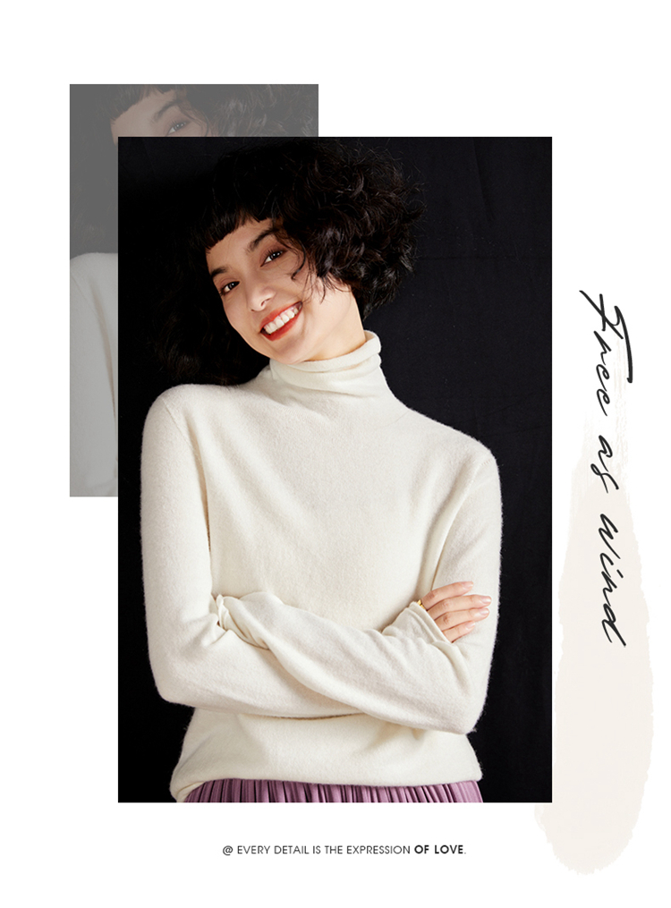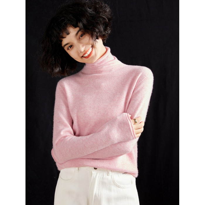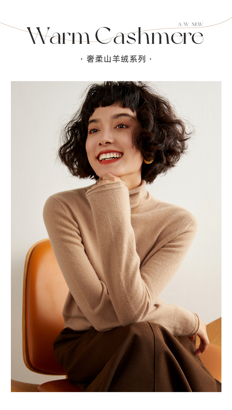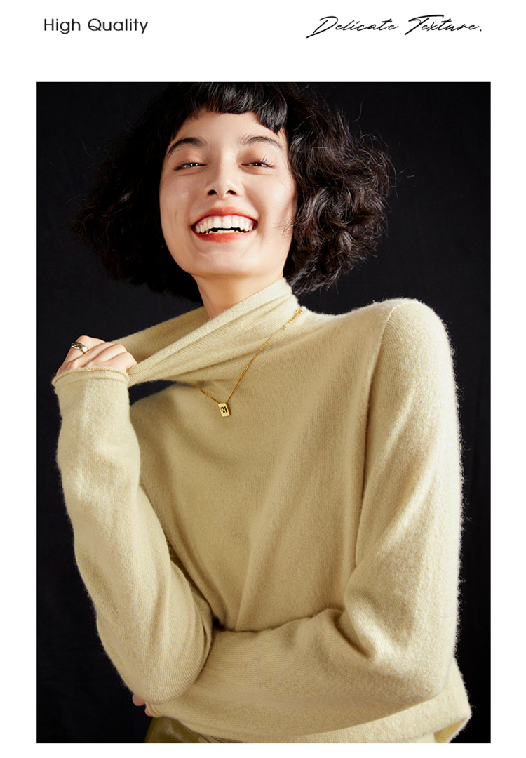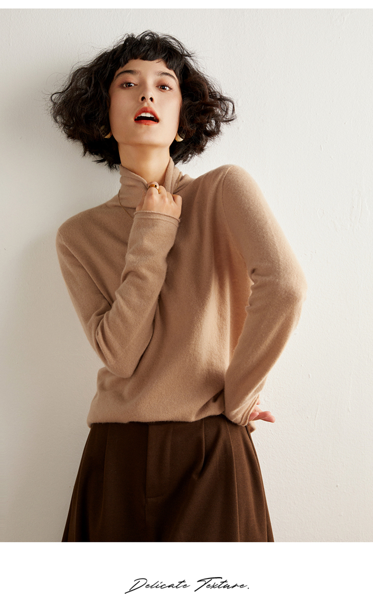 堆堆領羊絨衫女100純山羊絨寬松針織打底衫高領內搭無縫毛衣大碼