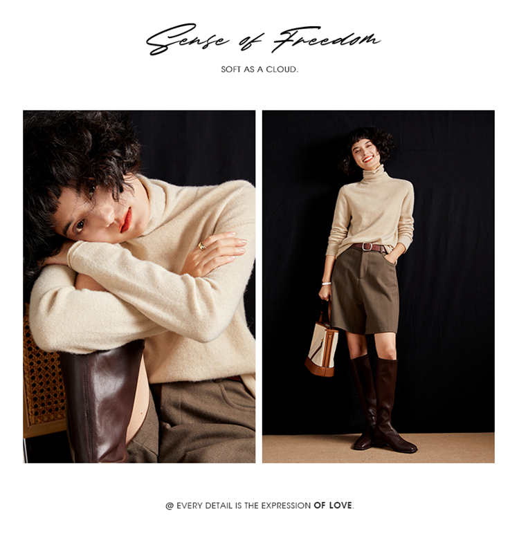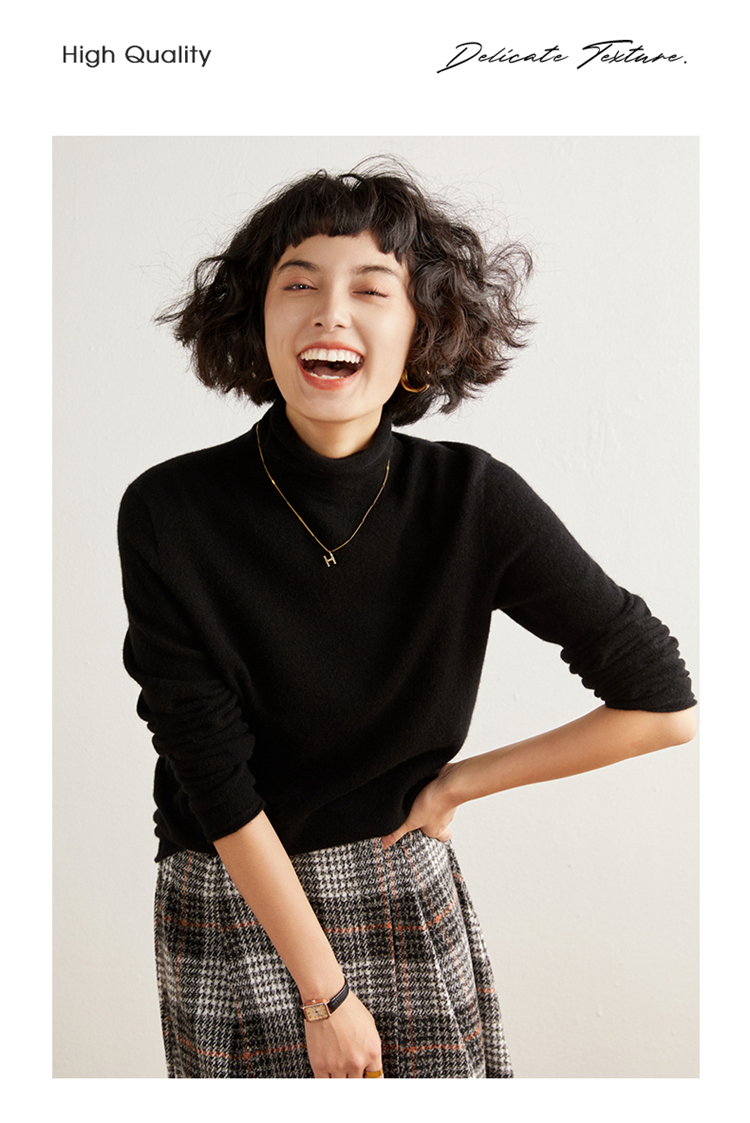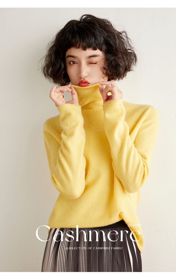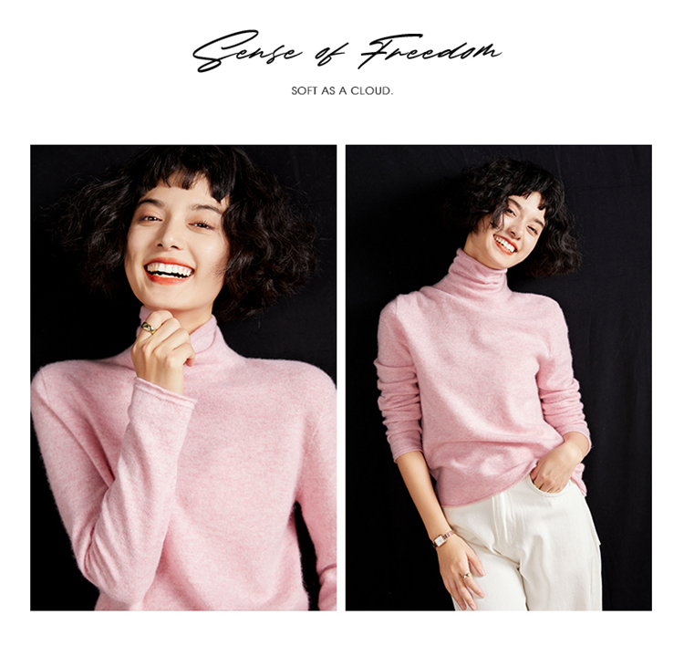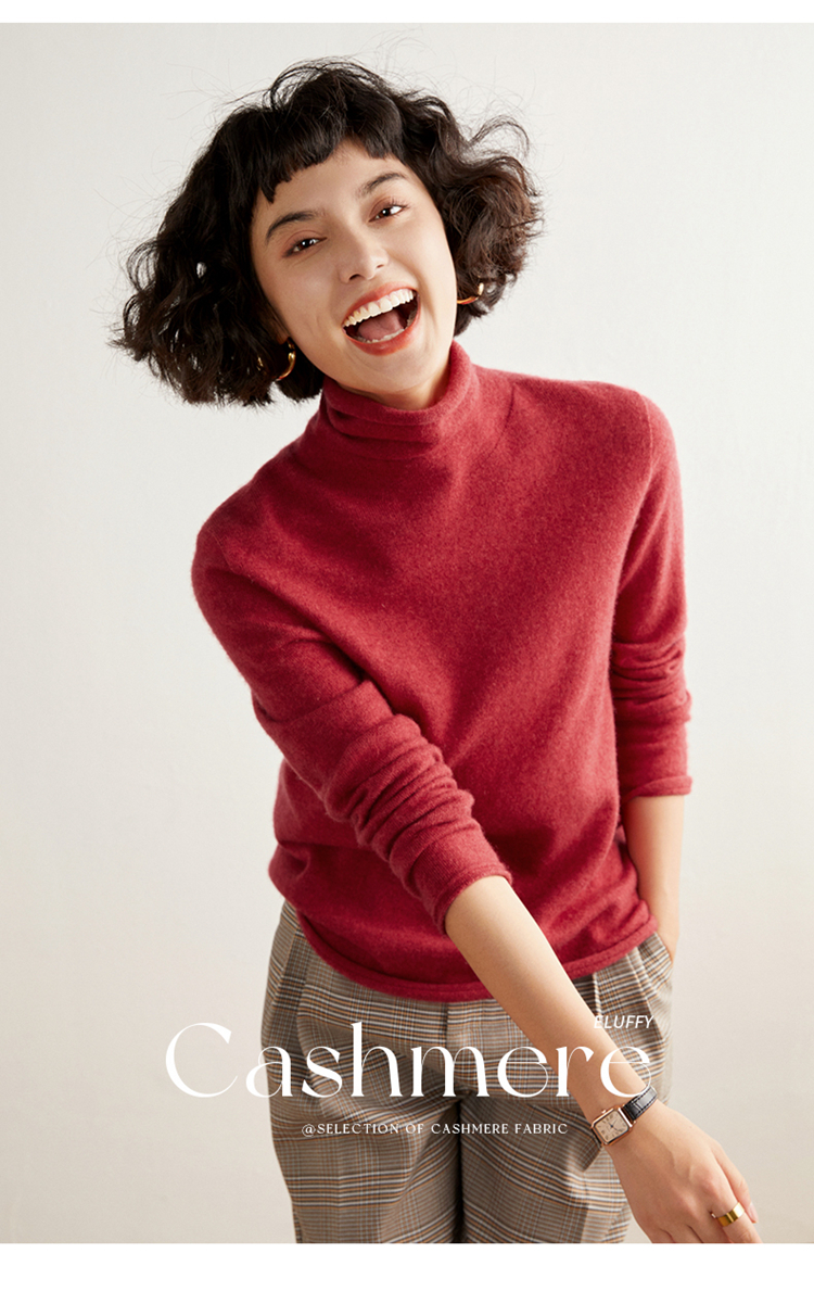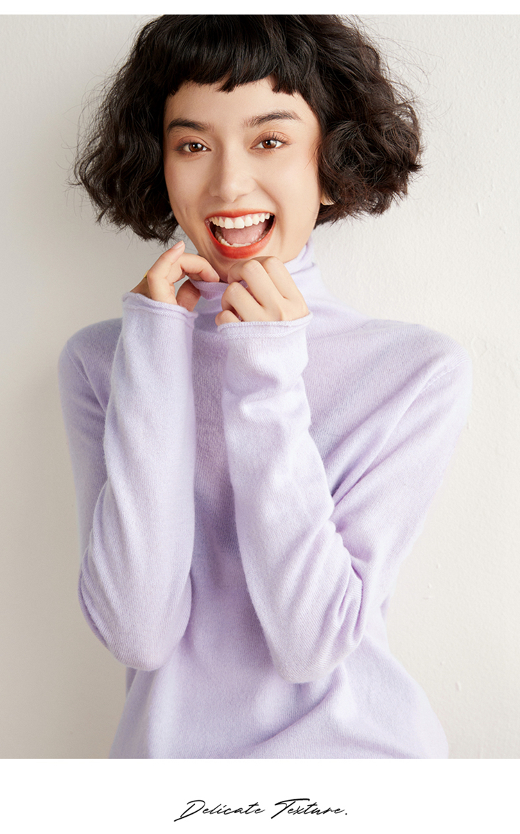 堆堆領羊絨衫女100純山羊絨寬松針織打底衫高領內搭無縫毛衣大碼