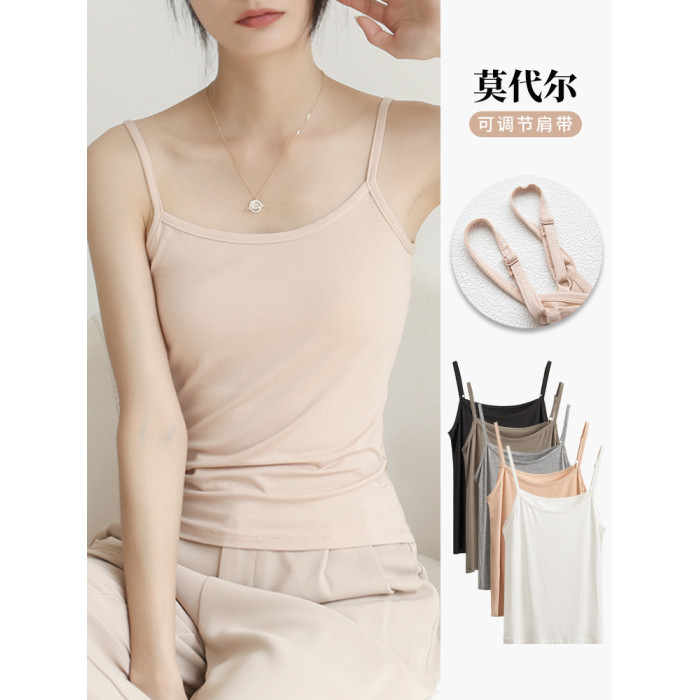 莫代爾大碼吊帶背心女夏內搭胖MM微胖打底衫白色遮肚顯瘦肉色上衣