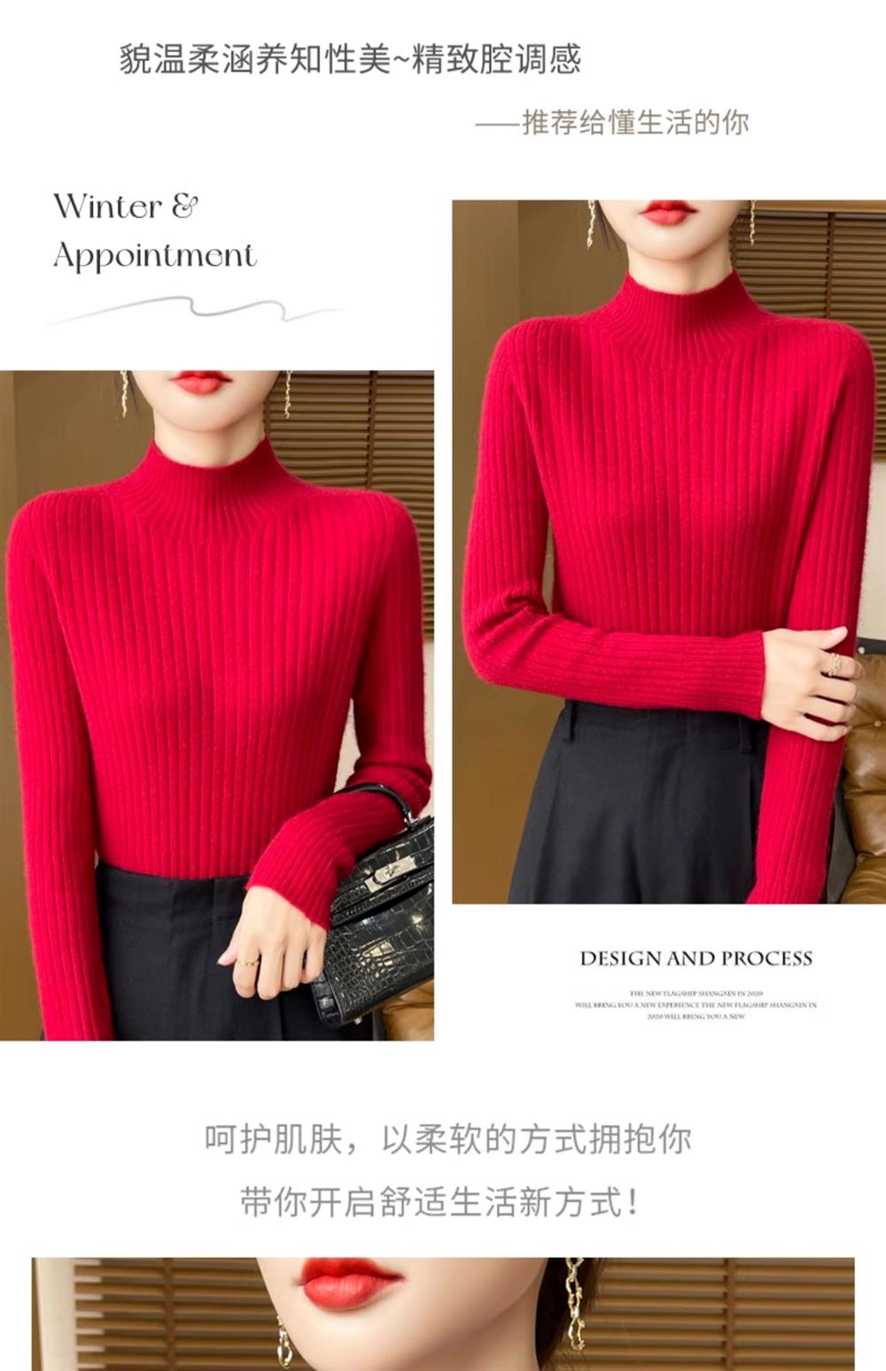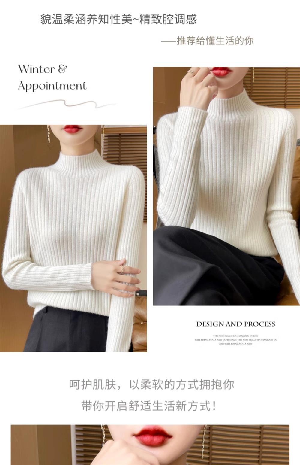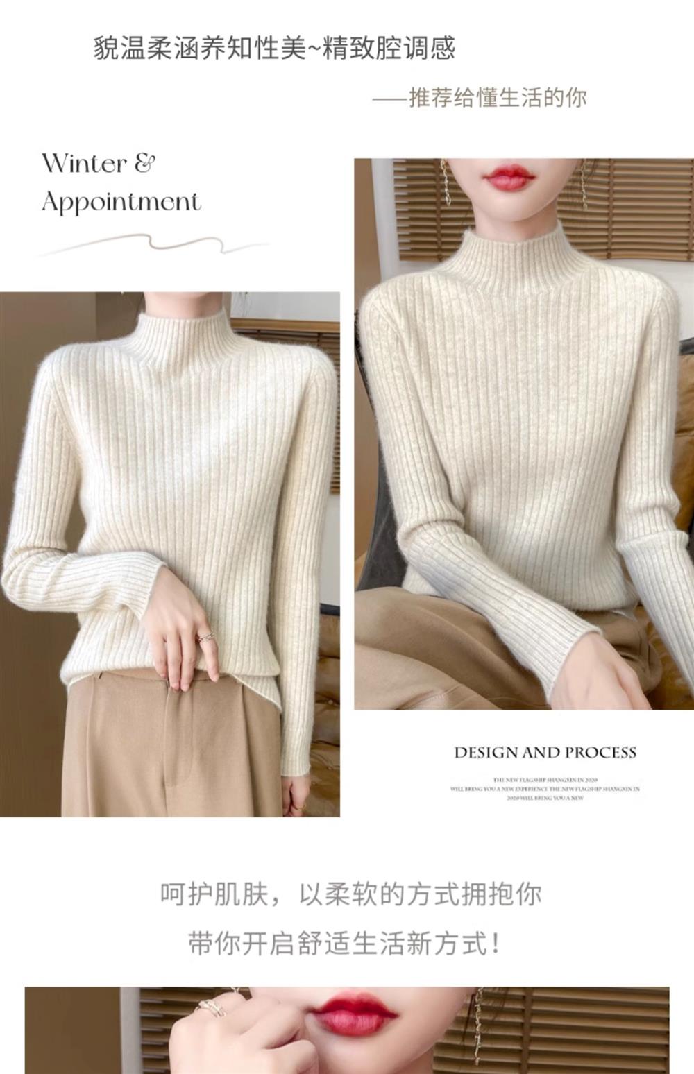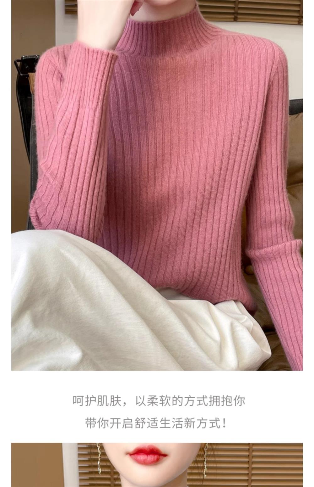 半高領毛衣女秋冬內搭無縫一體打底衫女修身長袖針織衫高級感上衣