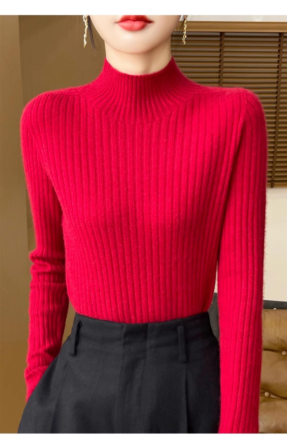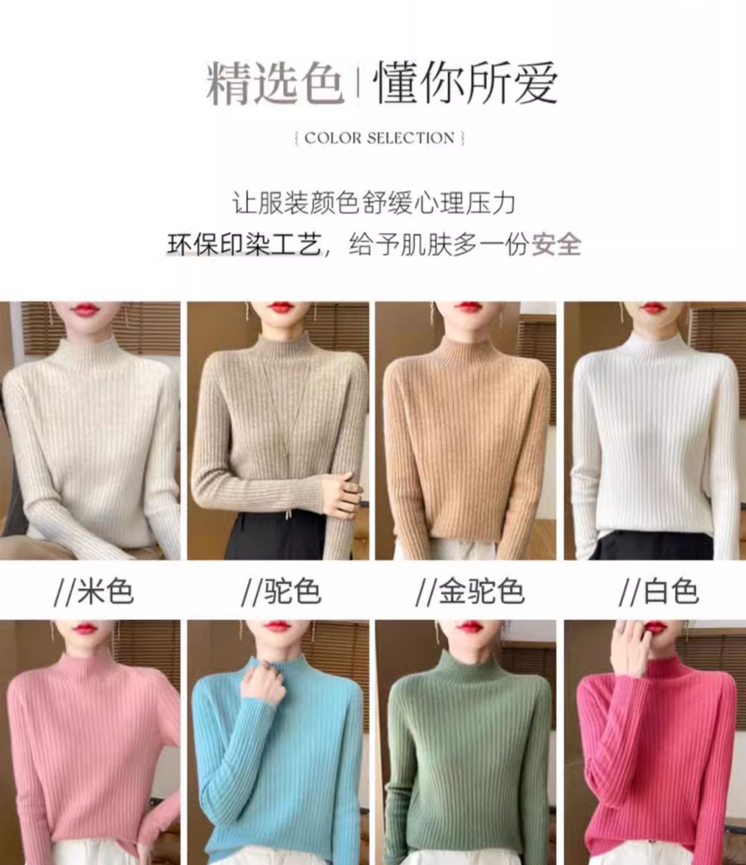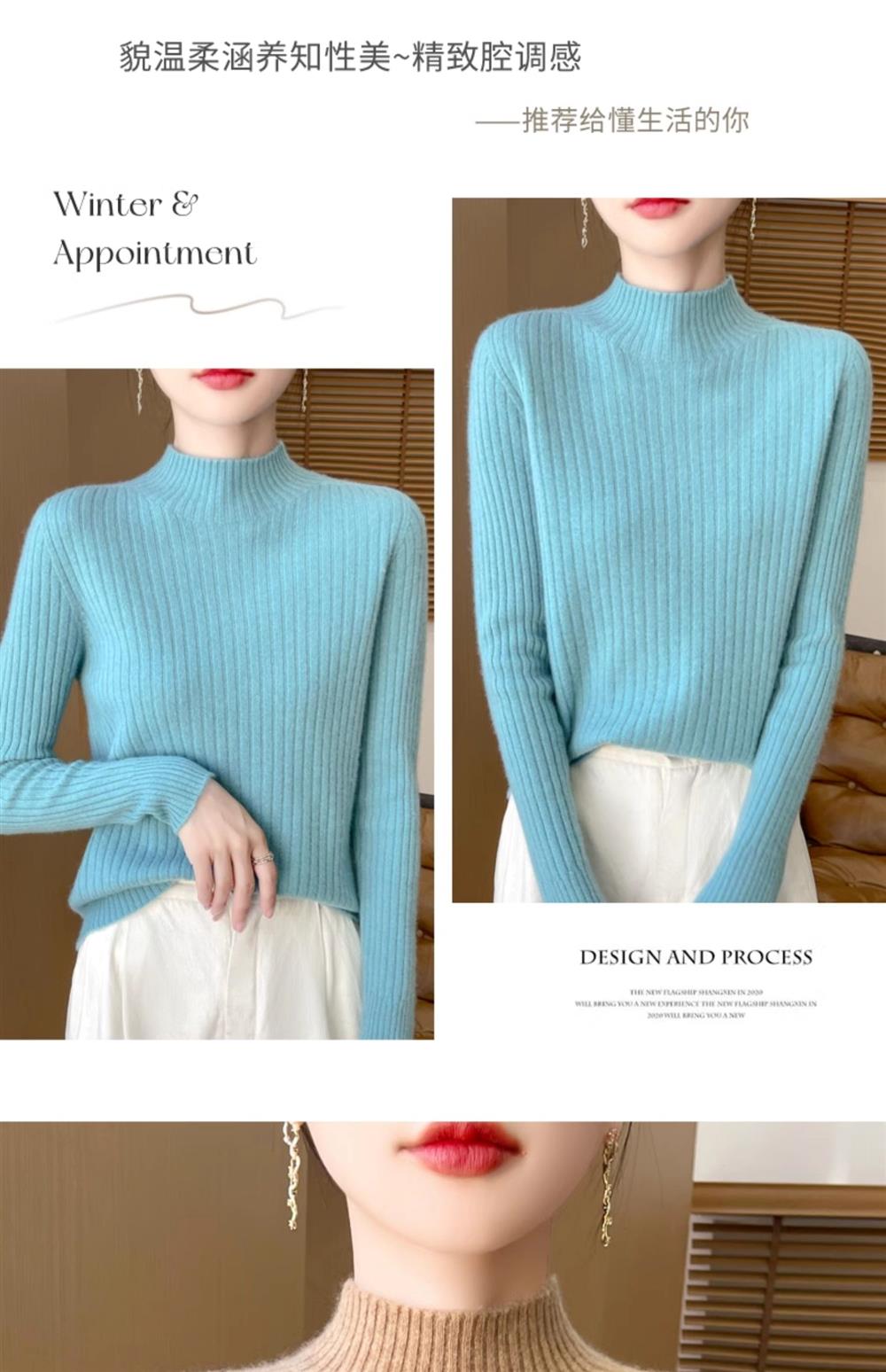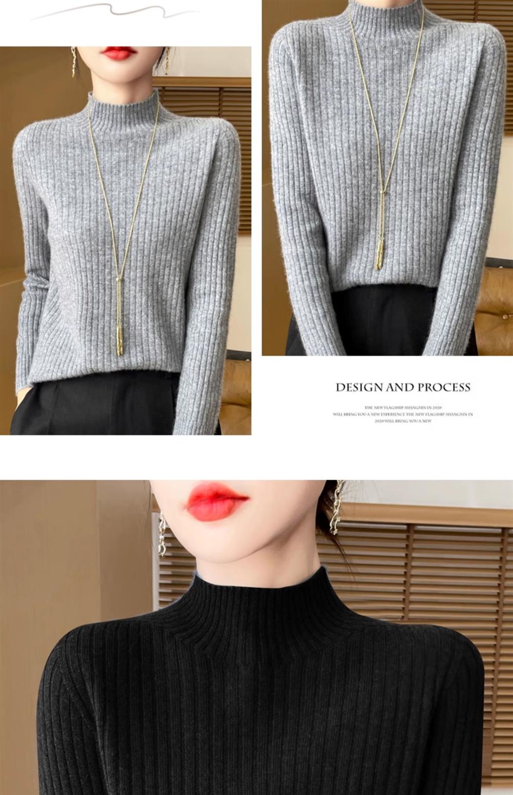 半高領毛衣女秋冬內搭無縫一體打底衫女修身長袖針織衫高級感上衣