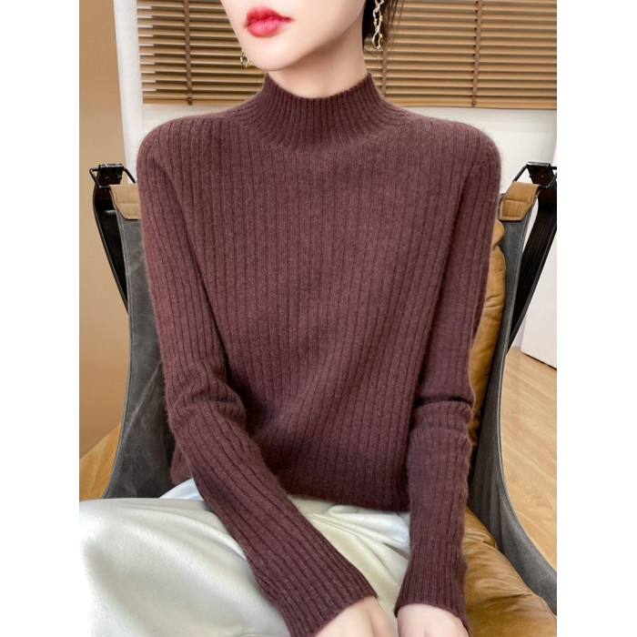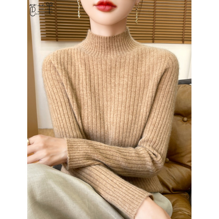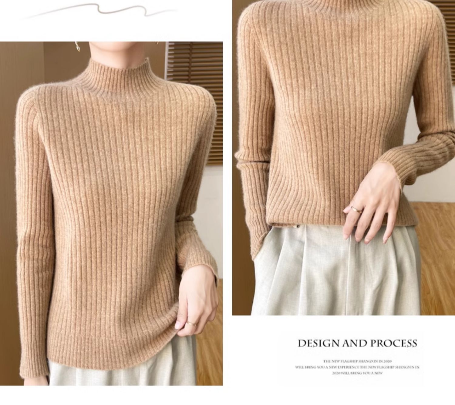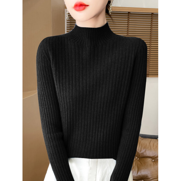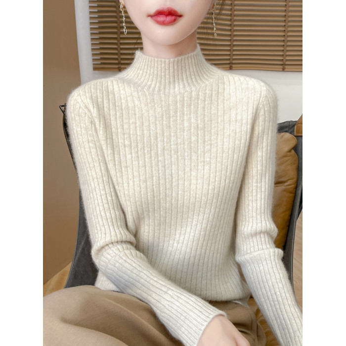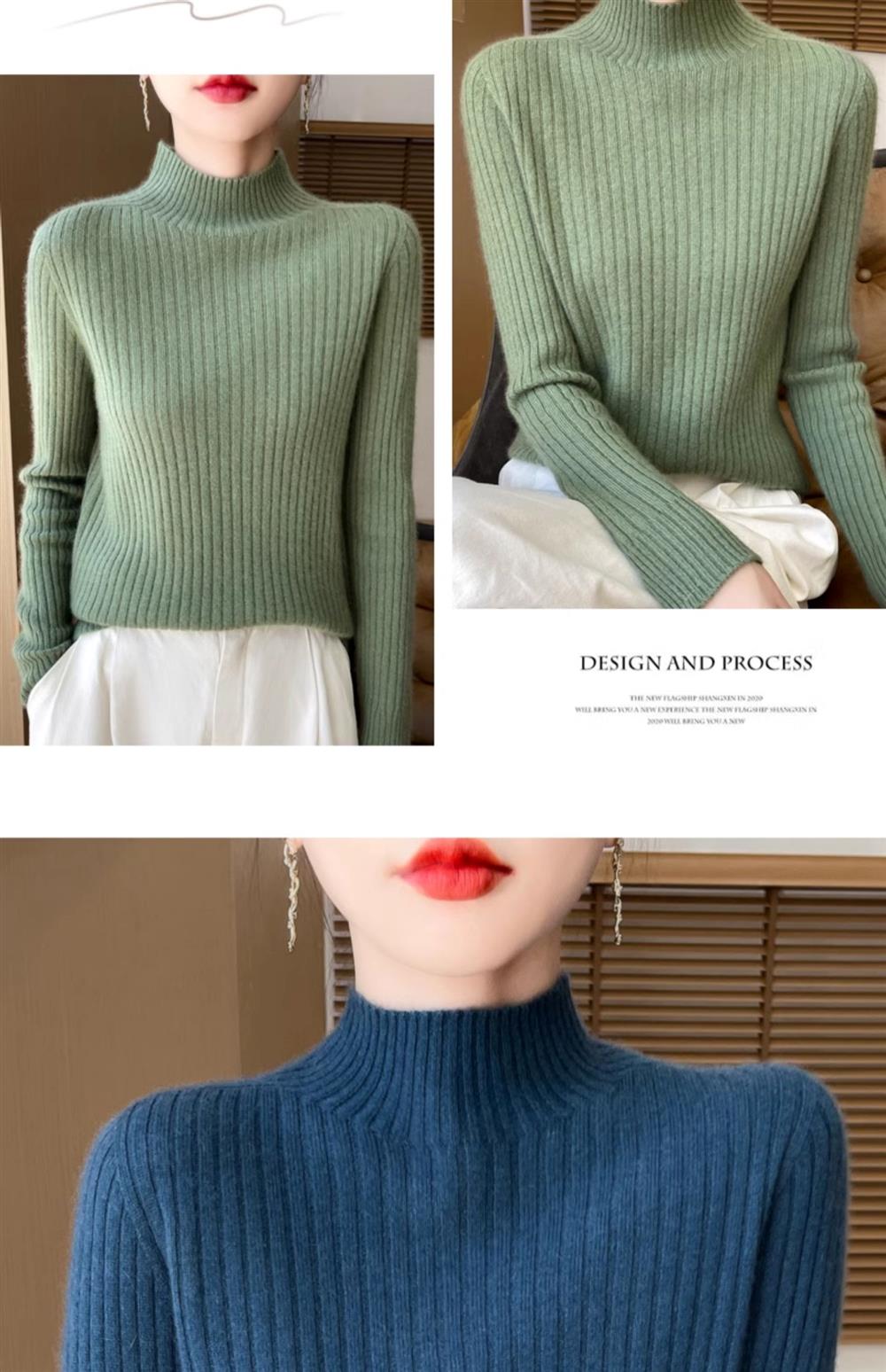 半高領毛衣女秋冬內搭無縫一體打底衫女修身長袖針織衫高級感上衣
