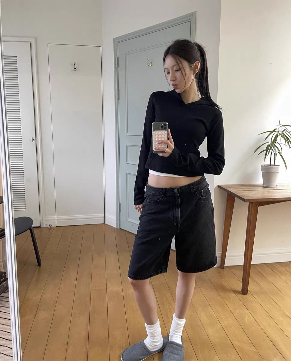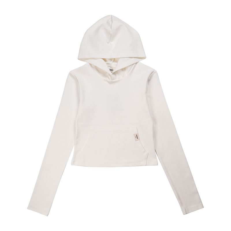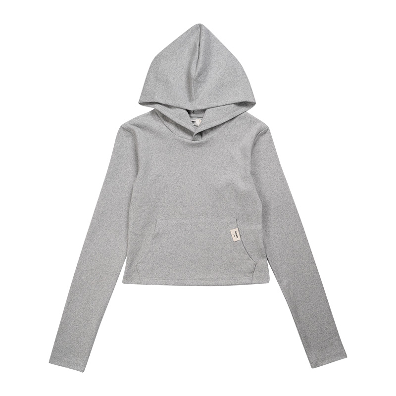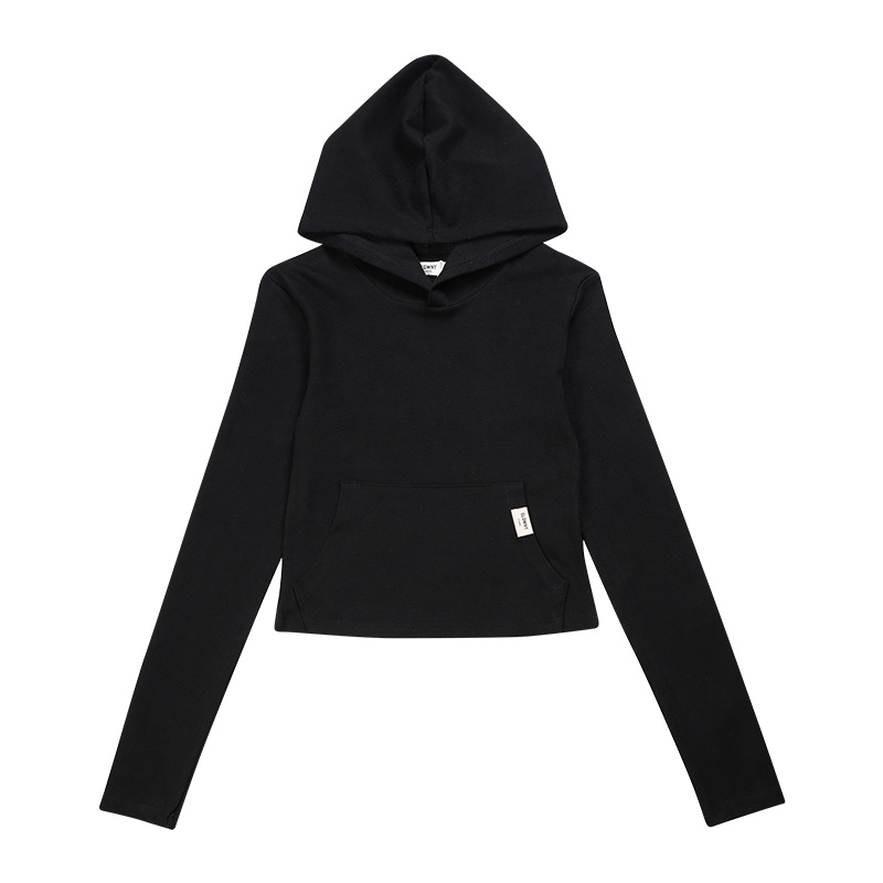 糖家自製韓版純色簡約百搭休閒修身短款打底連帽衛衣長袖打底衫女