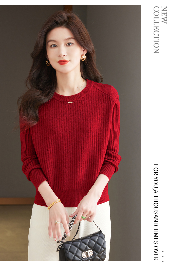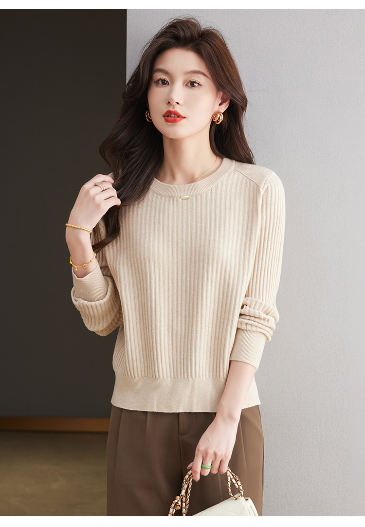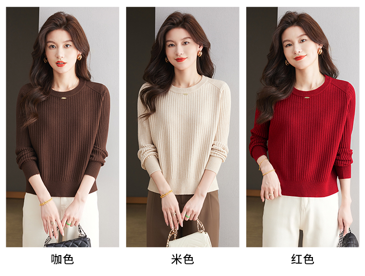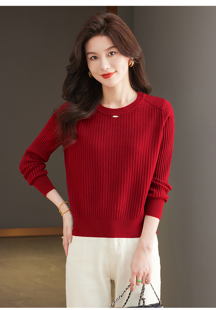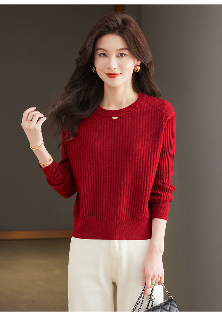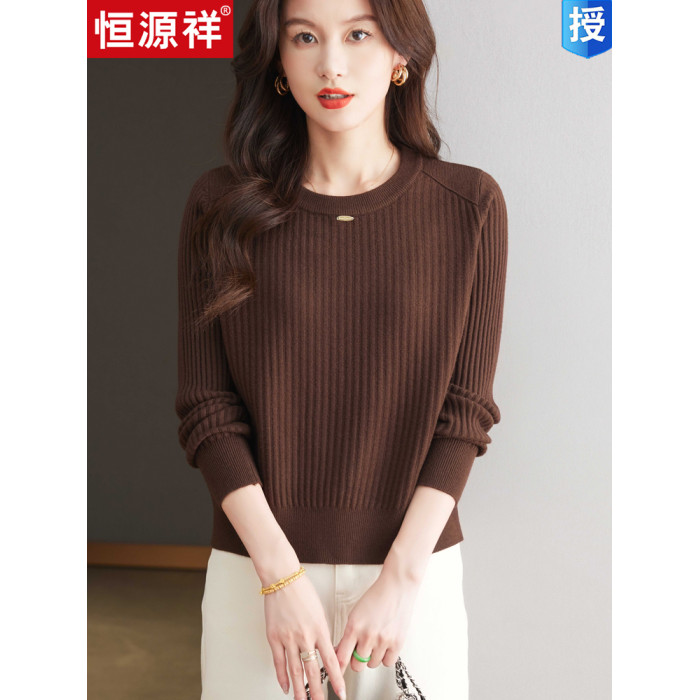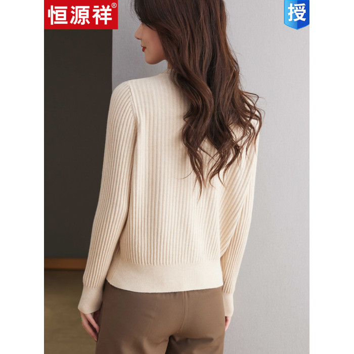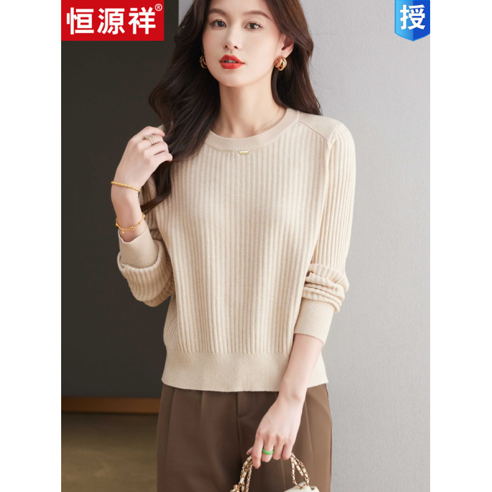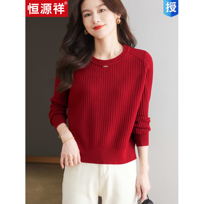 恒源祥羊毛打底衫女秋冬新款中年媽媽短款毛衣寬松圓領外穿針織衫