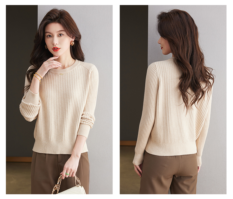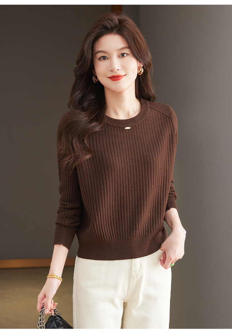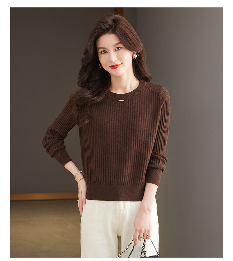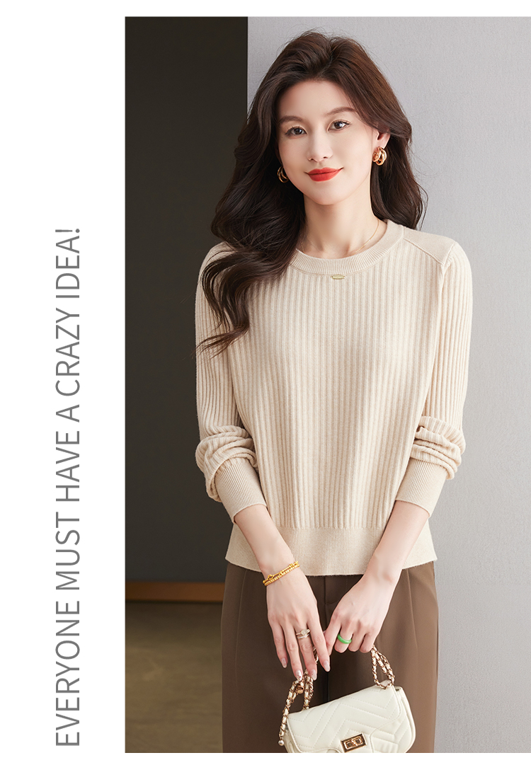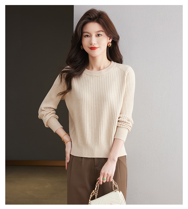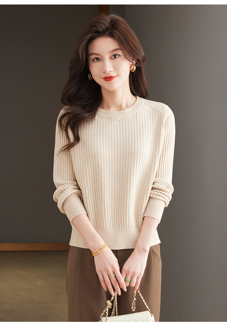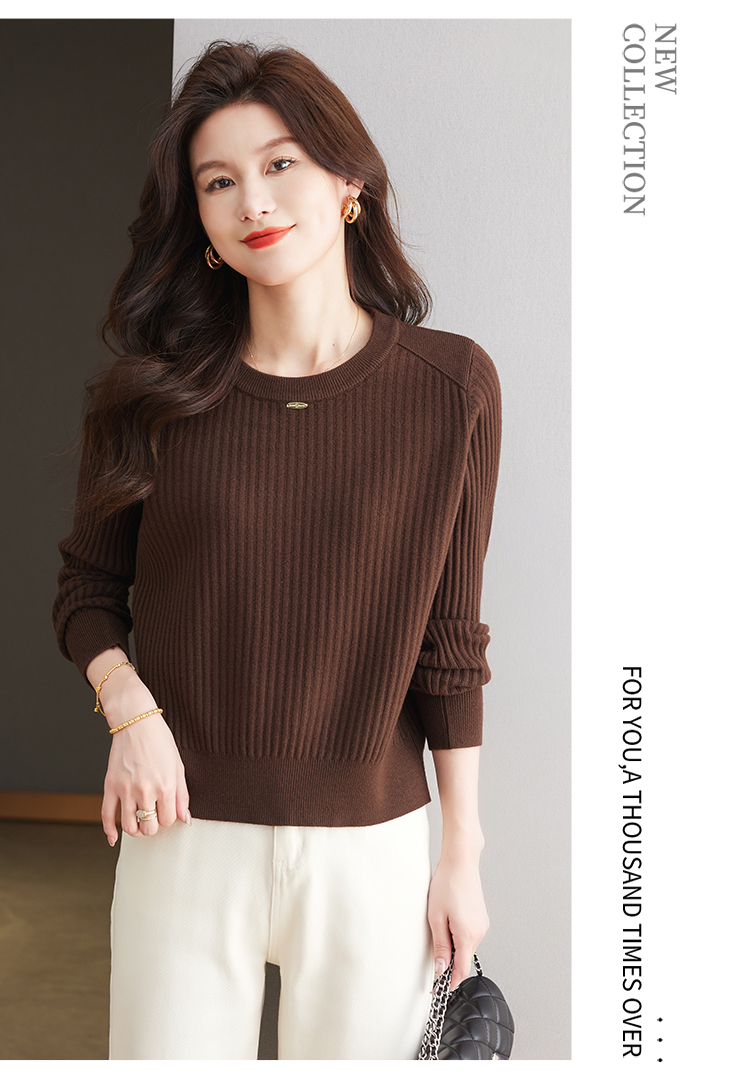 恒源祥羊毛打底衫女秋冬新款中年媽媽短款毛衣寬松圓領外穿針織衫