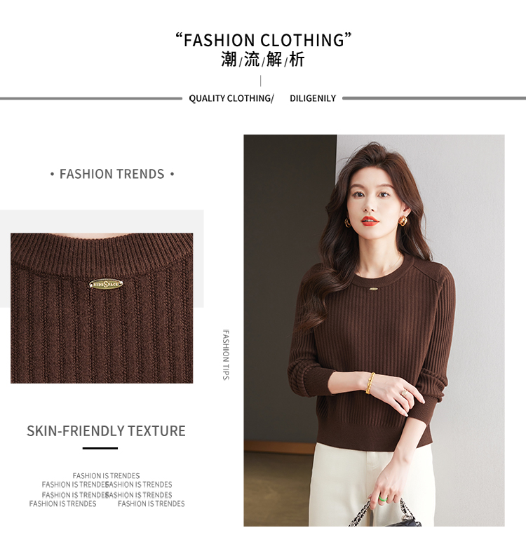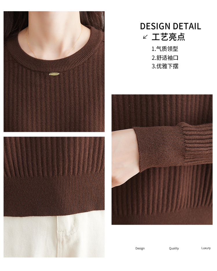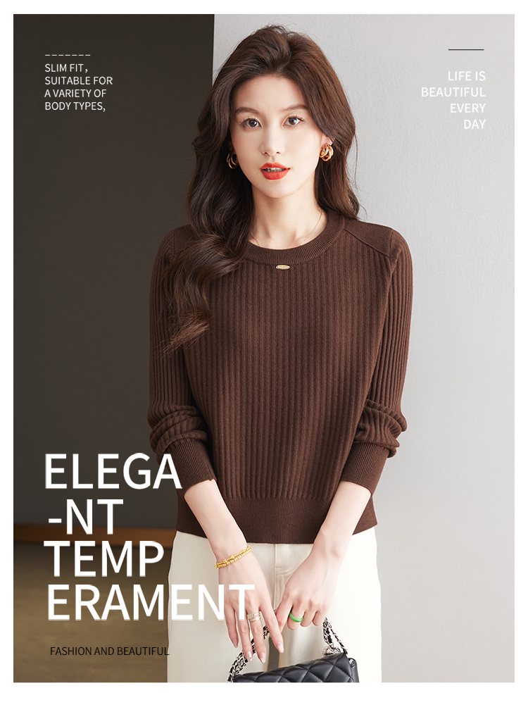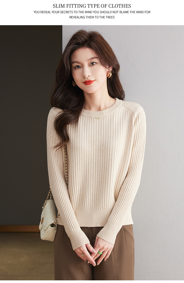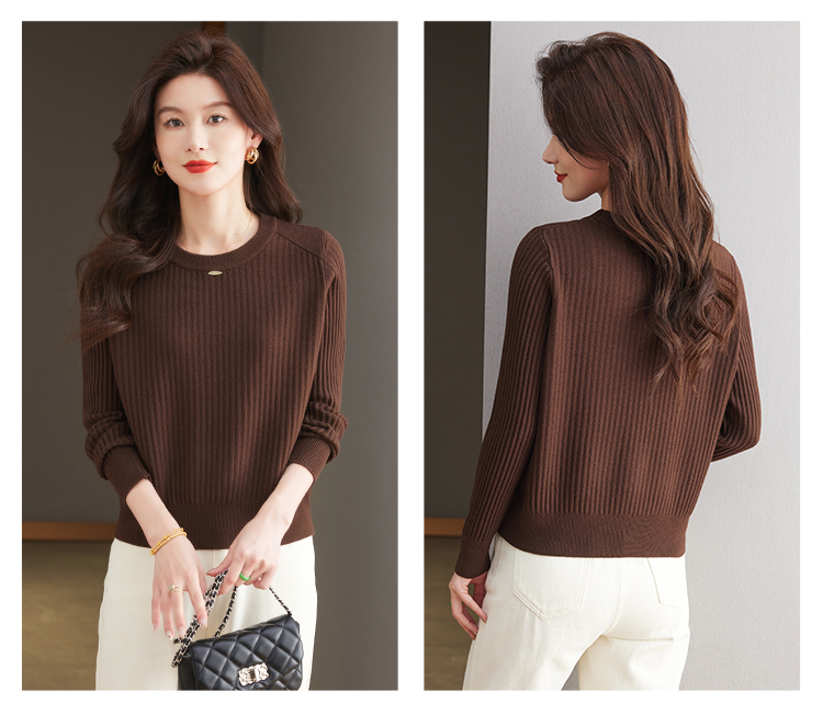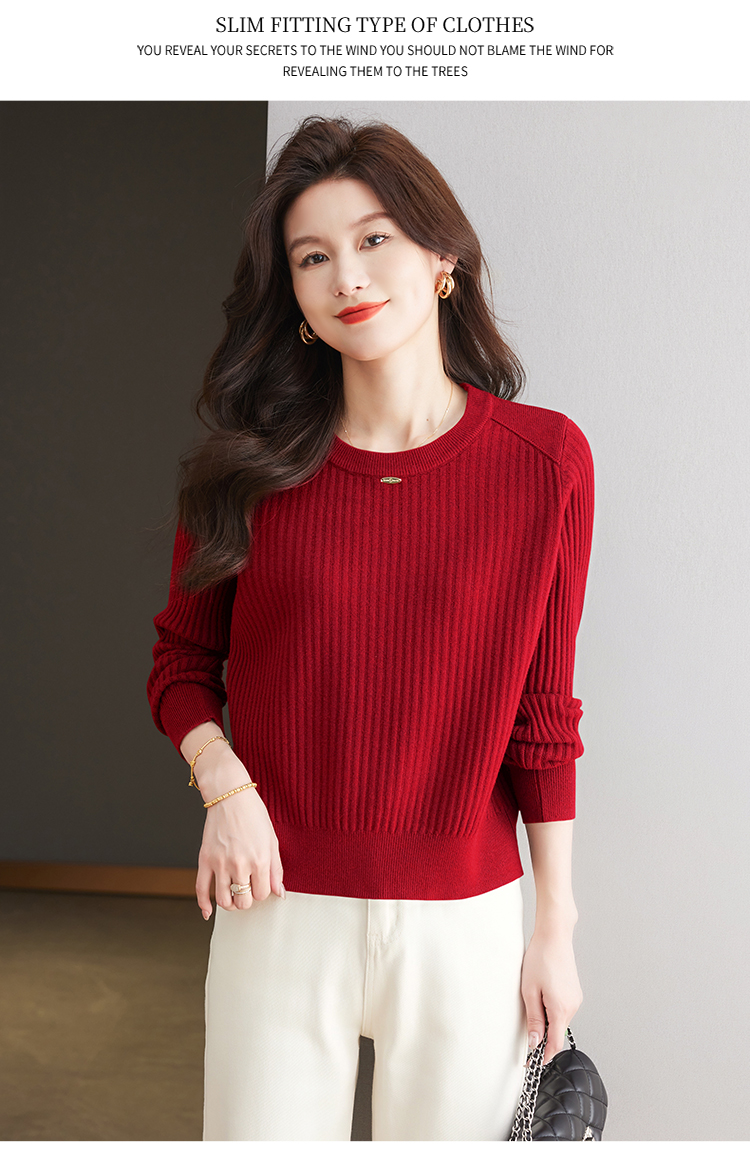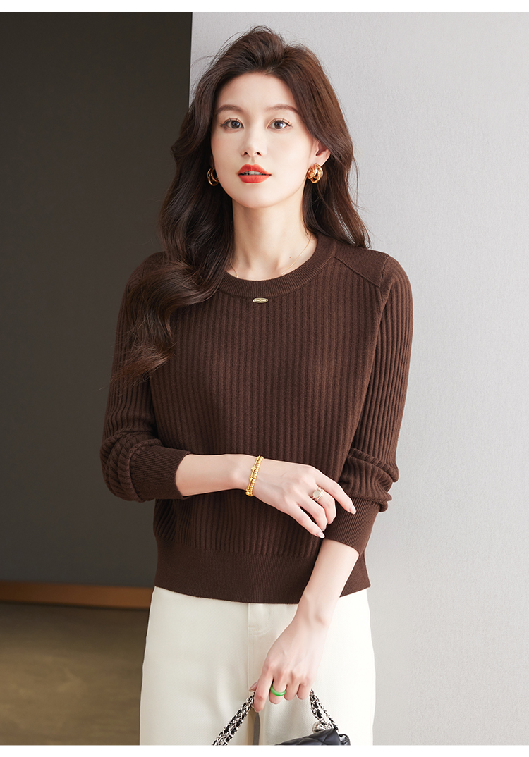 恒源祥羊毛打底衫女秋冬新款中年媽媽短款毛衣寬松圓領外穿針織衫