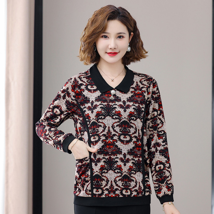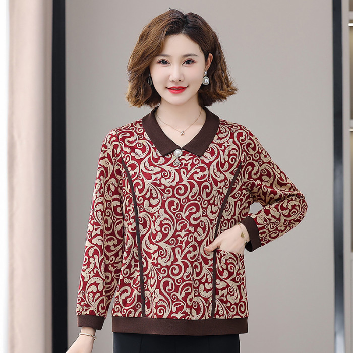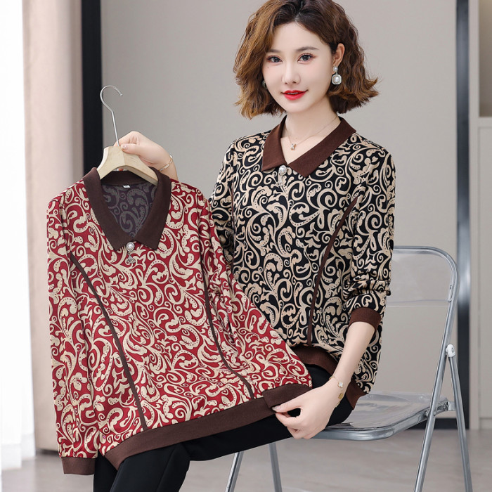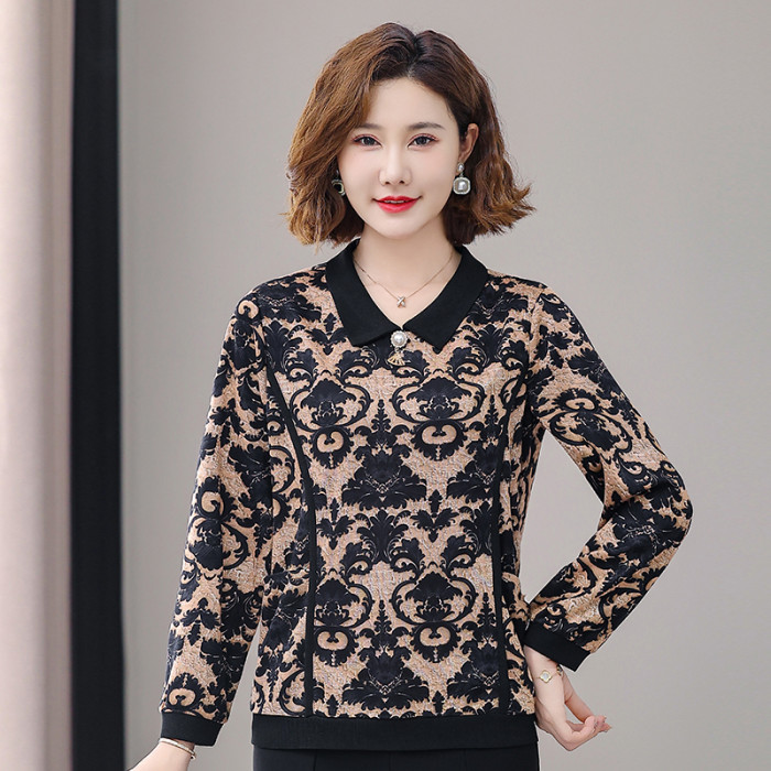 媽媽春裝2025新款加肥加大碼打底衫洋氣長袖中老年春秋氣質上衣女