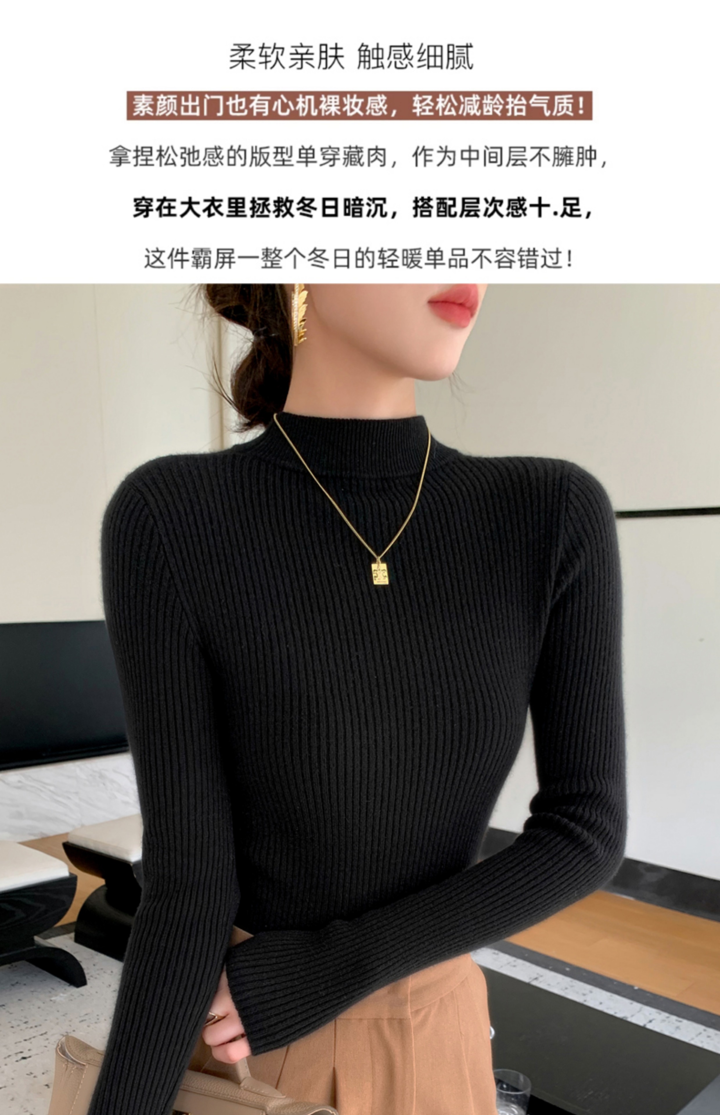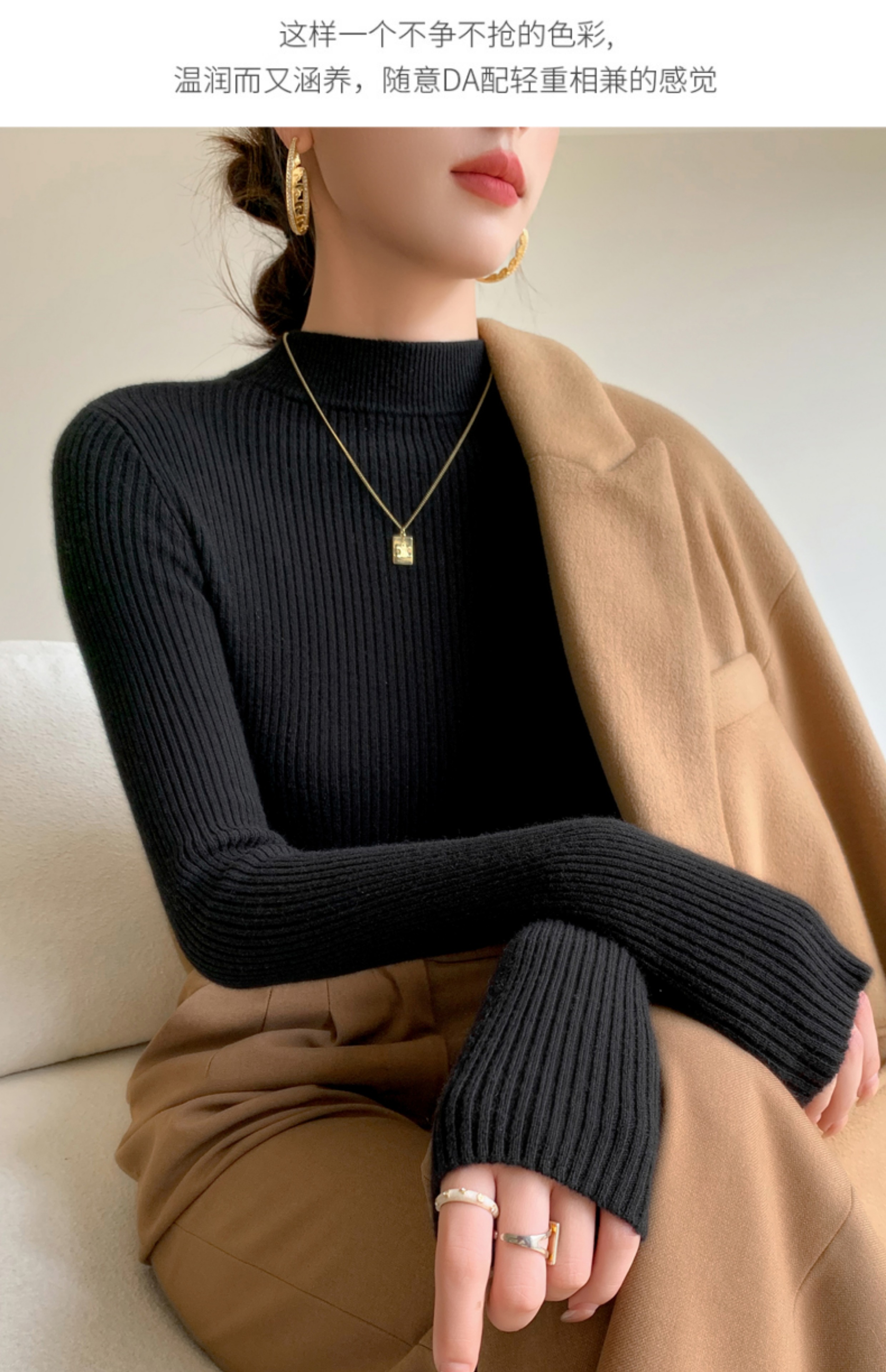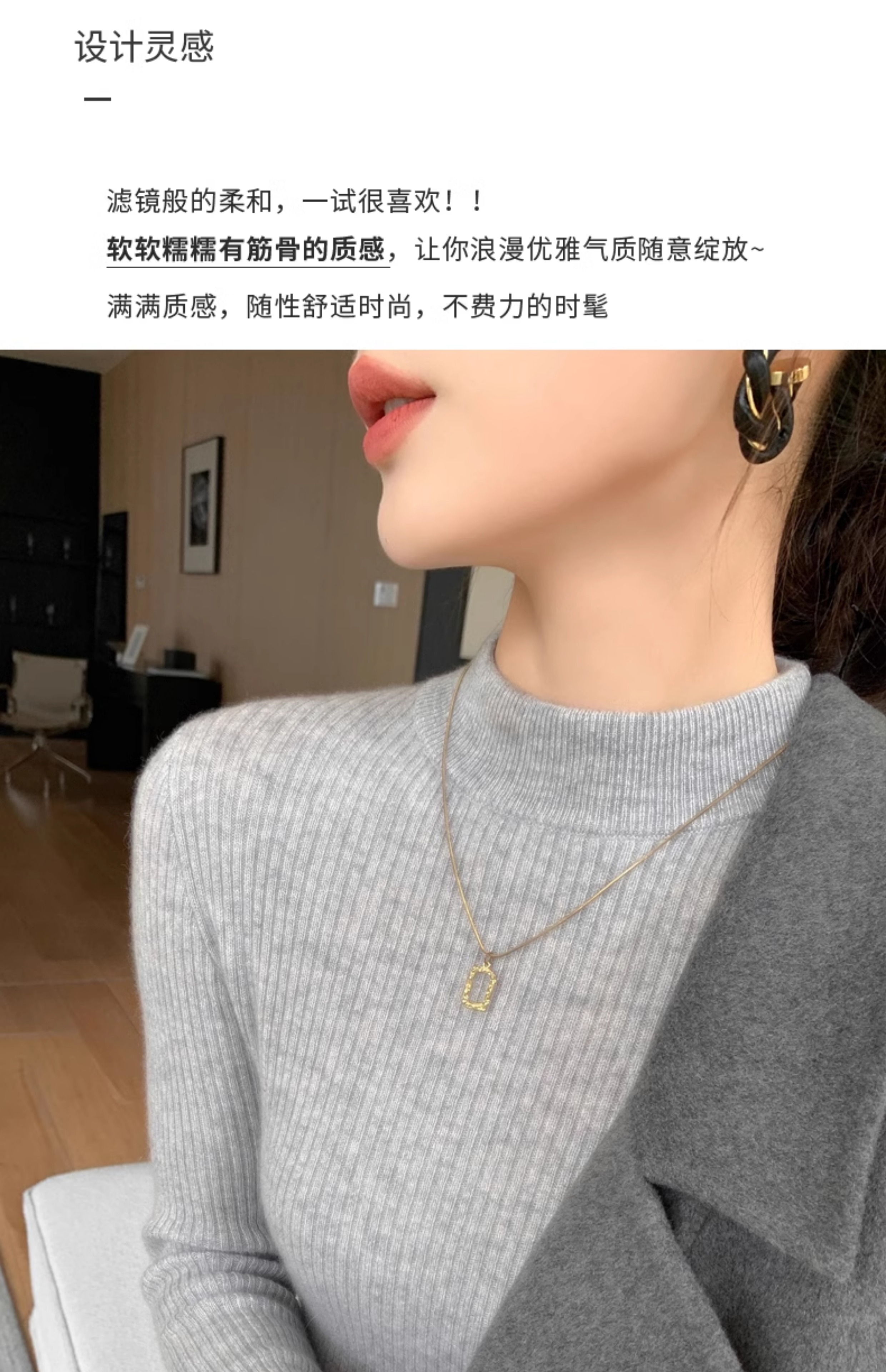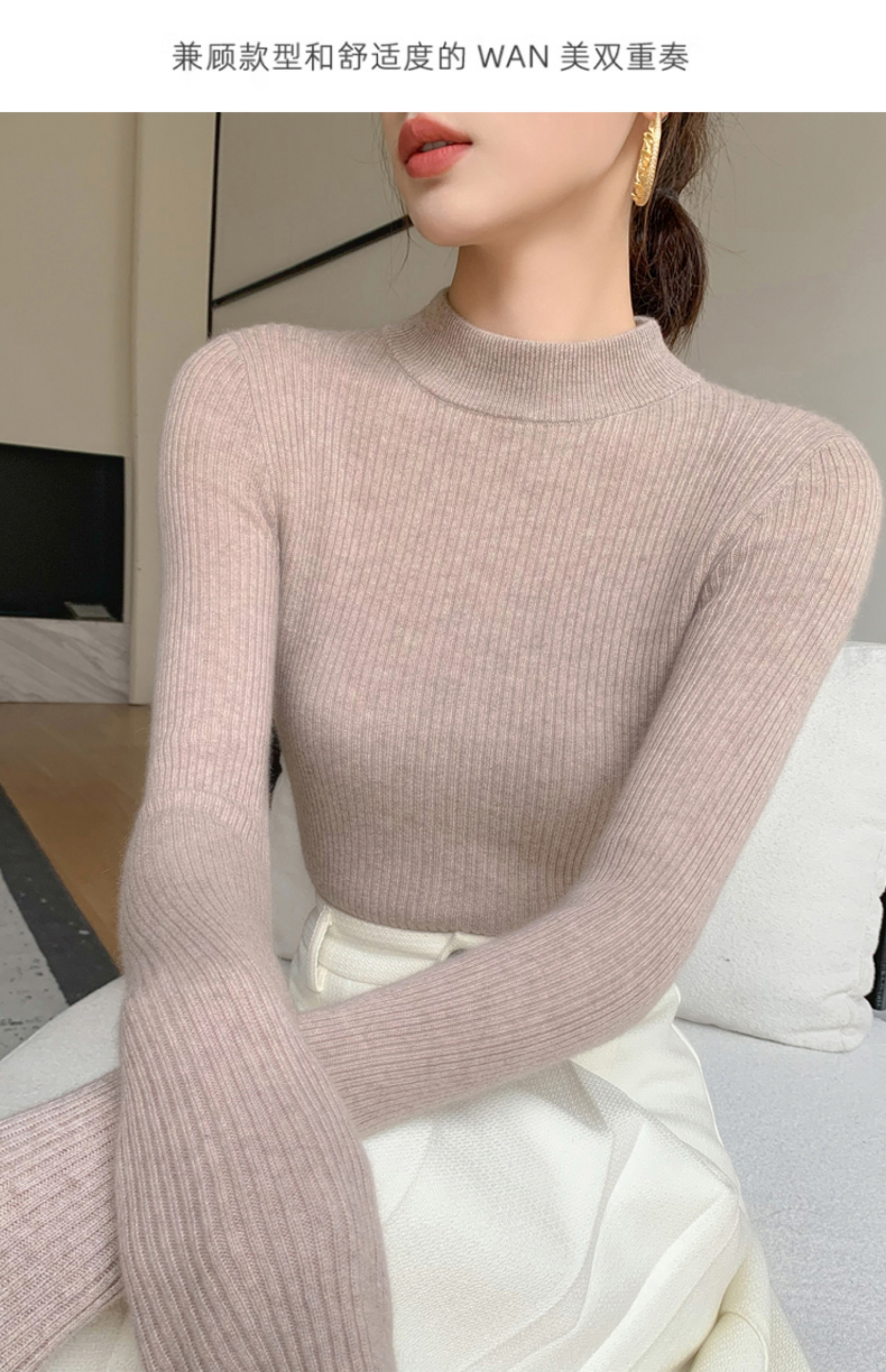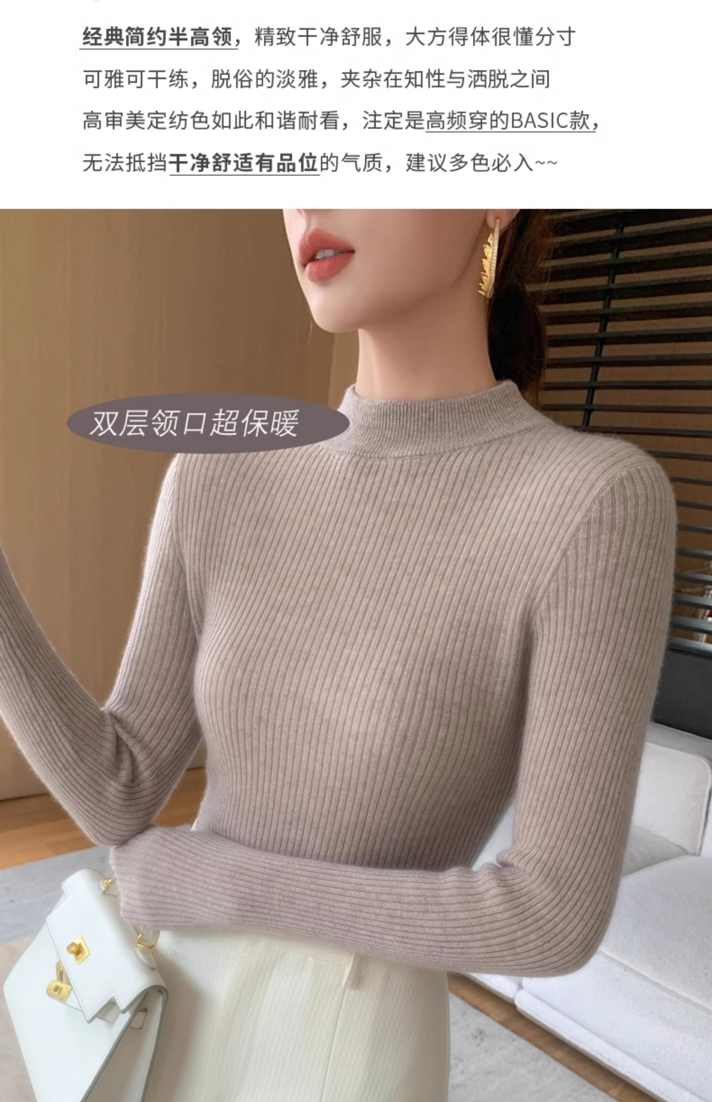 軟糯半高領毛衣女針織衫長袖秋冬超保暖雙層領修身打底衫緊身內搭