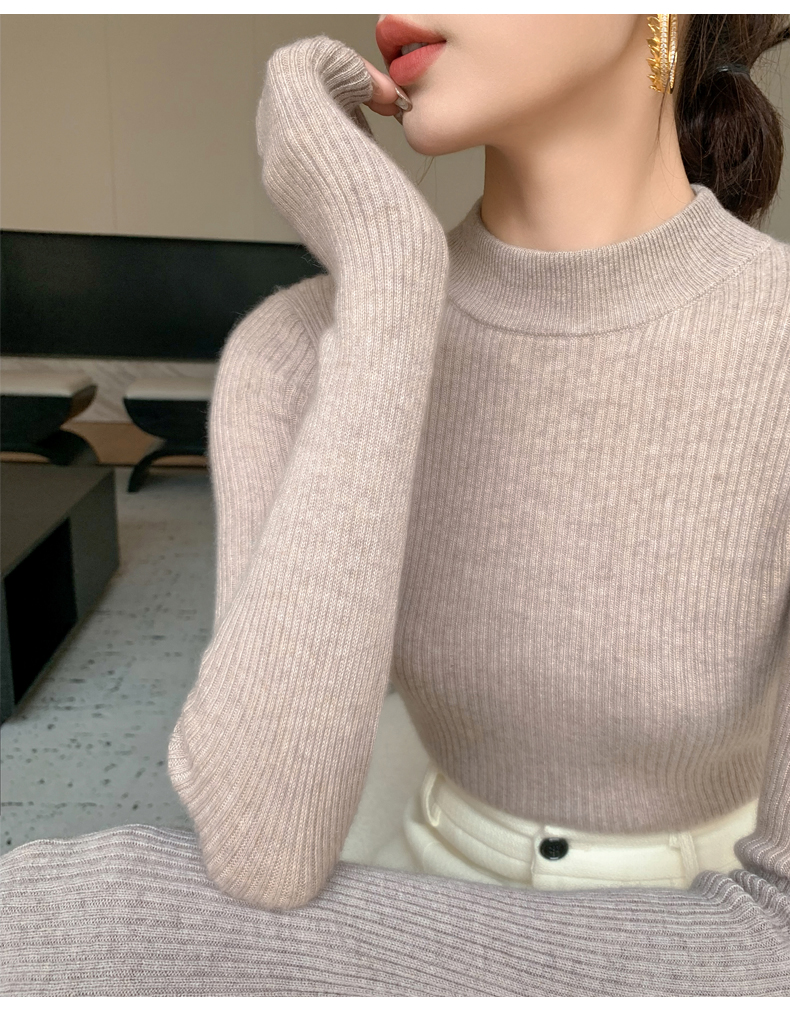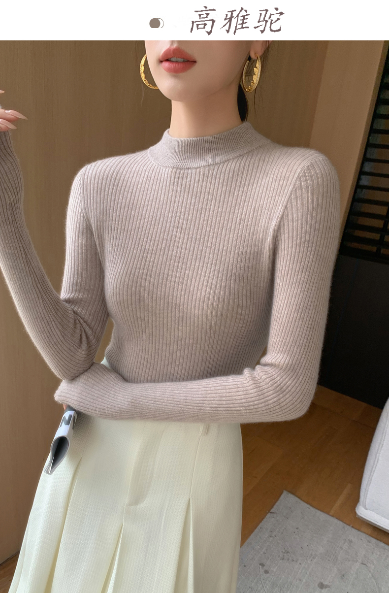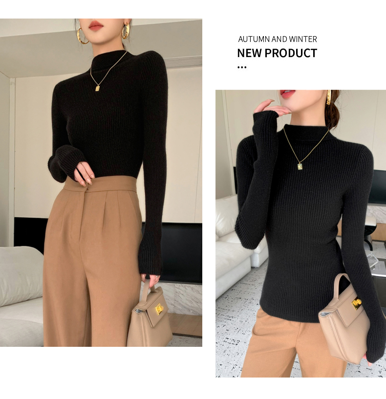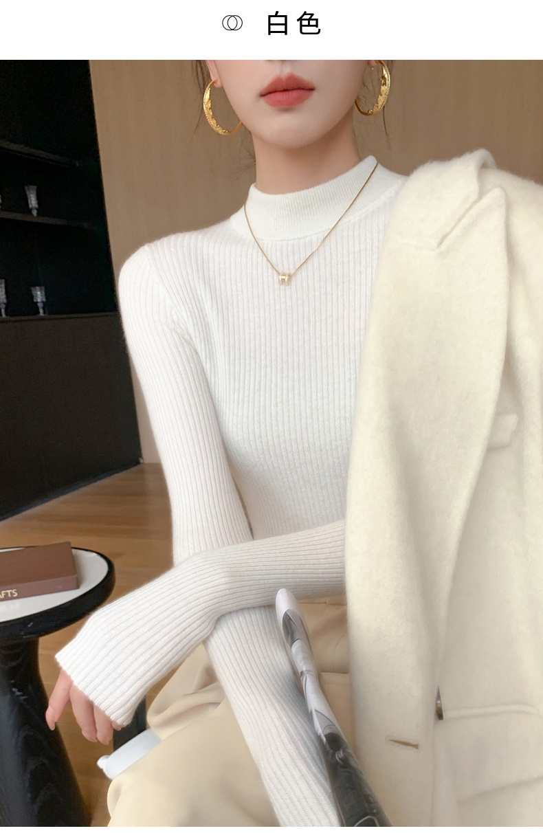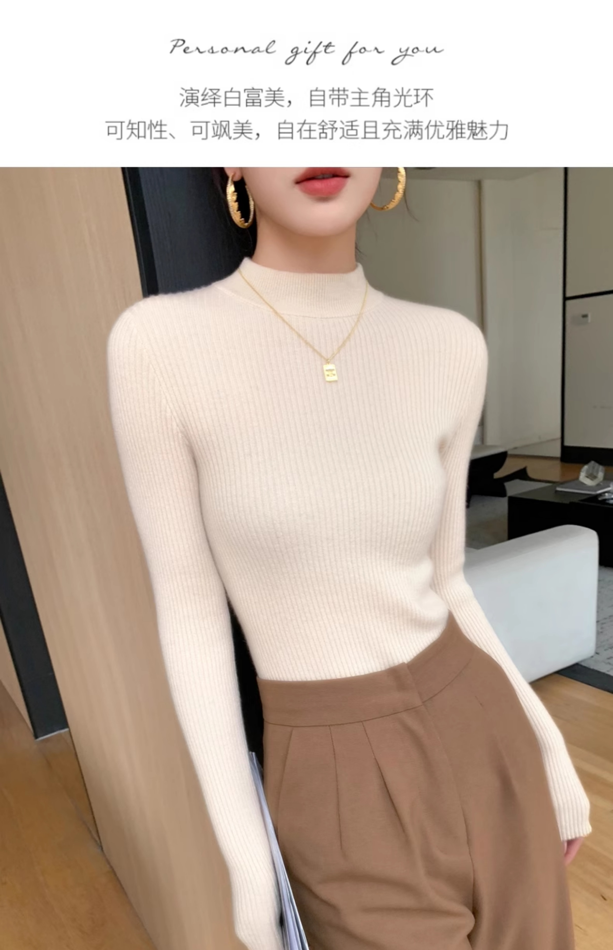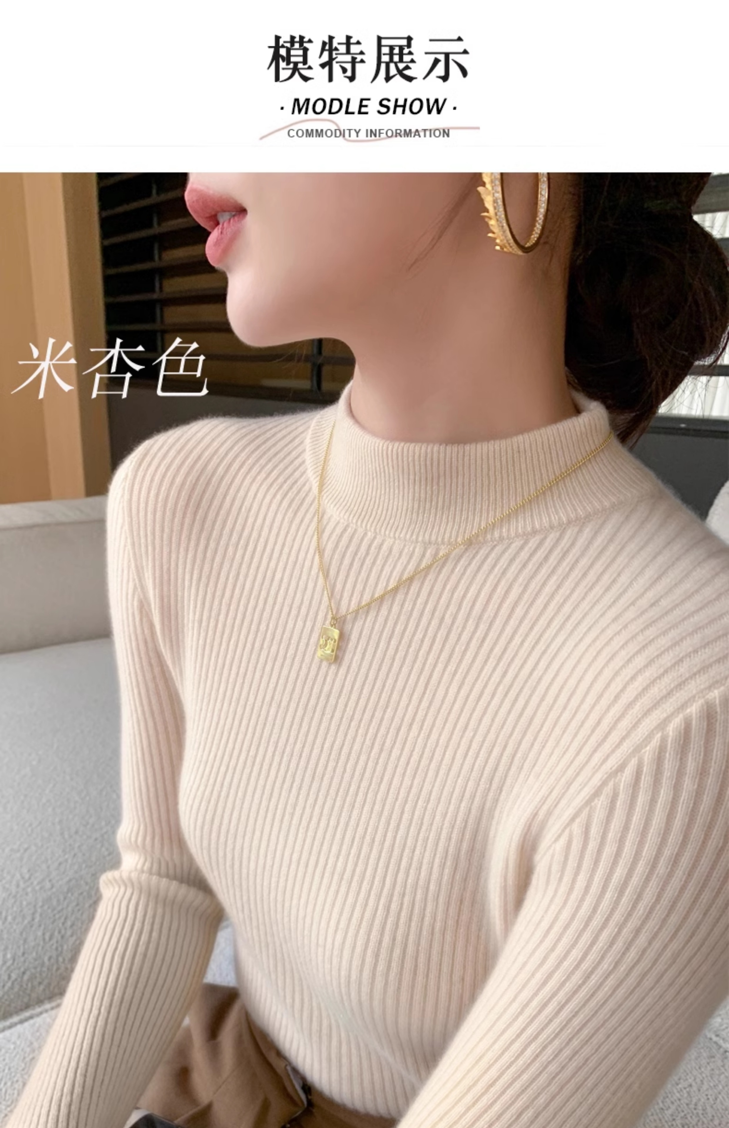 軟糯半高領毛衣女針織衫長袖秋冬超保暖雙層領修身打底衫緊身內搭
