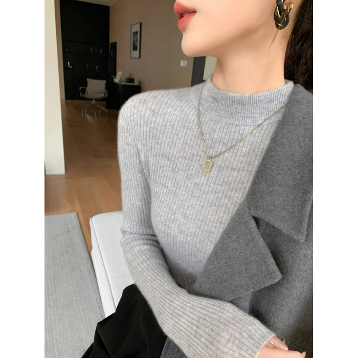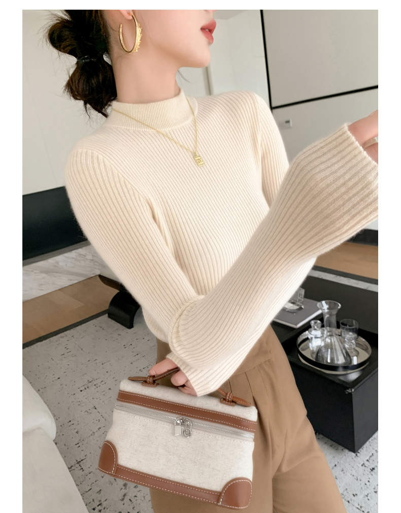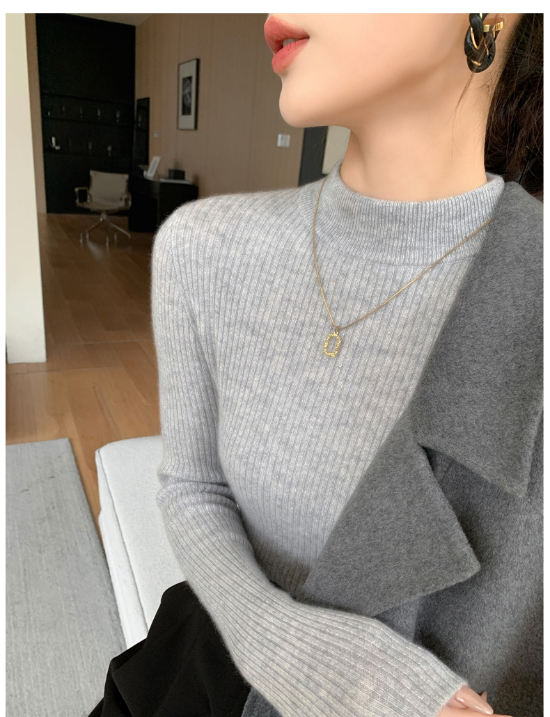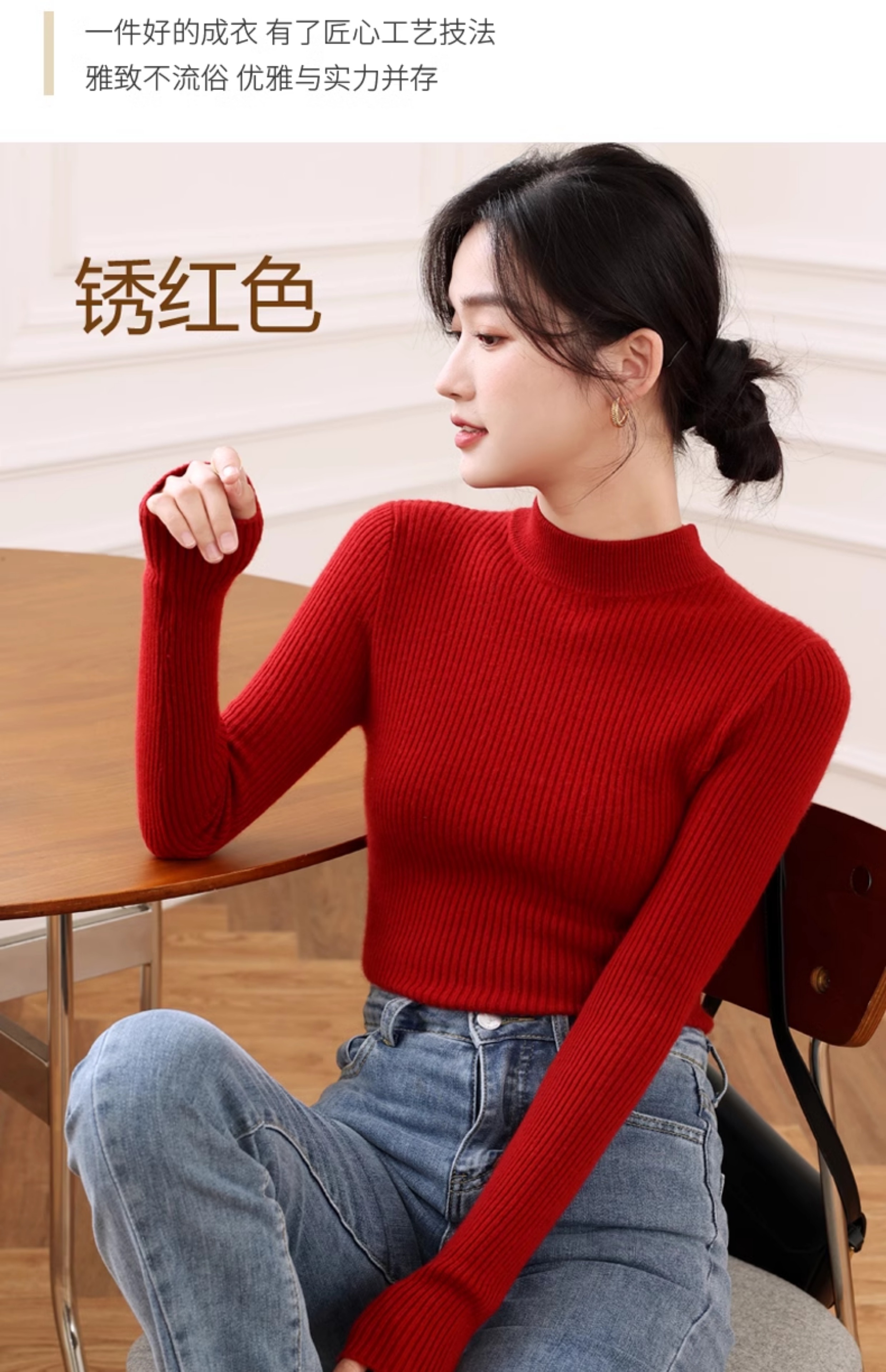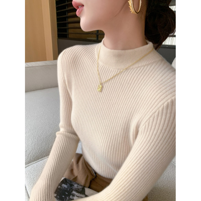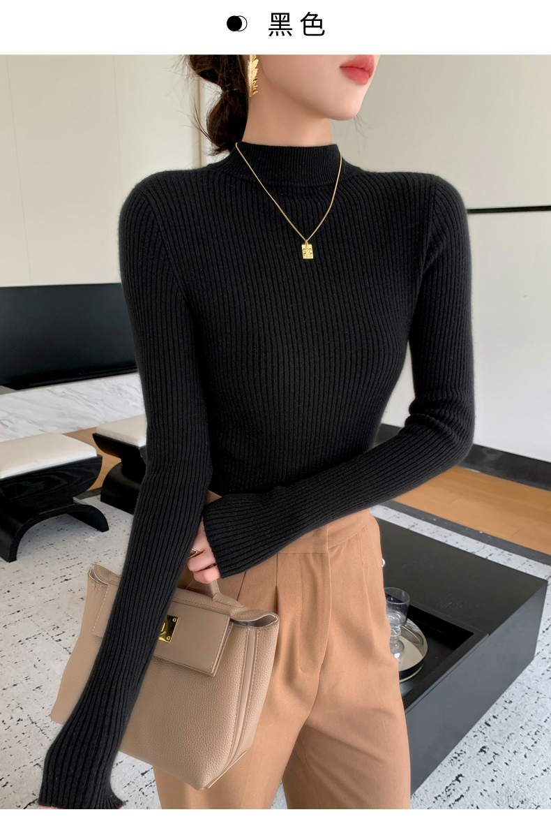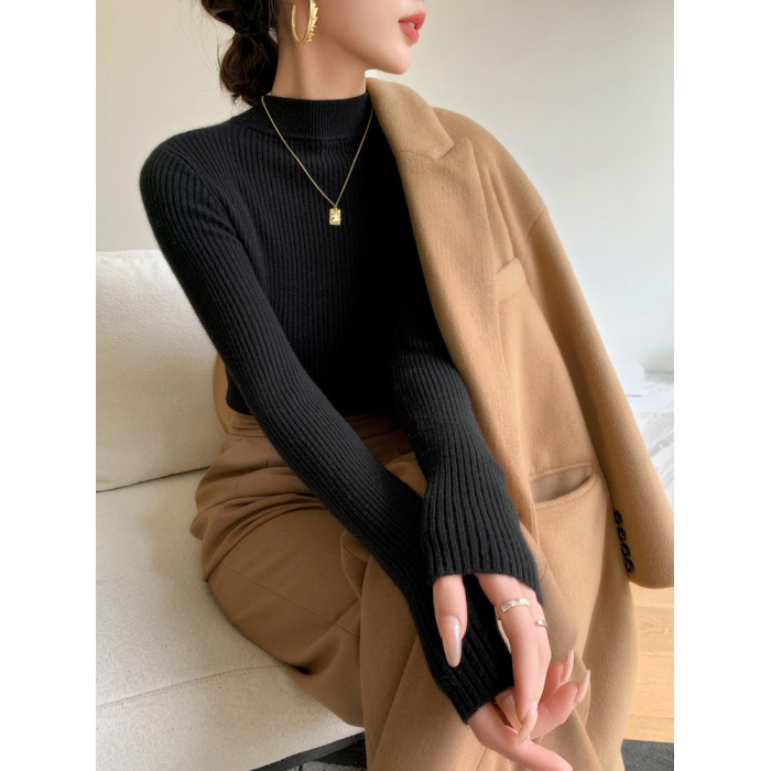 軟糯半高領毛衣女針織衫長袖秋冬超保暖雙層領修身打底衫緊身內搭
