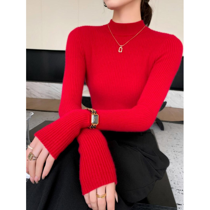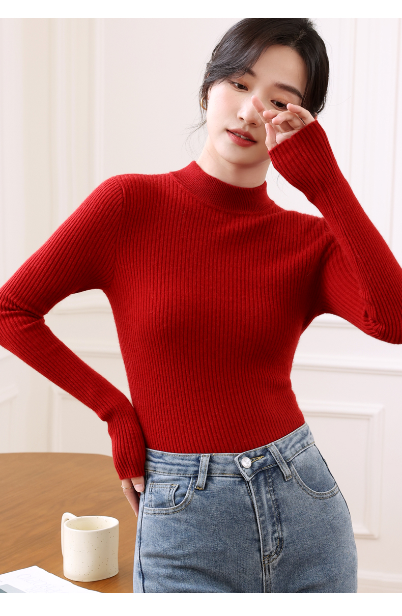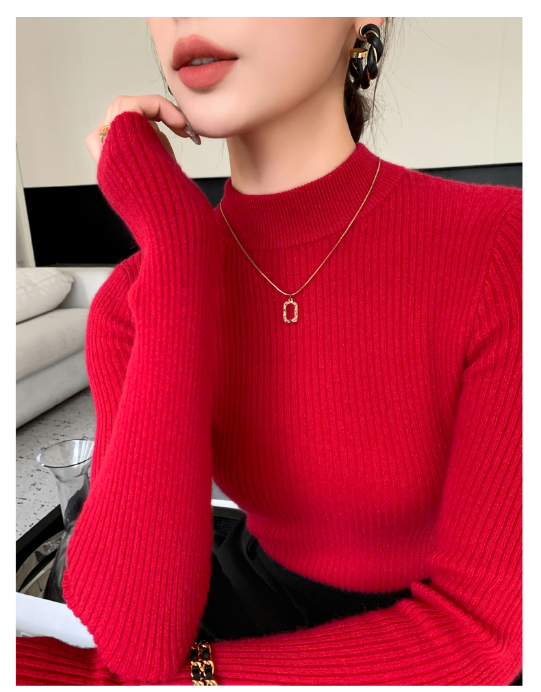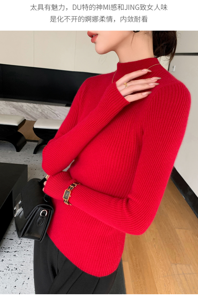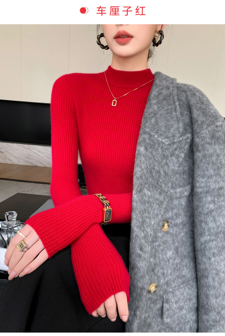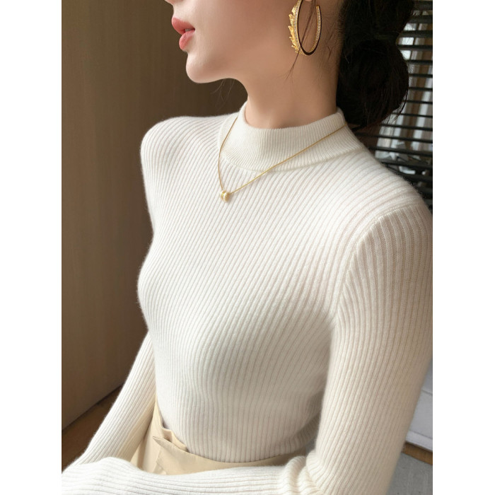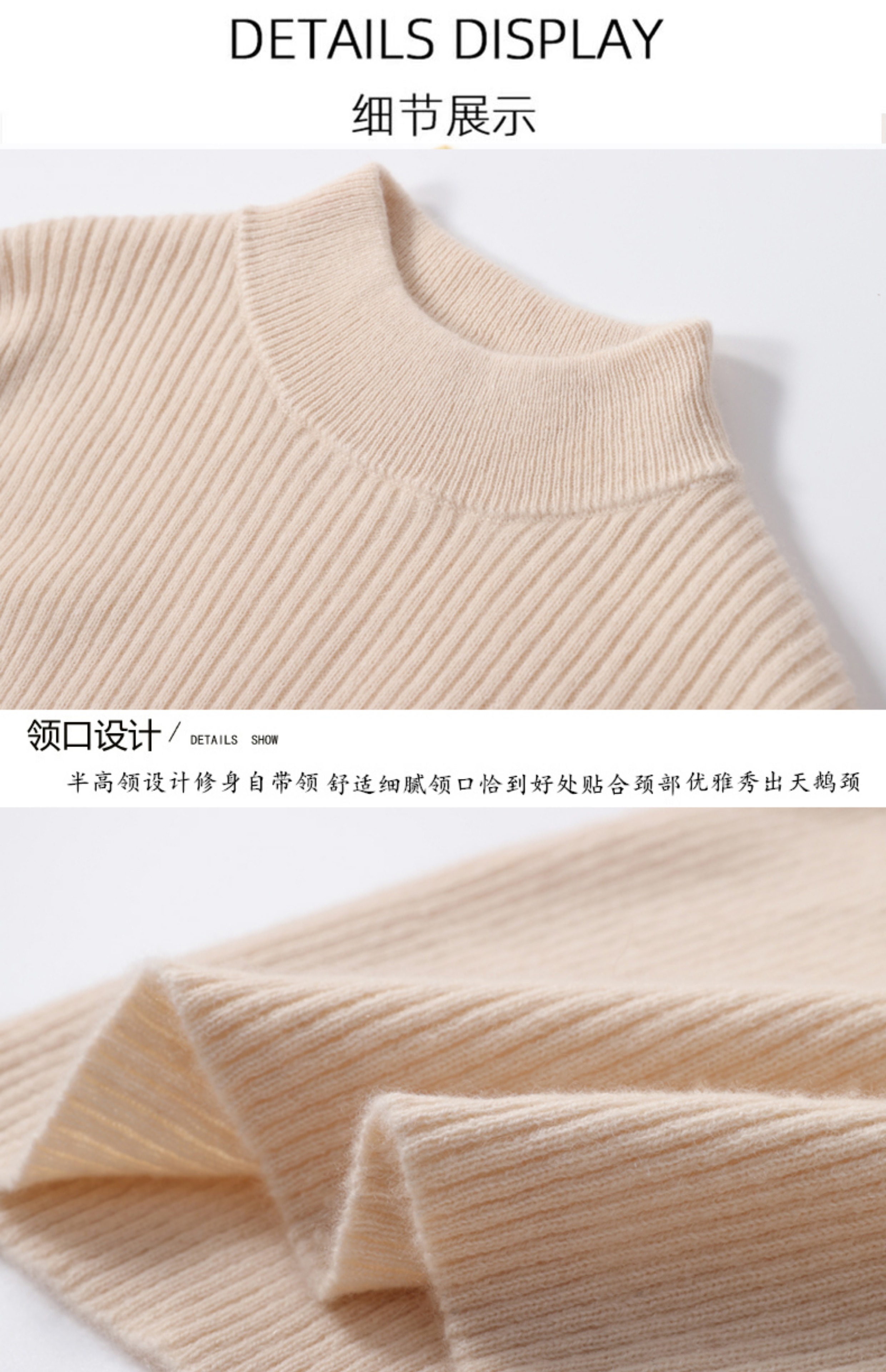 軟糯半高領毛衣女針織衫長袖秋冬超保暖雙層領修身打底衫緊身內搭