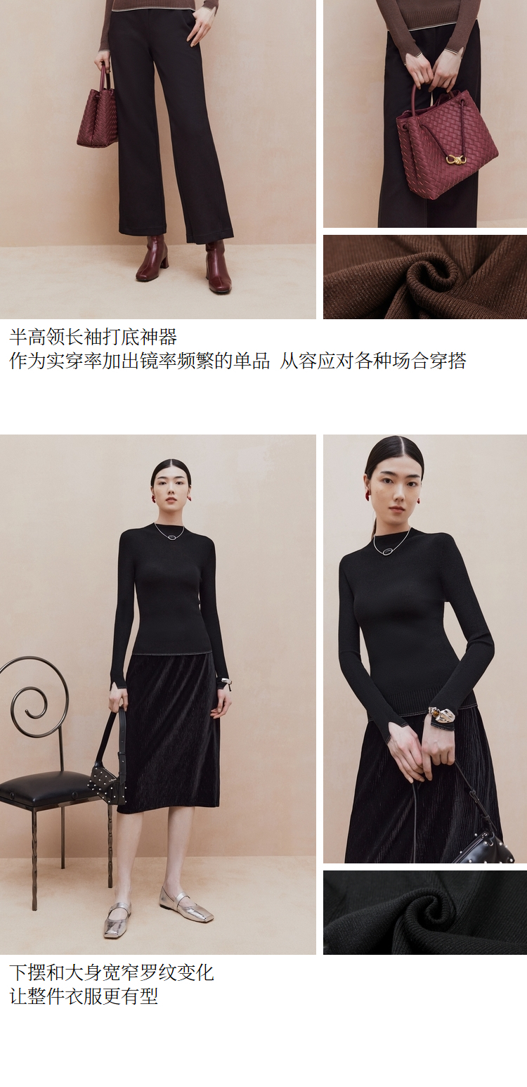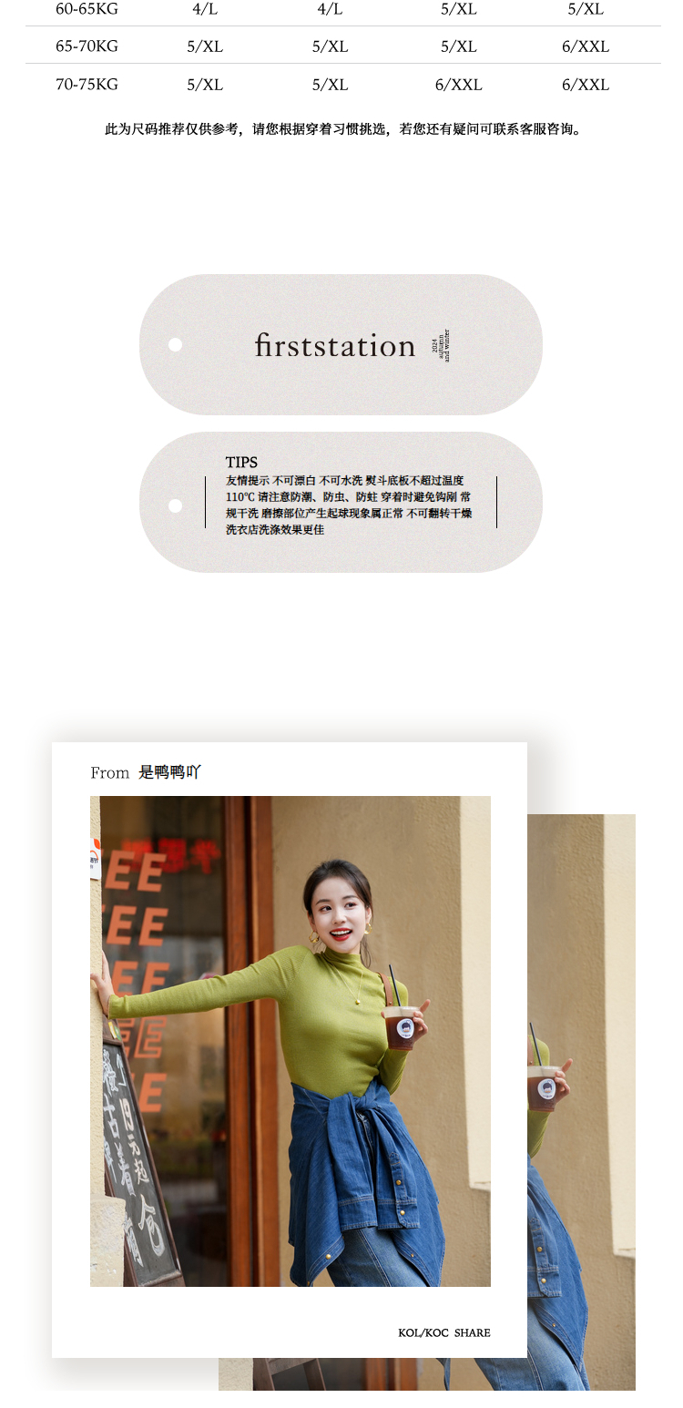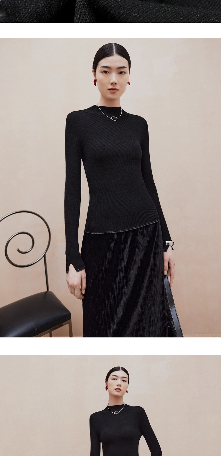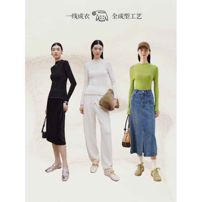 firststation[無縫一體×美利奴全羊毛]高領針織打底衫9903a