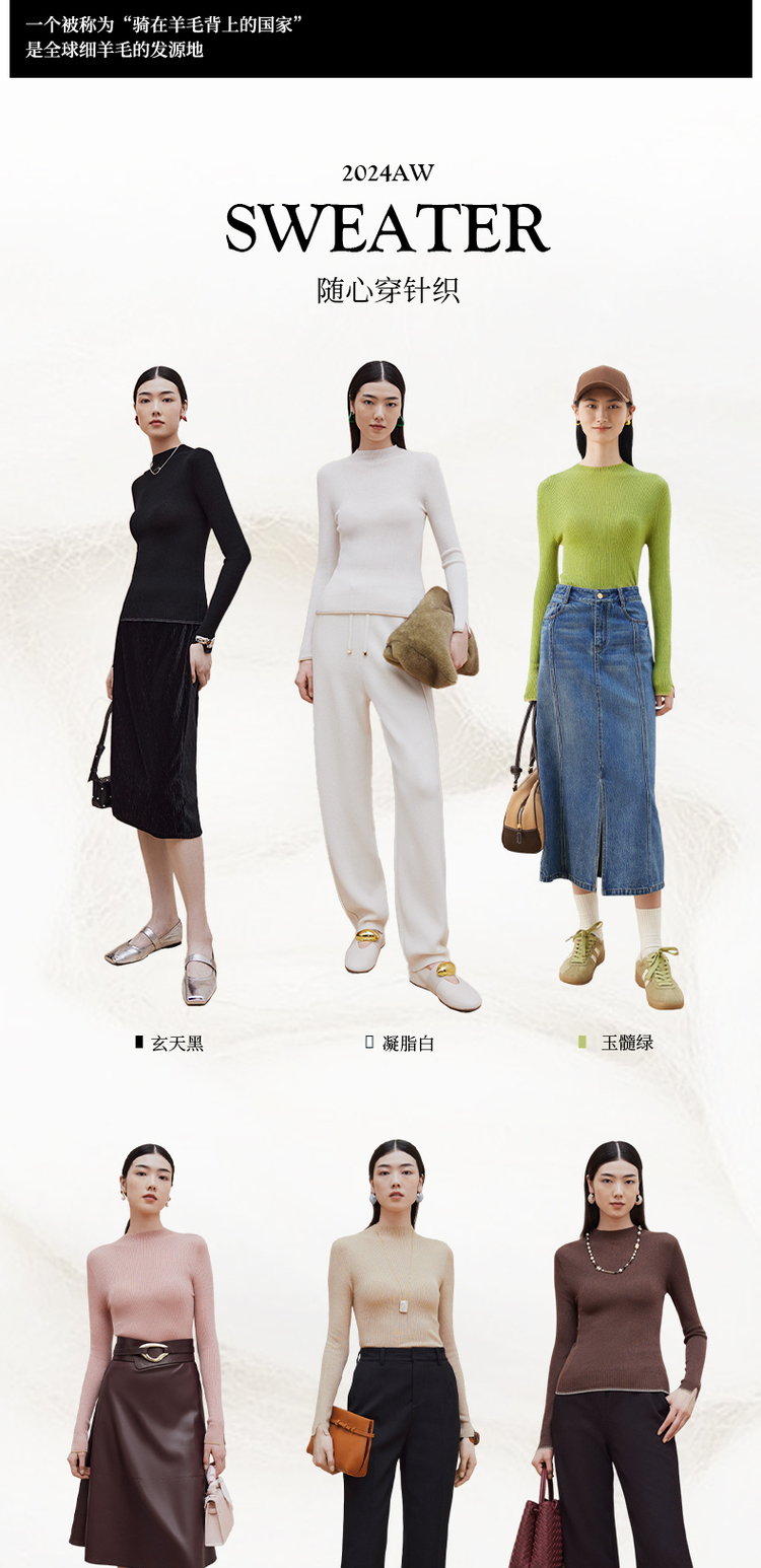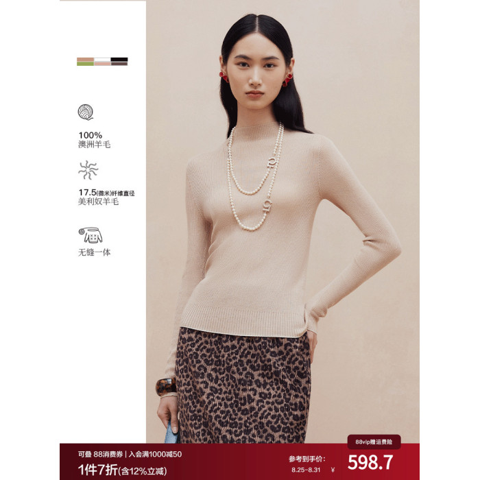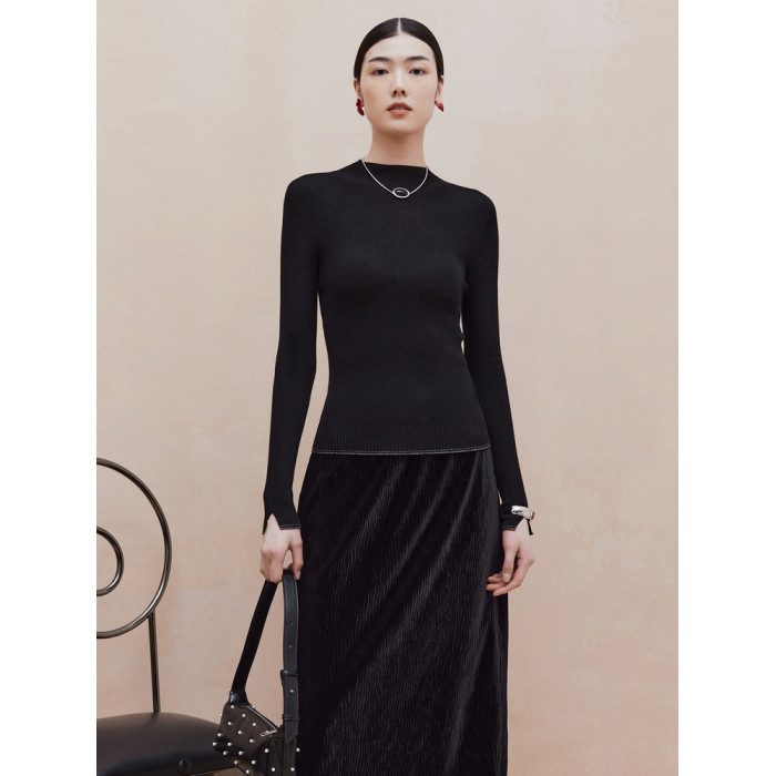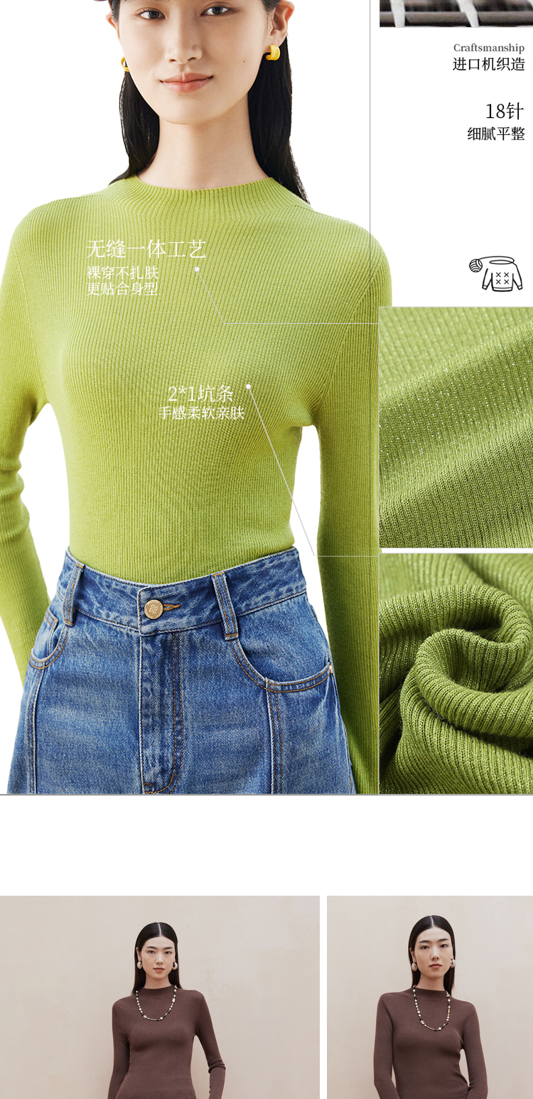 firststation[無縫一體×美利奴全羊毛]高領針織打底衫9903a