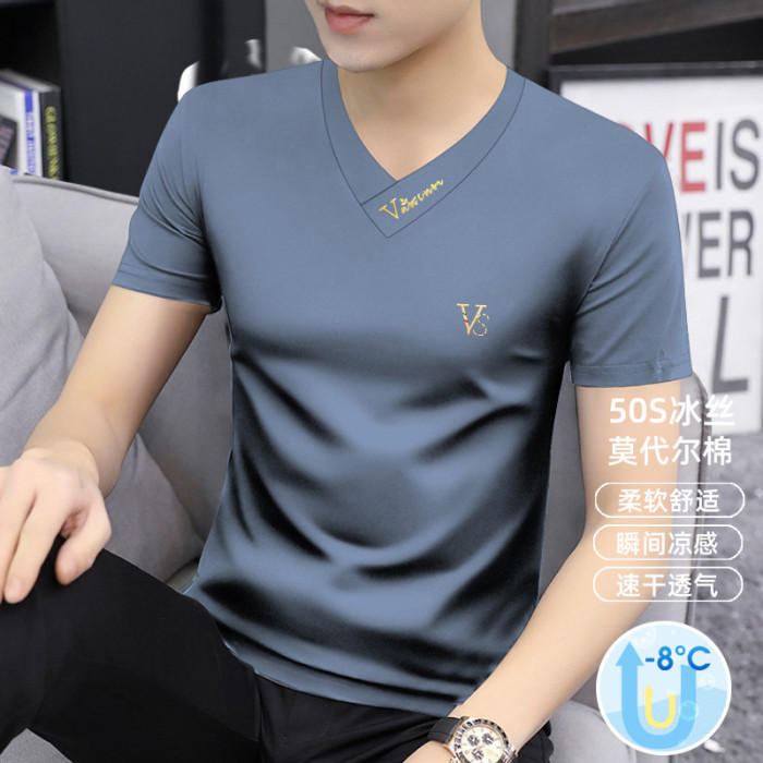 莫代爾冰絲短袖t恤男潮流涼感半袖體恤夏季薄款速乾排汗上衣男裝