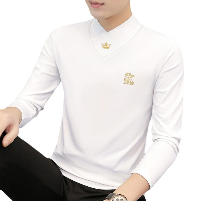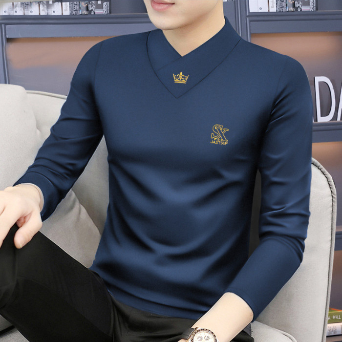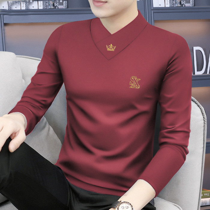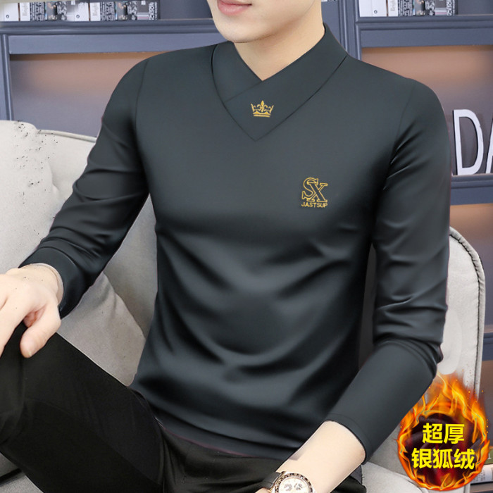 秋冬季潮牌加絨長袖t恤男士保暖打底衫內搭V領上衛衣服中青年厚裝