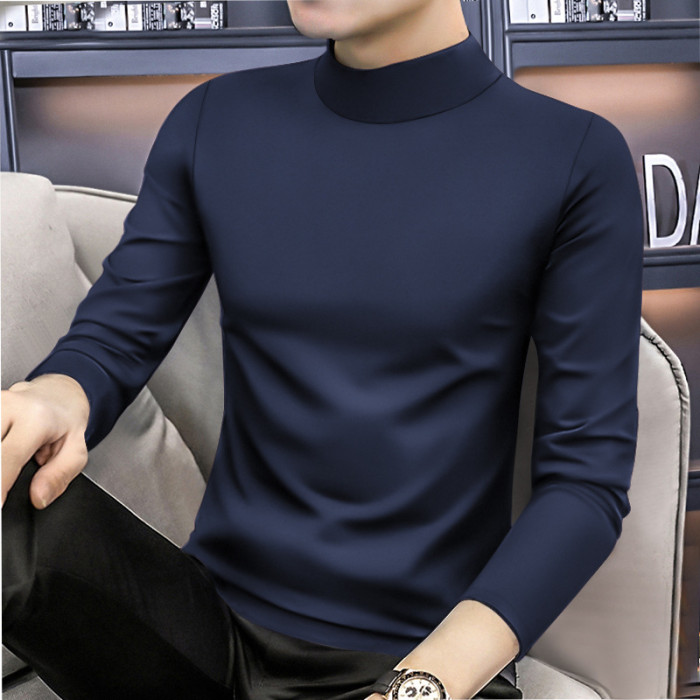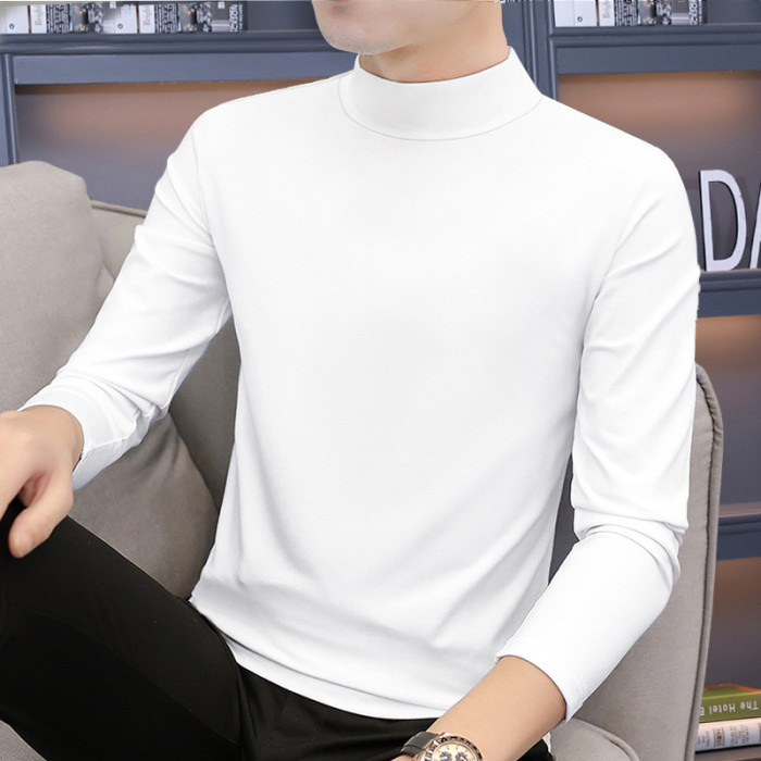 莫代爾純色長袖t恤男士半高領打底衫棉秋衣內搭春秋裝上衣服潮流