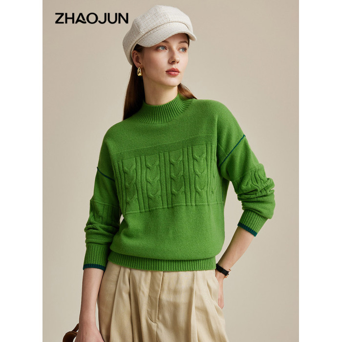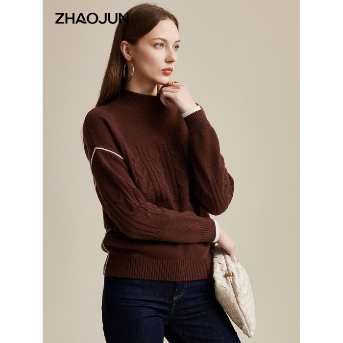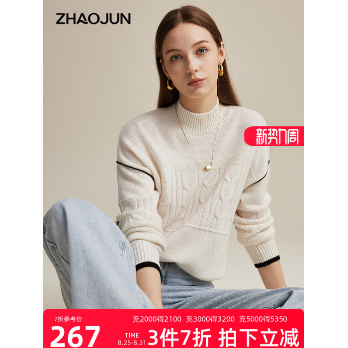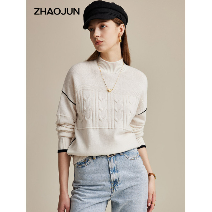 兆君秋冬新款高級撞色羊毛衫女半高領加厚打底衫白色針織毛衣