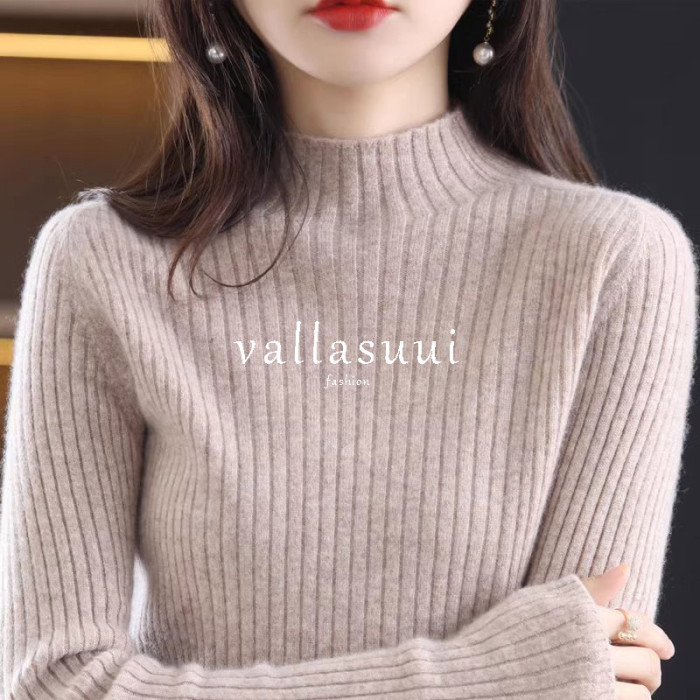 半高領仿羊毛打底衫女秋冬2025年新款韓版修身內搭長袖毛衣針織衫