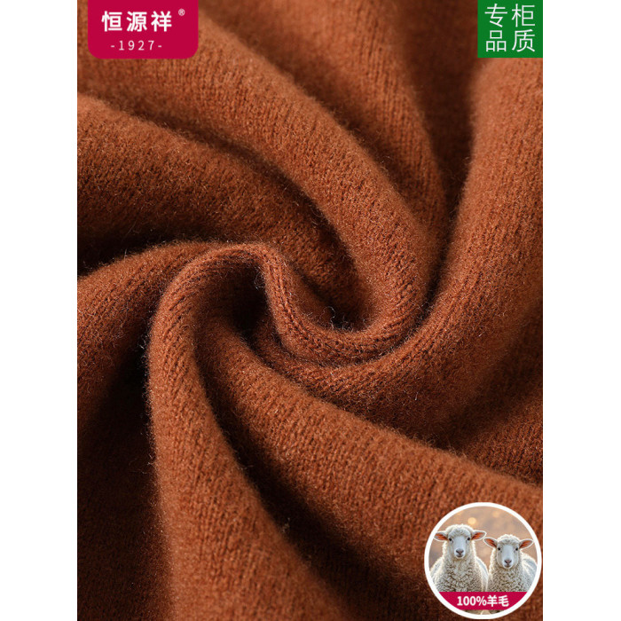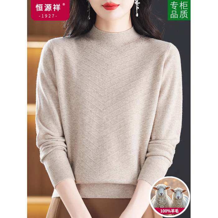 恒源祥半高領純羊毛衫女秋冬2024新款媽媽紅色毛衣內搭針織打底衫