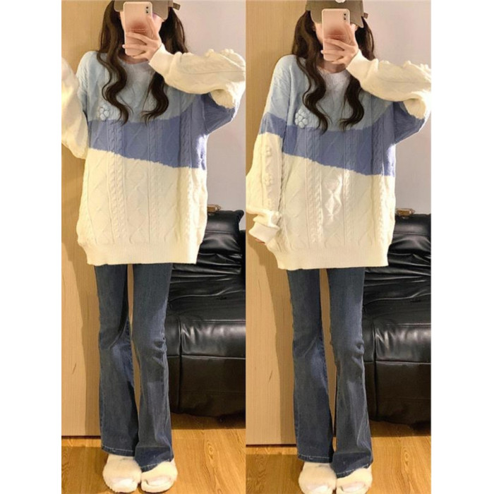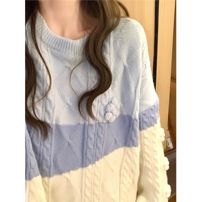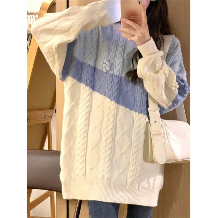 麻花毛衣女秋冬季加絨加厚高中初中學生大童寬松慵懶風針織打底衫