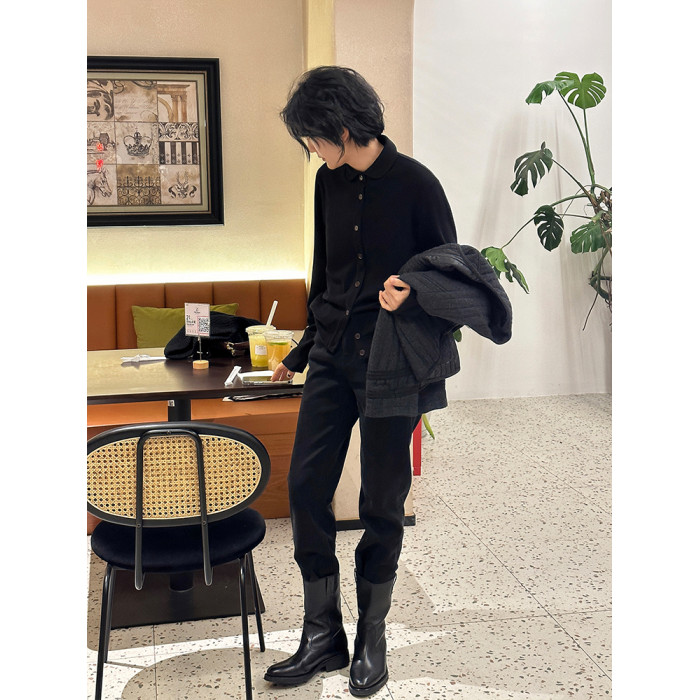 浪清Polo領衛衣打底衫女秋季2025新款黑色長袖內搭打底衫開衫上衣